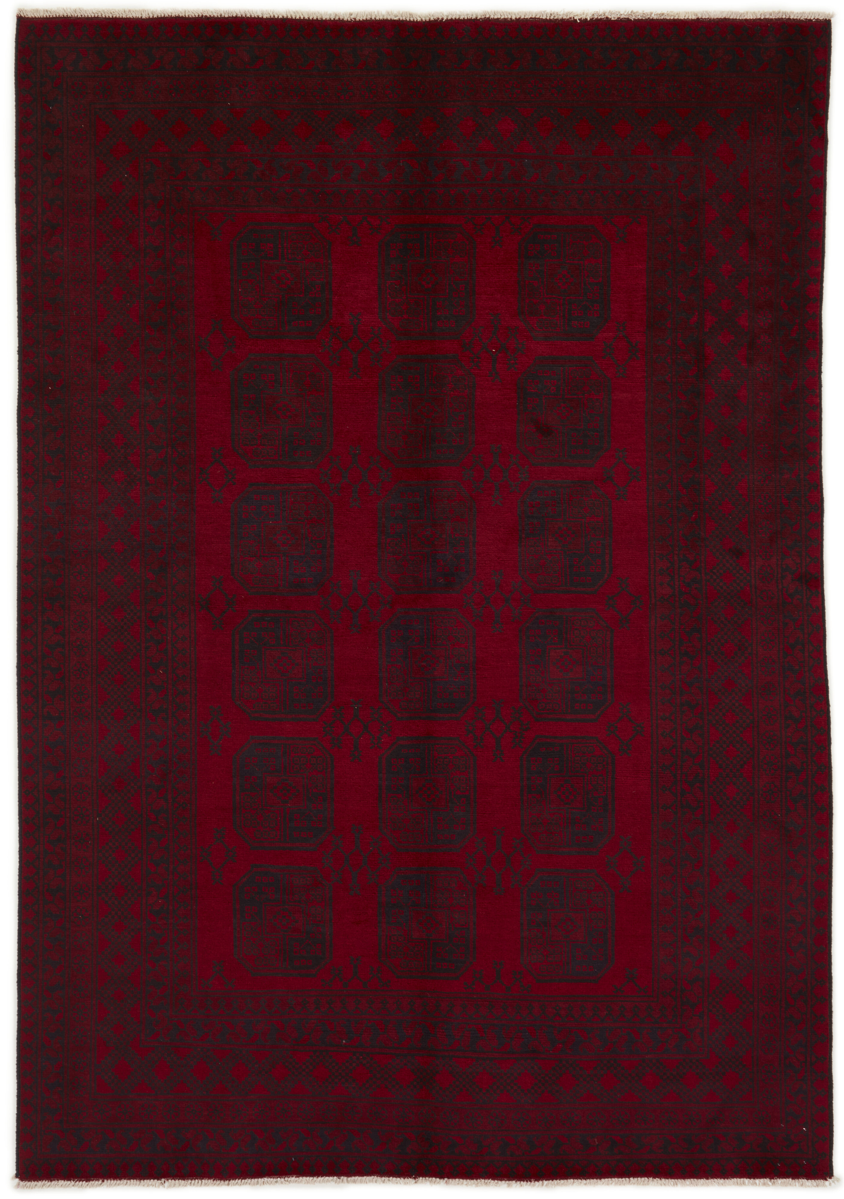 Aktscha rugs are knotted by Turkmens in the Aktscha (Acqcha) district, which is situated in the central part of the Jowzjan Province of northern Afghanistan. The Aktscha rugs are very similar to the Old Afghan (Khal Mohammadi) rugs, but are of a lower quality, as the knot density is lower. The rugs have the same characteristics, with the deep, warm, and fiery red base colour, the relatively high and sturdy pile, the wool base weave, and the use of goat’s and horse’s hair. The Gül (Elephant’s Foot) pattern is the primary pattern of the Aktscha rugs.