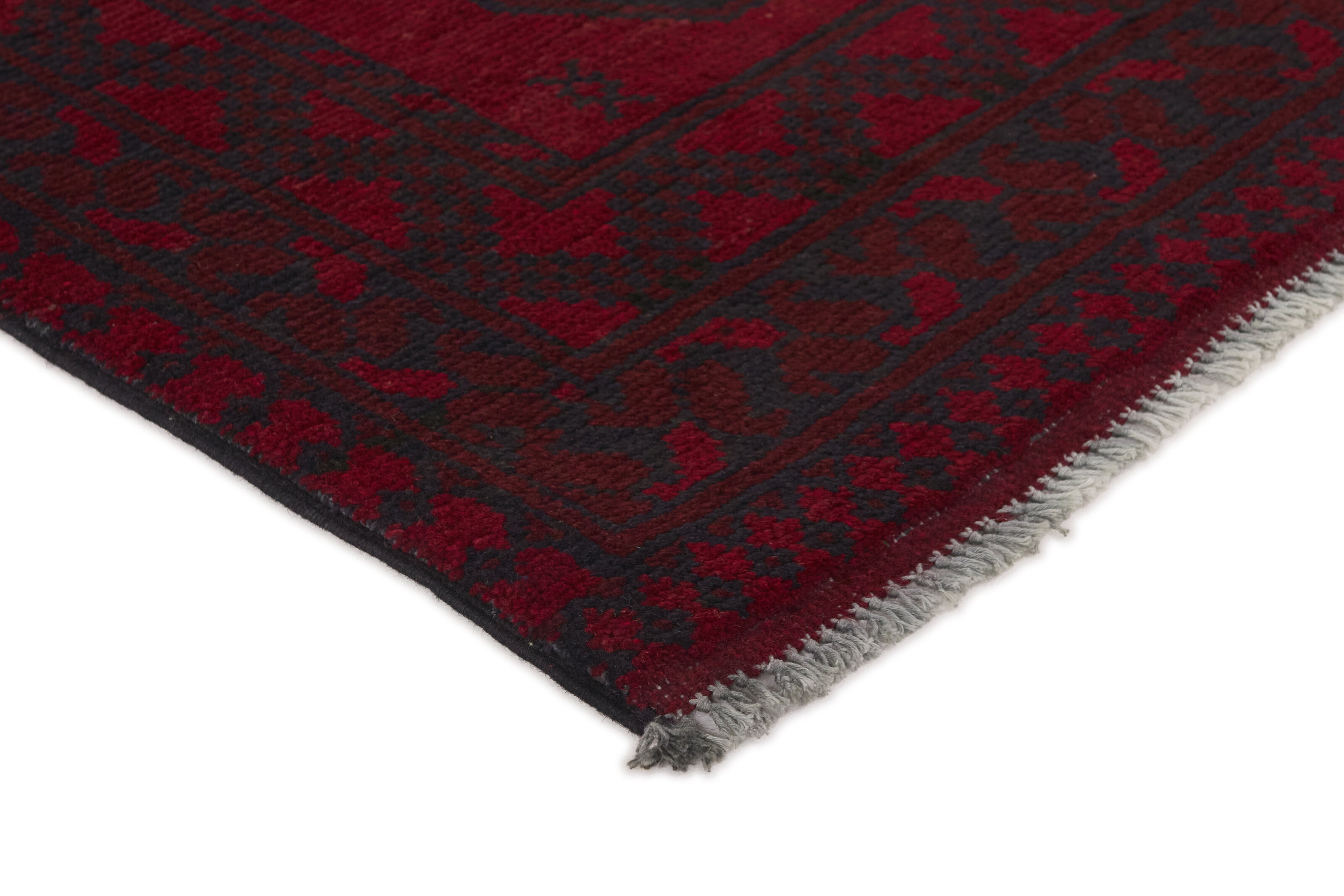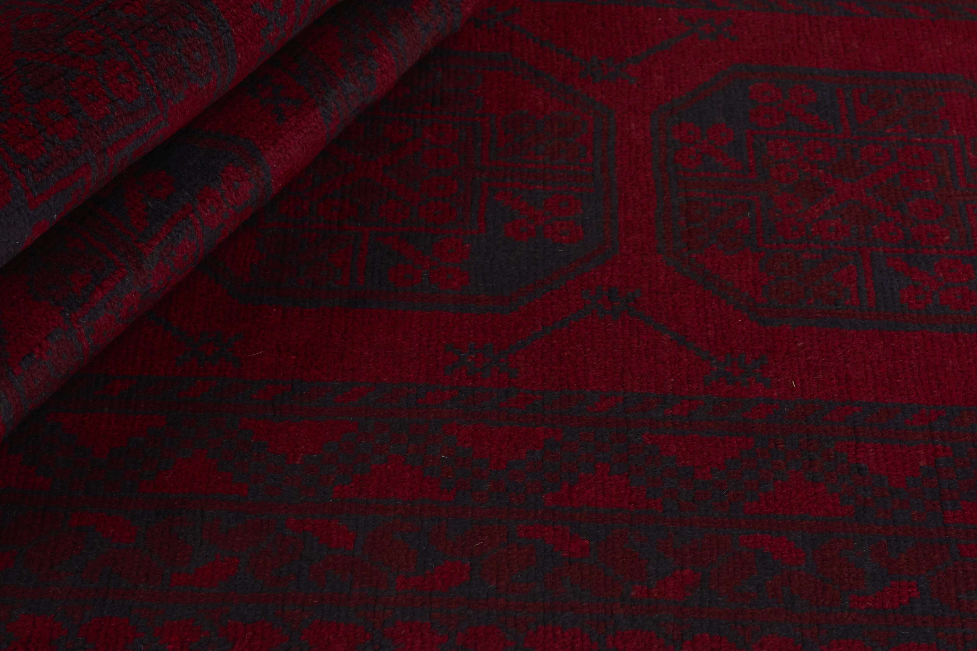 Aktscha rugs are knotted by Turkmens in the Aktscha (Acqcha) district, which is situated in the central part of the Jowzjan Province of northern Afghanistan. The Aktscha rugs are very similar to the Old Afghan (Khal Mohammadi) rugs, but are of a lower quality, as the knot density is lower. The rugs have the same characteristics, with the deep, warm, and fiery red base colour, the relatively high and sturdy pile, the wool base weave, and the use of goat’s and horse’s hair. The Gül (Elephant’s Foot) pattern is the primary pattern of the Aktscha rugs.