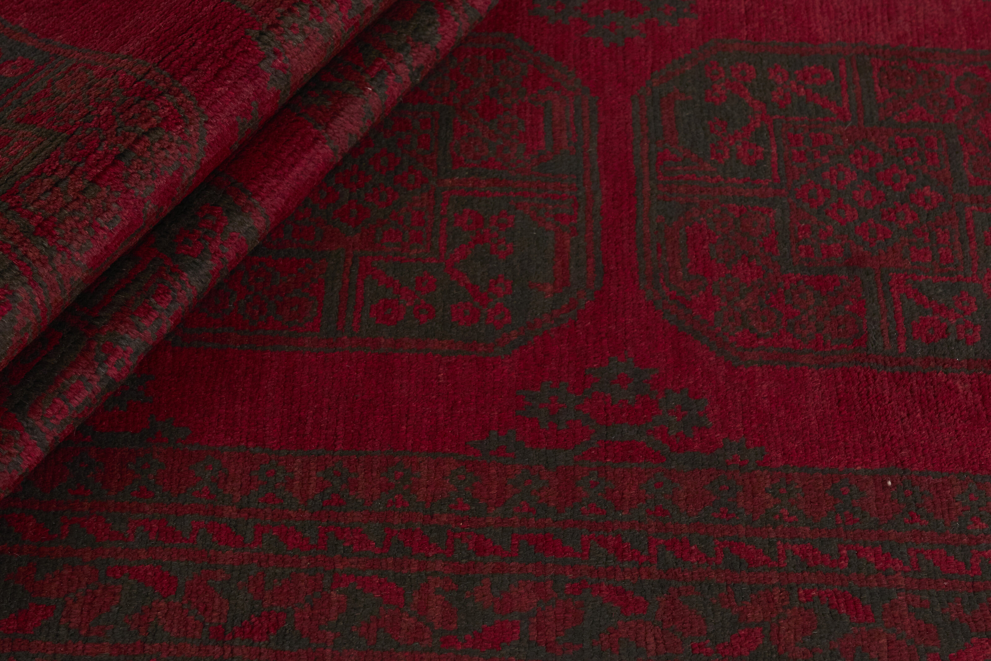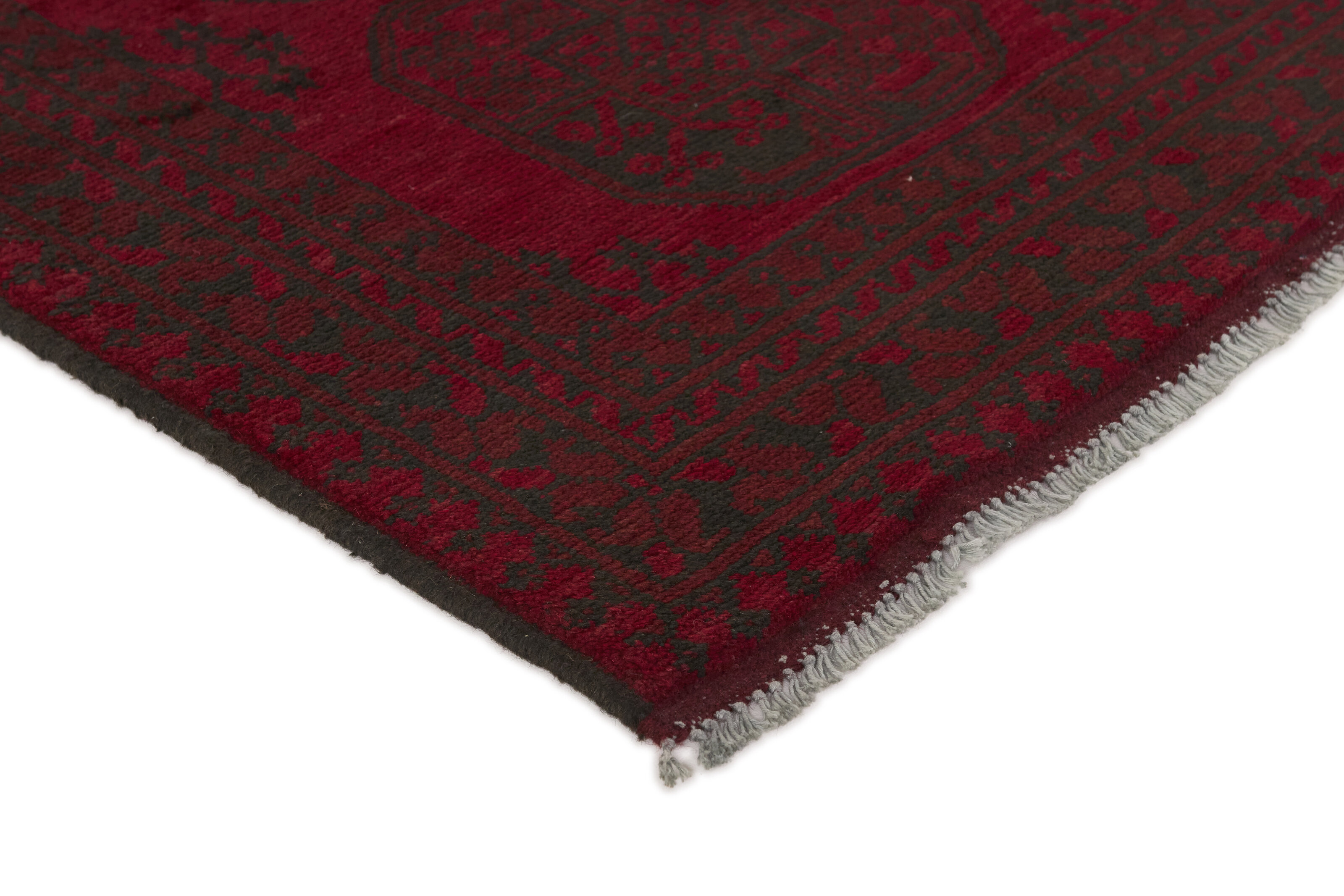 Aktscha rugs are knotted by Turkmens in the Aktscha (Acqcha) district, which is situated in the central part of the Jowzjan Province of northern Afghanistan. The Aktscha rugs are very similar to the Old Afghan (Khal Mohammadi) rugs, but are of a lower quality, as the knot density is lower. The rugs have the same characteristics, with the deep, warm, and fiery red base colour, the relatively high and sturdy pile, the wool base weave, and the use of goat’s and horse’s hair. The Gül (Elephant’s Foot) pattern is the primary pattern of the Aktscha rugs.