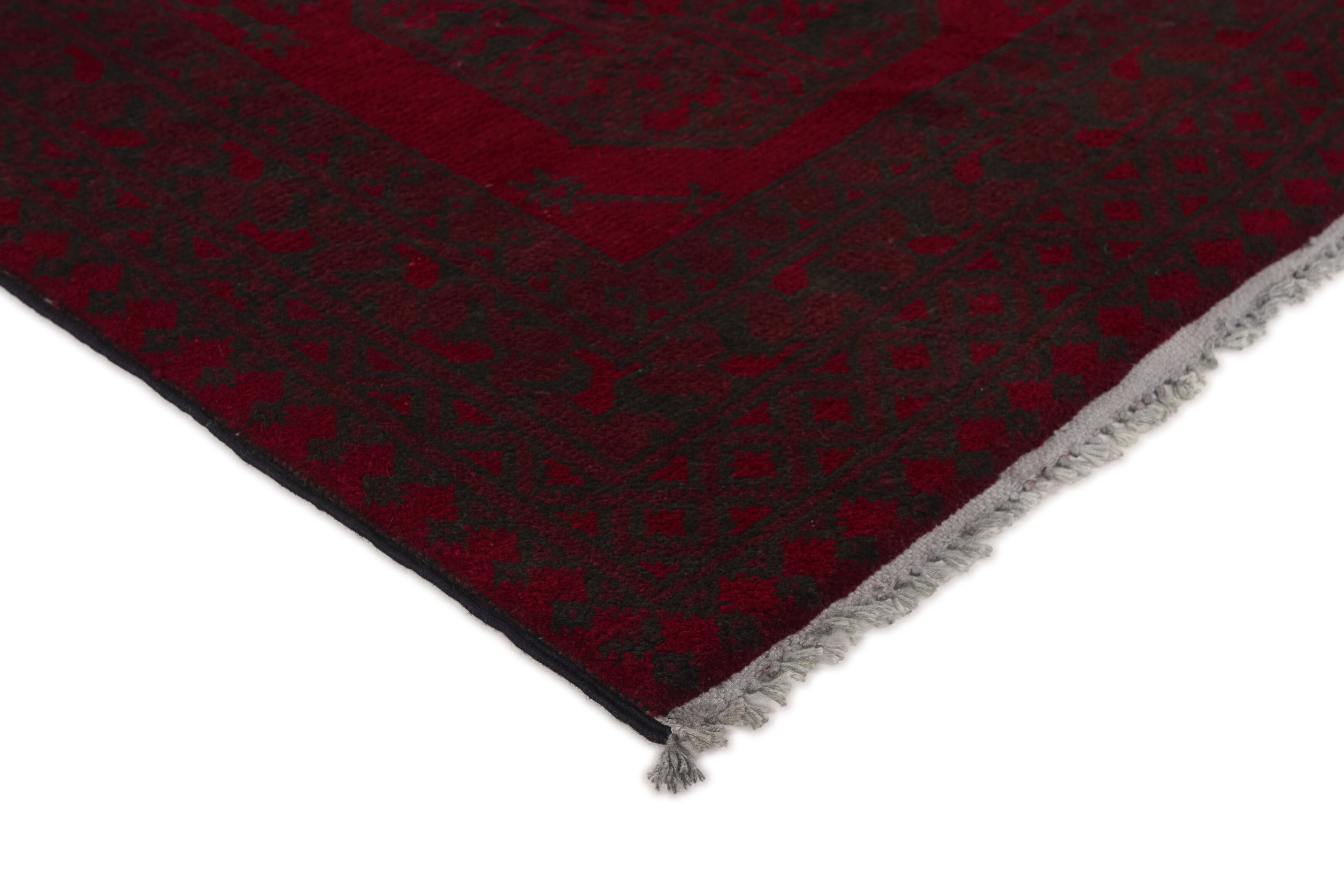 Aktscha rugs are knotted by Turkmens in the Aktscha (Acqcha) district, which is situated in the central part of the Jowzjan Province of northern Afghanistan. The Aktscha rugs are very similar to the Old Afghan (Khal Mohammadi) rugs, but are of a lower quality, as the knot density is lower. The rugs have the same characteristics, with the deep, warm, and fiery red base colour, the relatively high and sturdy pile, the wool base weave, and the use of goat’s and horse’s hair. The Gül (Elephant’s Foot) pattern is the primary pattern of the Aktscha rugs.