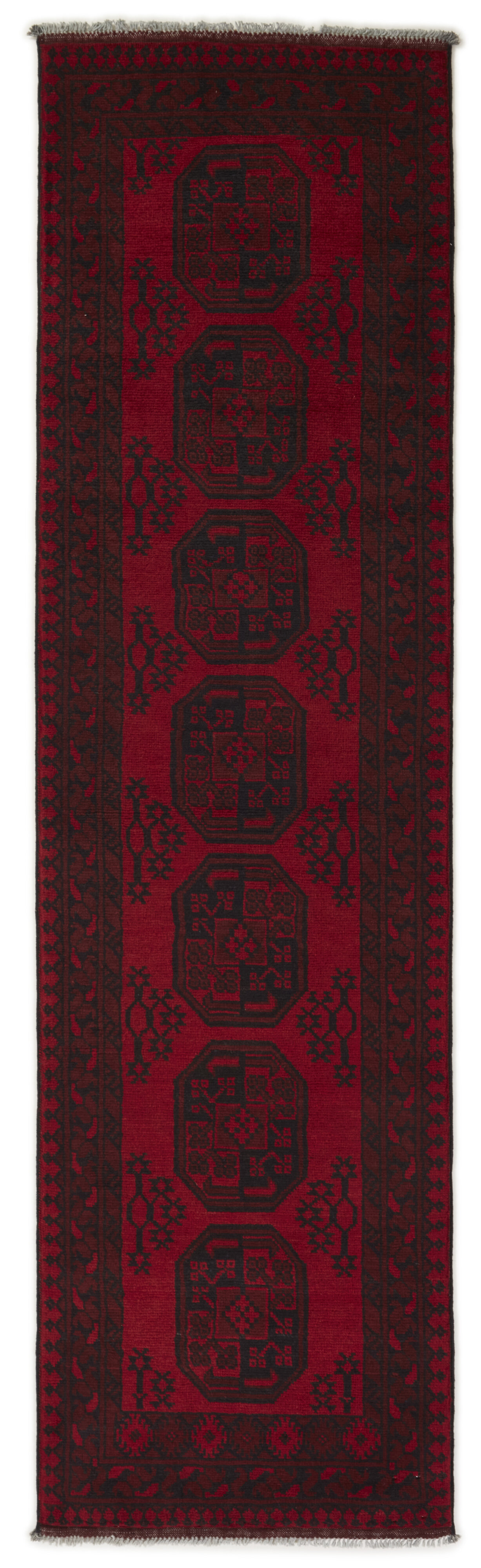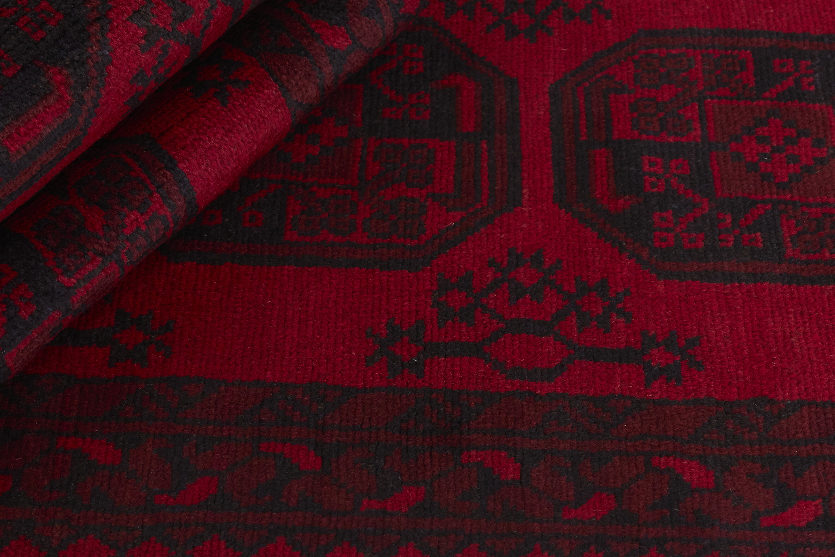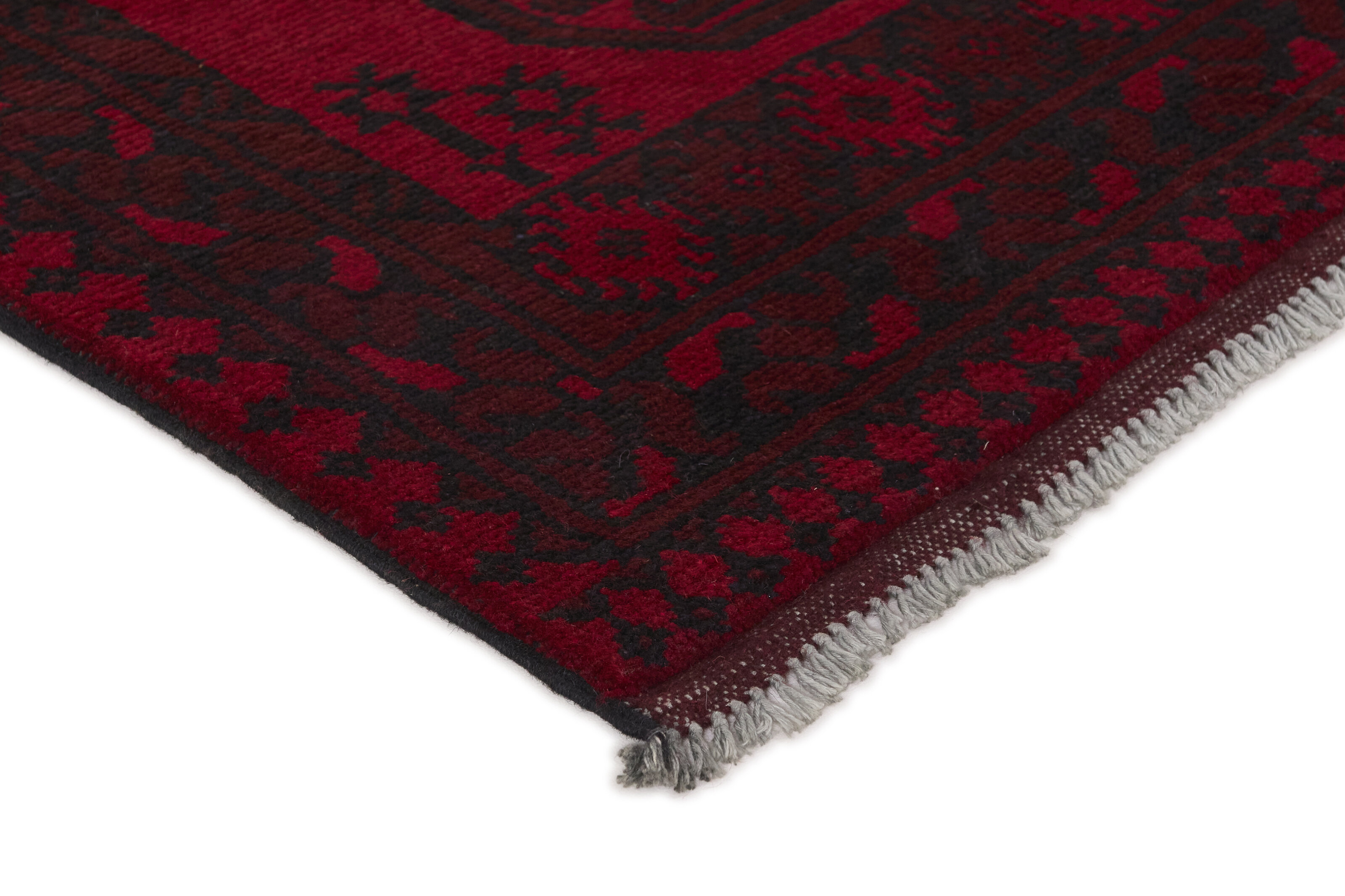 Aktscha rugs are knotted by Turkmens in the Aktscha (Acqcha) district, which is situated in the central part of the Jowzjan Province of northern Afghanistan. The Aktscha rugs are very similar to the Old Afghan (Khal Mohammadi) rugs, but are of a lower quality, as the knot density is lower. The rugs have the same characteristics, with the deep, warm, and fiery red base colour, the relatively high and sturdy pile, the wool base weave, and the use of goat’s and horse’s hair. The Gül (Elephant’s Foot) pattern is the primary pattern of the Aktscha rugs.