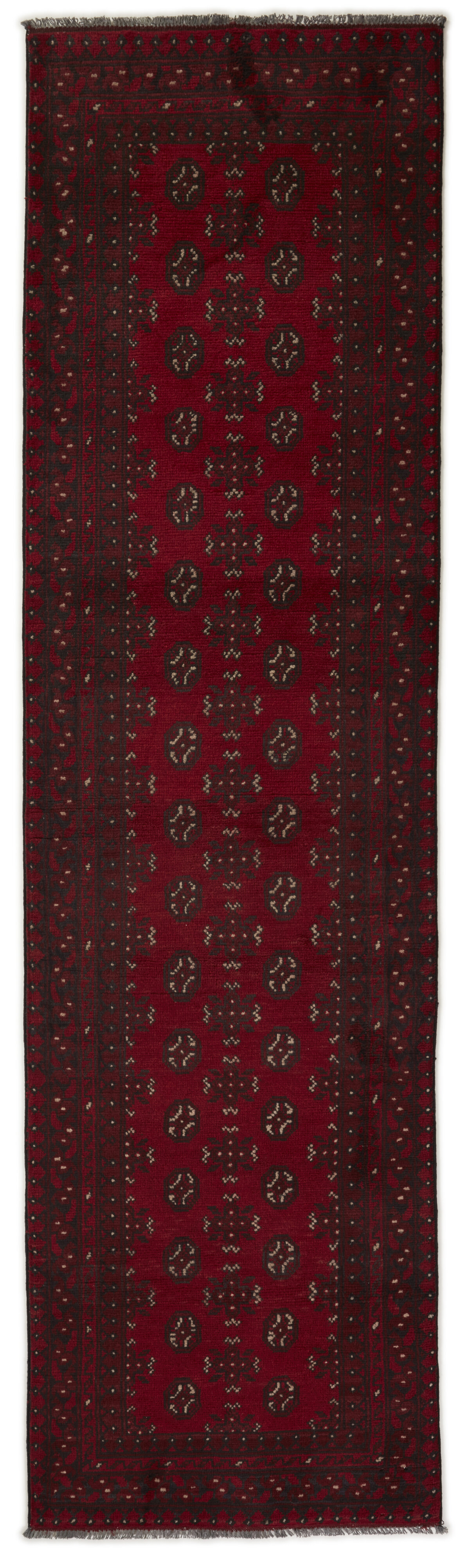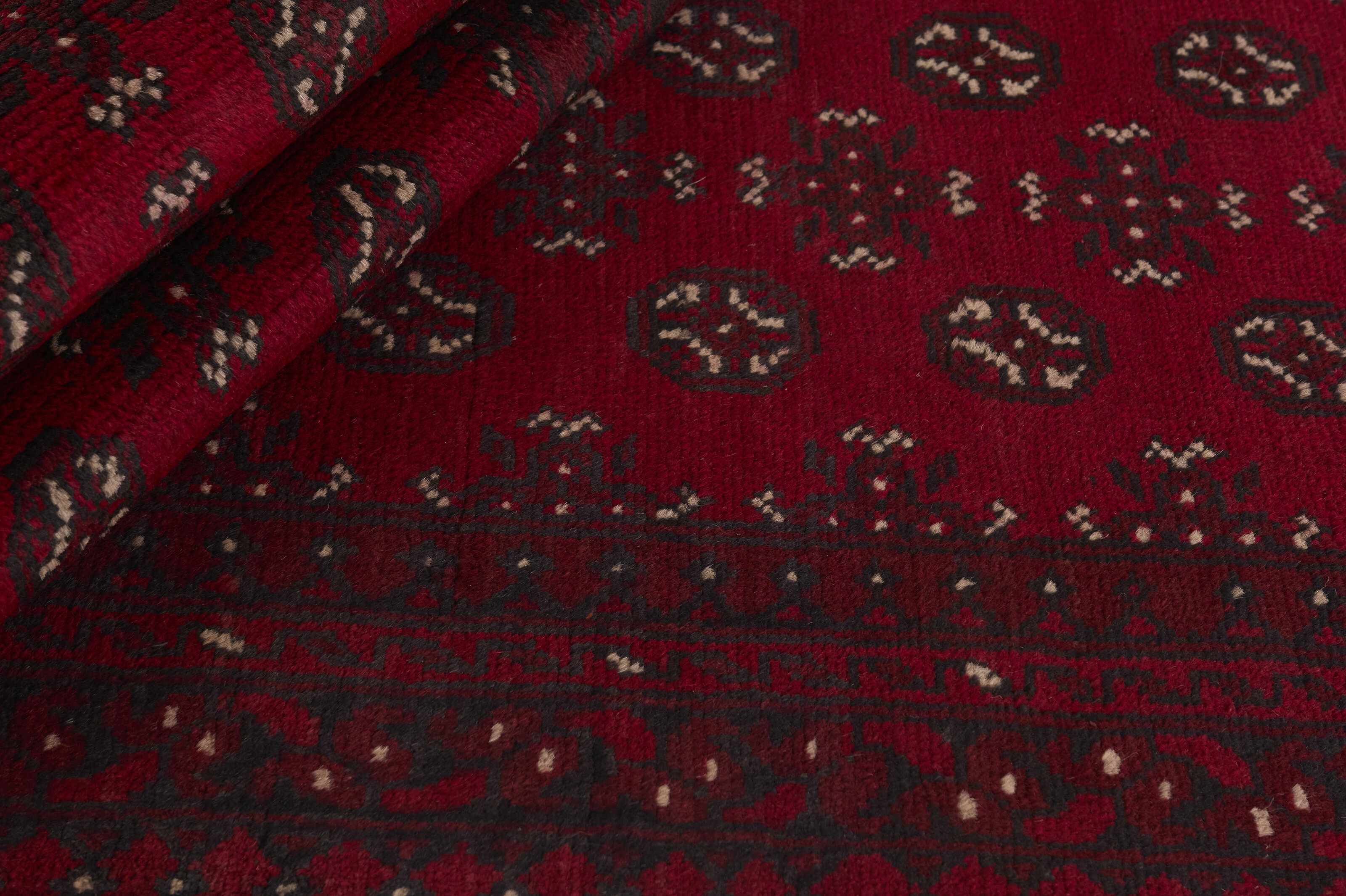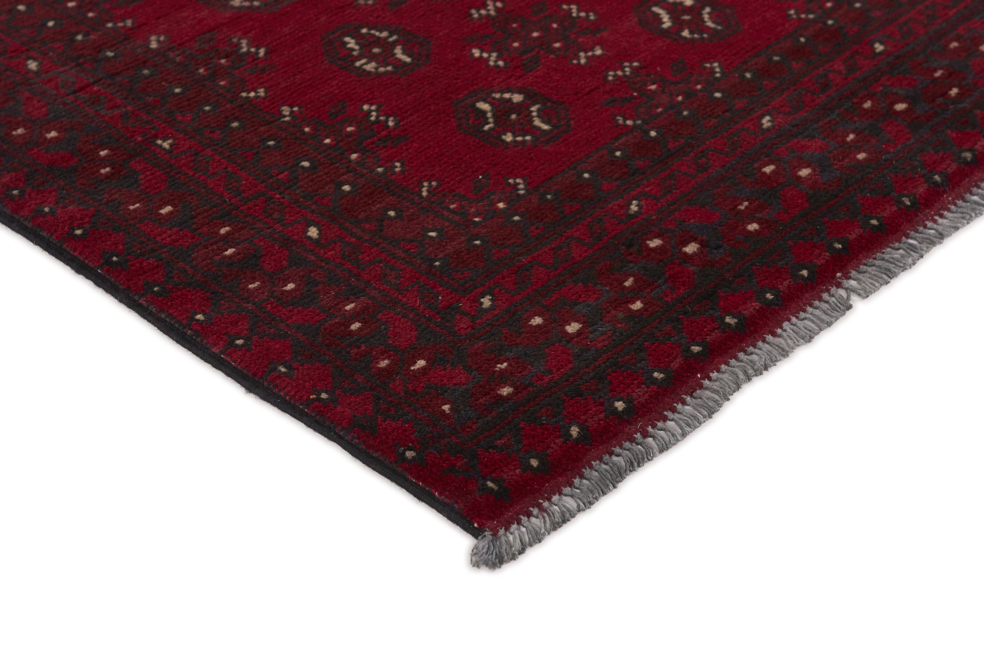 Aktscha rugs are knotted by Turkmens in the Aktscha (Acqcha) district, which is situated in the central part of the Jowzjan Province of northern Afghanistan. The Aktscha rugs are very similar to the Old Afghan (Khal Mohammadi) rugs, but are of a lower quality, as the knot density is lower. The rugs have the same characteristics, with the deep, warm, and fiery red base colour, the relatively high and sturdy pile, the wool base weave, and the use of goat’s and horse’s hair. The Gül (Elephant’s Foot) pattern is the primary pattern of the Aktscha rugs.