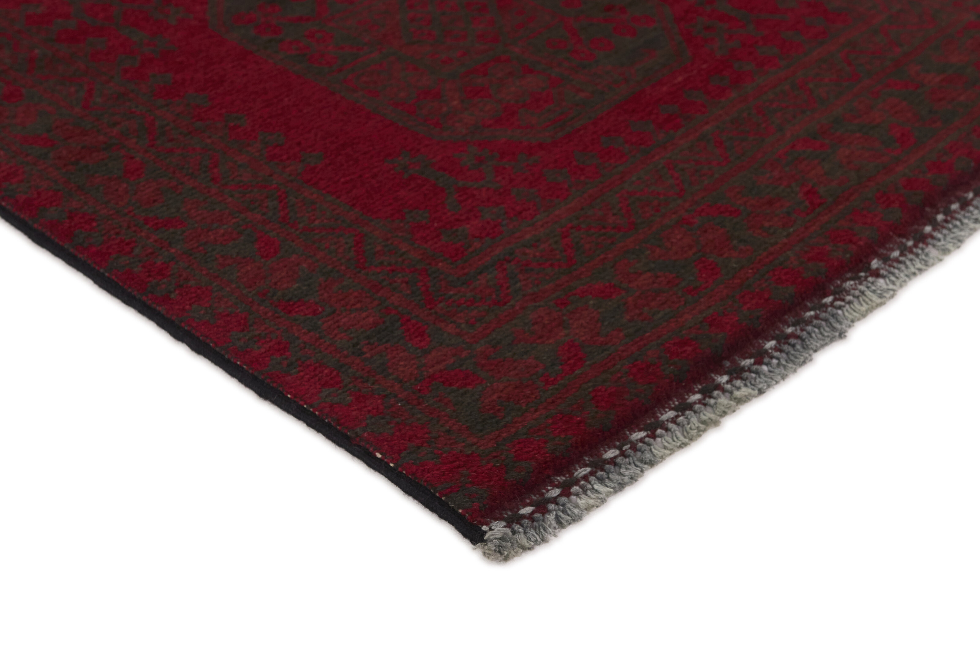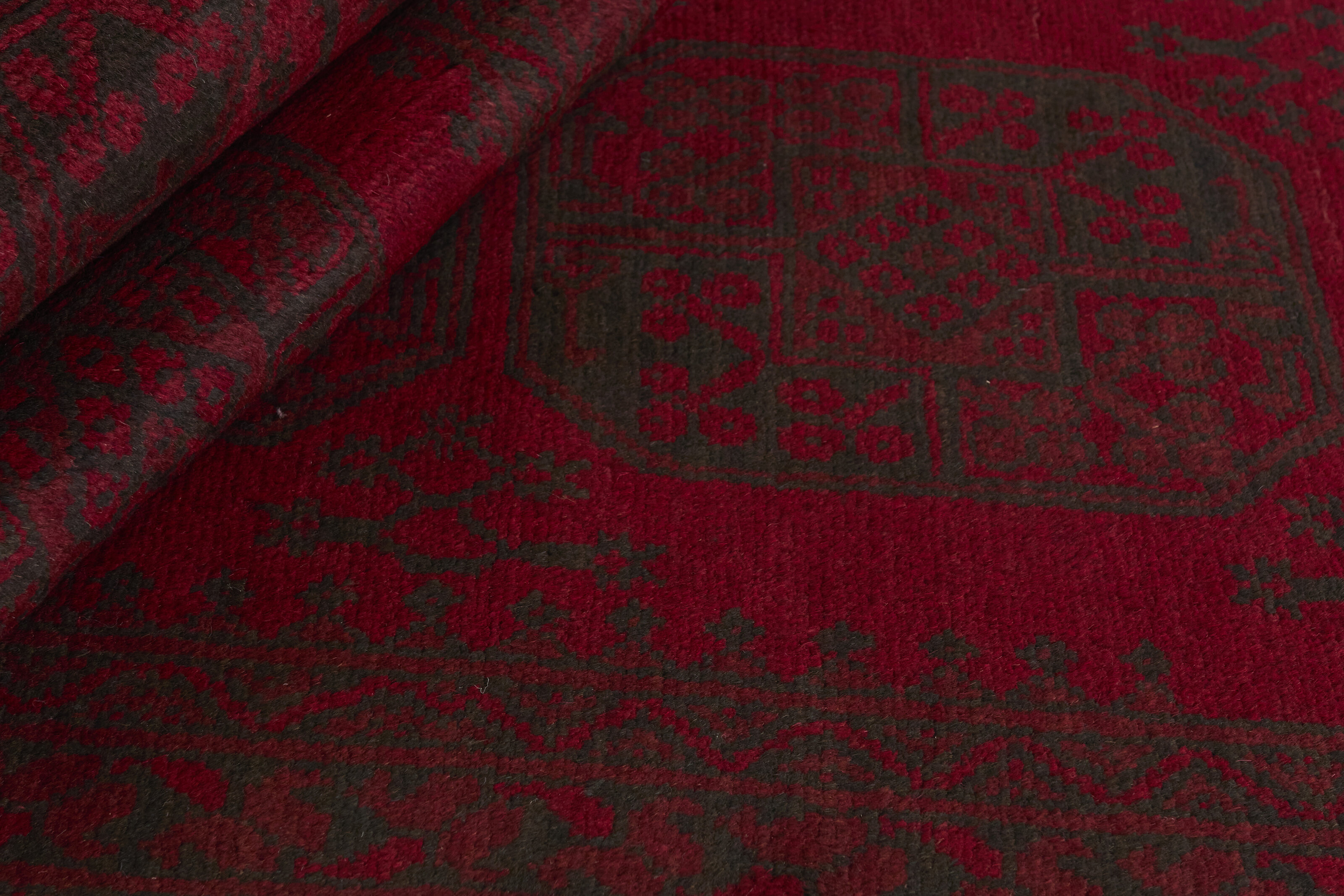 Aktscha rugs are knotted by Turkmens in the Aktscha (Acqcha) district, which is situated in the central part of the Jowzjan Province of northern Afghanistan. The Aktscha rugs are very similar to the Old Afghan (Khal Mohammadi) rugs, but are of a lower quality, as the knot density is lower. The rugs have the same characteristics, with the deep, warm, and fiery red base colour, the relatively high and sturdy pile, the wool base weave, and the use of goat’s and horse’s hair. The Gül (Elephant’s Foot) pattern is the primary pattern of the Aktscha rugs.