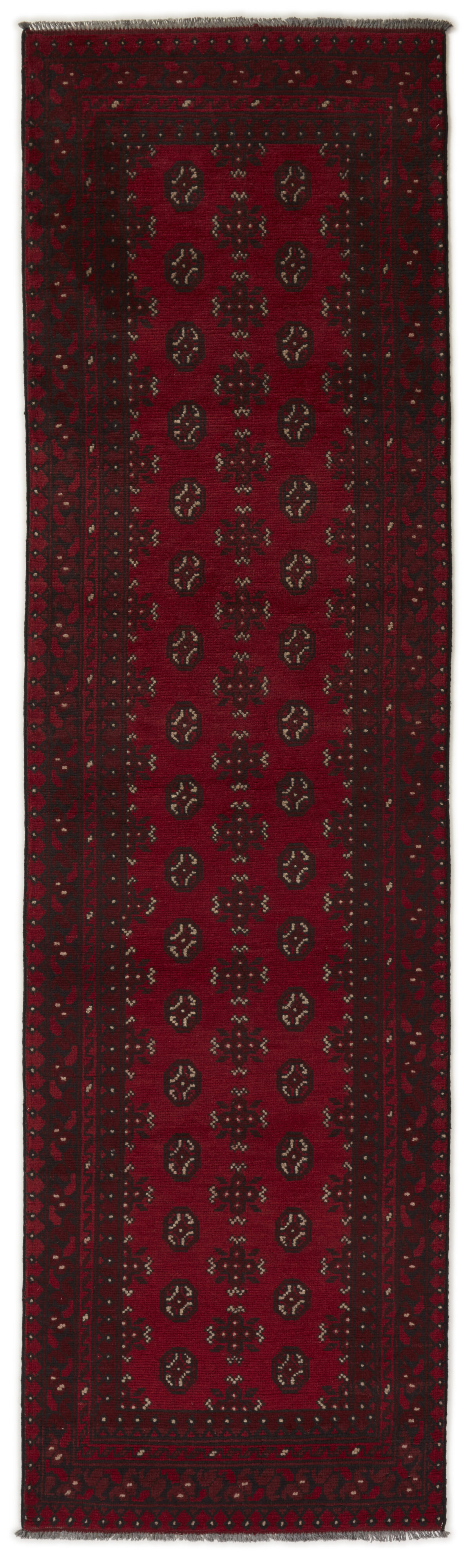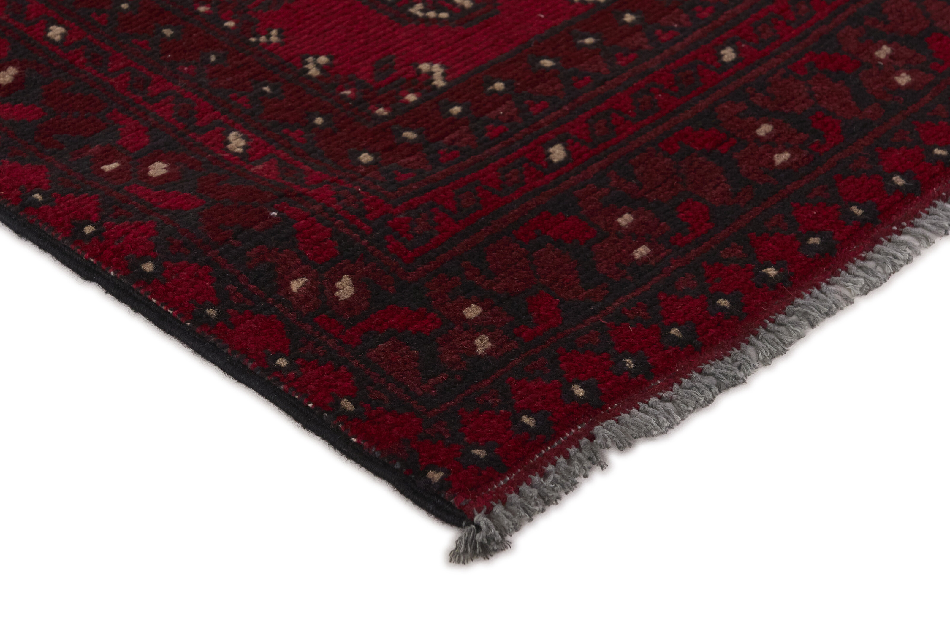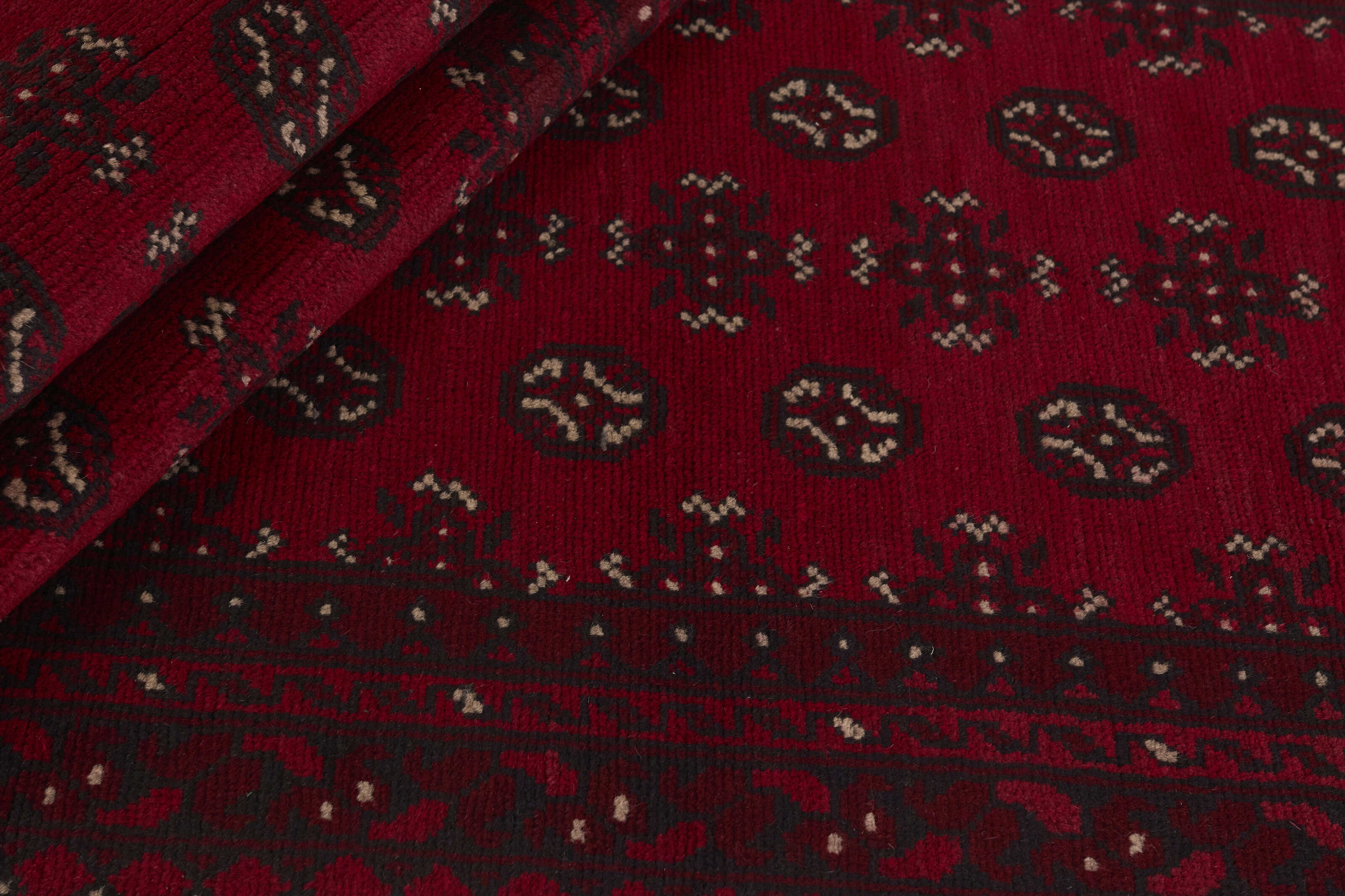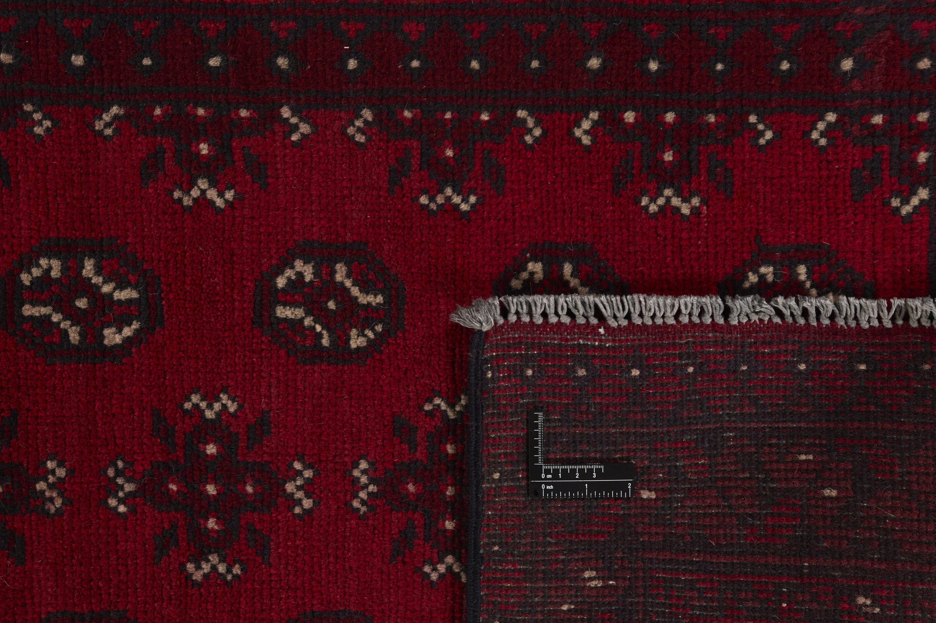 Aktscha rugs are knotted by Turkmens in the Aktscha (Acqcha) district, which is situated in the central part of the Jowzjan Province of northern Afghanistan. The Aktscha rugs are very similar to the Old Afghan (Khal Mohammadi) rugs, but are of a lower quality, as the knot density is lower. The rugs have the same characteristics, with the deep, warm, and fiery red base colour, the relatively high and sturdy pile, the wool base weave, and the use of goat’s and horse’s hair. The Gül (Elephant’s Foot) pattern is the primary pattern of the Aktscha rugs.