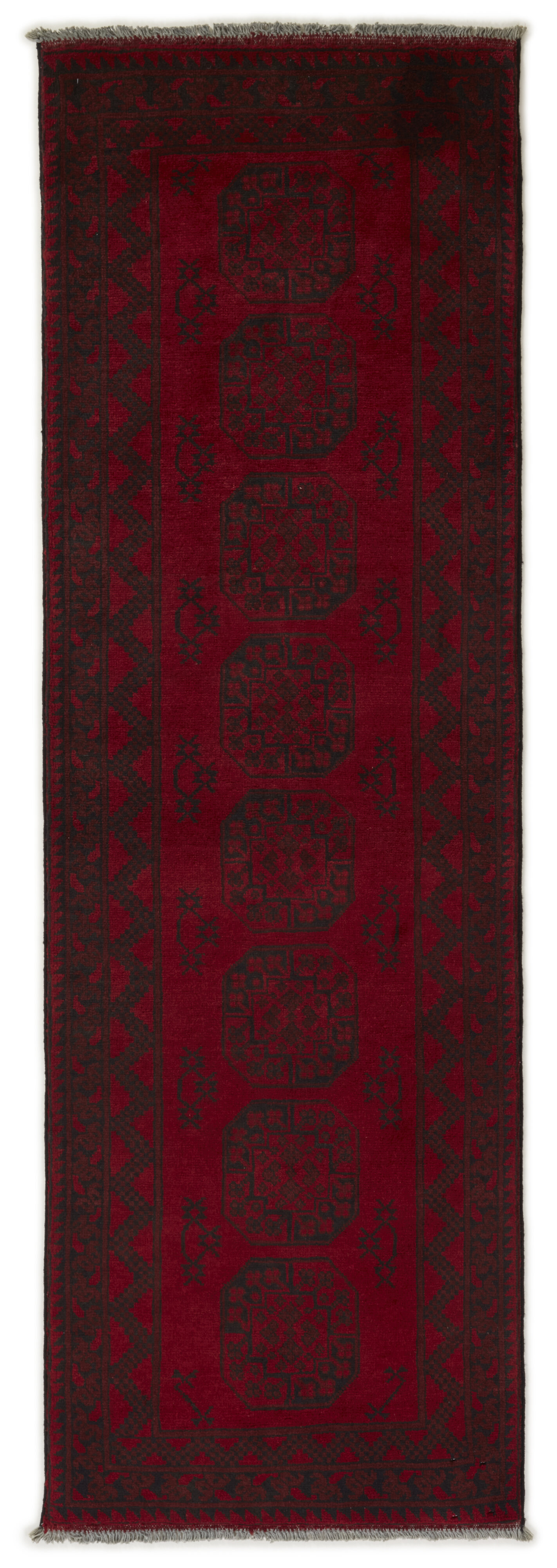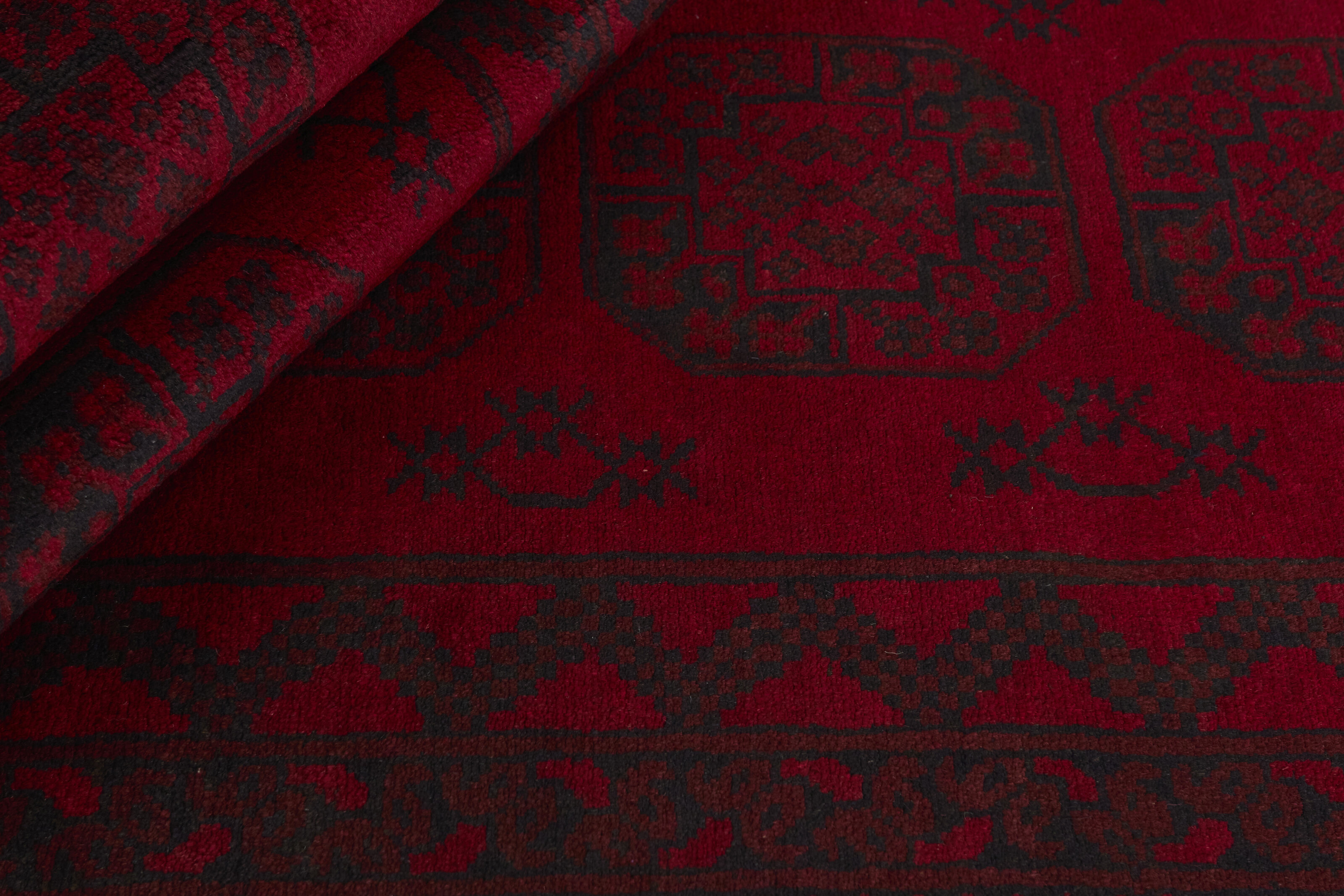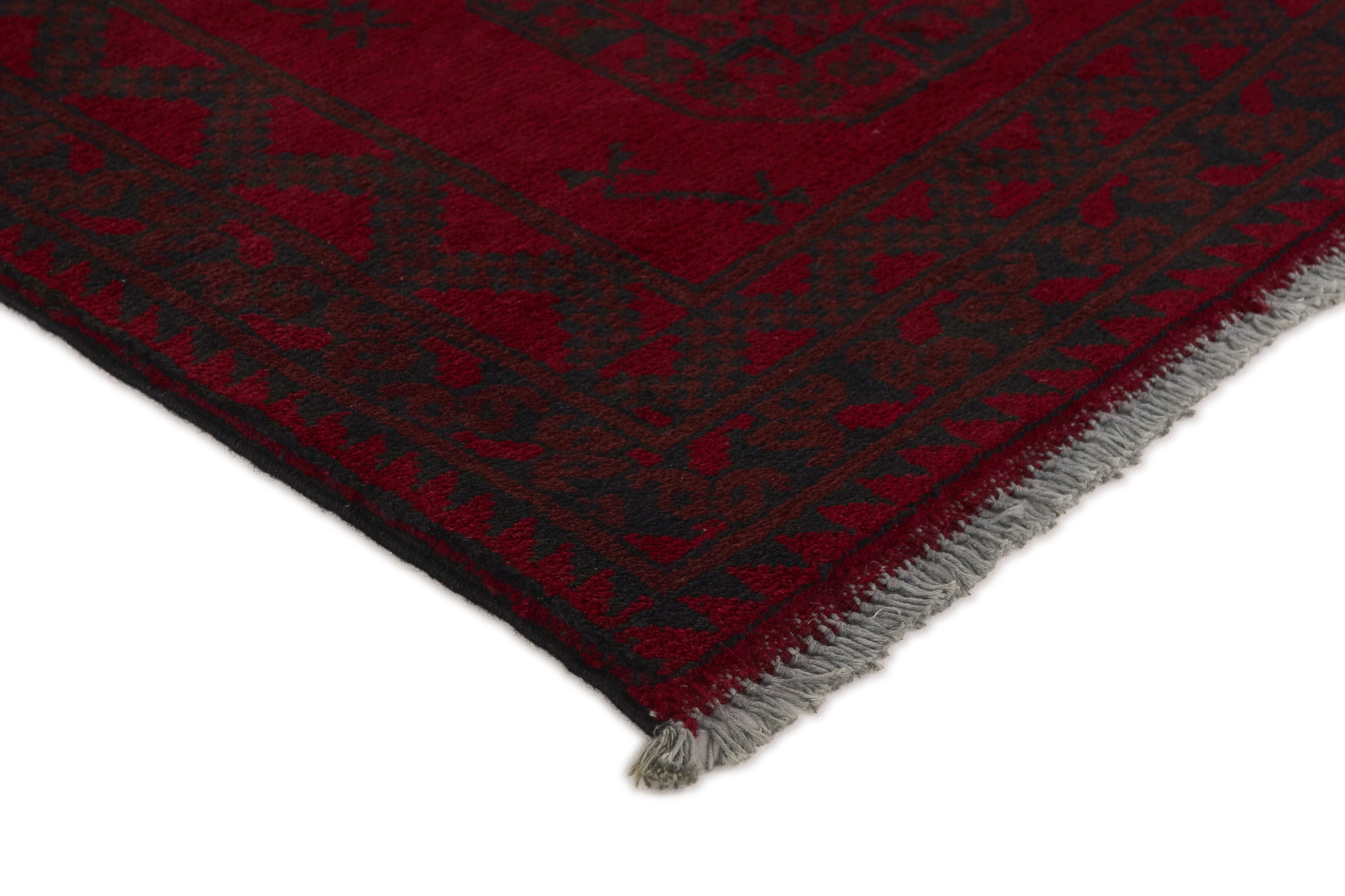Aktscha rugs are knotted by Turkmens in the Aktscha (Acqcha) district, which is situated in the central part of the Jowzjan Province of northern Afghanistan. The Aktscha rugs are very similar to the Old Afghan (Khal Mohammadi) rugs, but are of a lower quality, as the knot density is lower. The rugs have the same characteristics, with the deep, warm, and fiery red base colour, the relatively high and sturdy pile, the wool base weave, and the use of goat’s and horse’s hair. The Gül (Elephant’s Foot) pattern is the primary pattern of the Aktscha rugs.