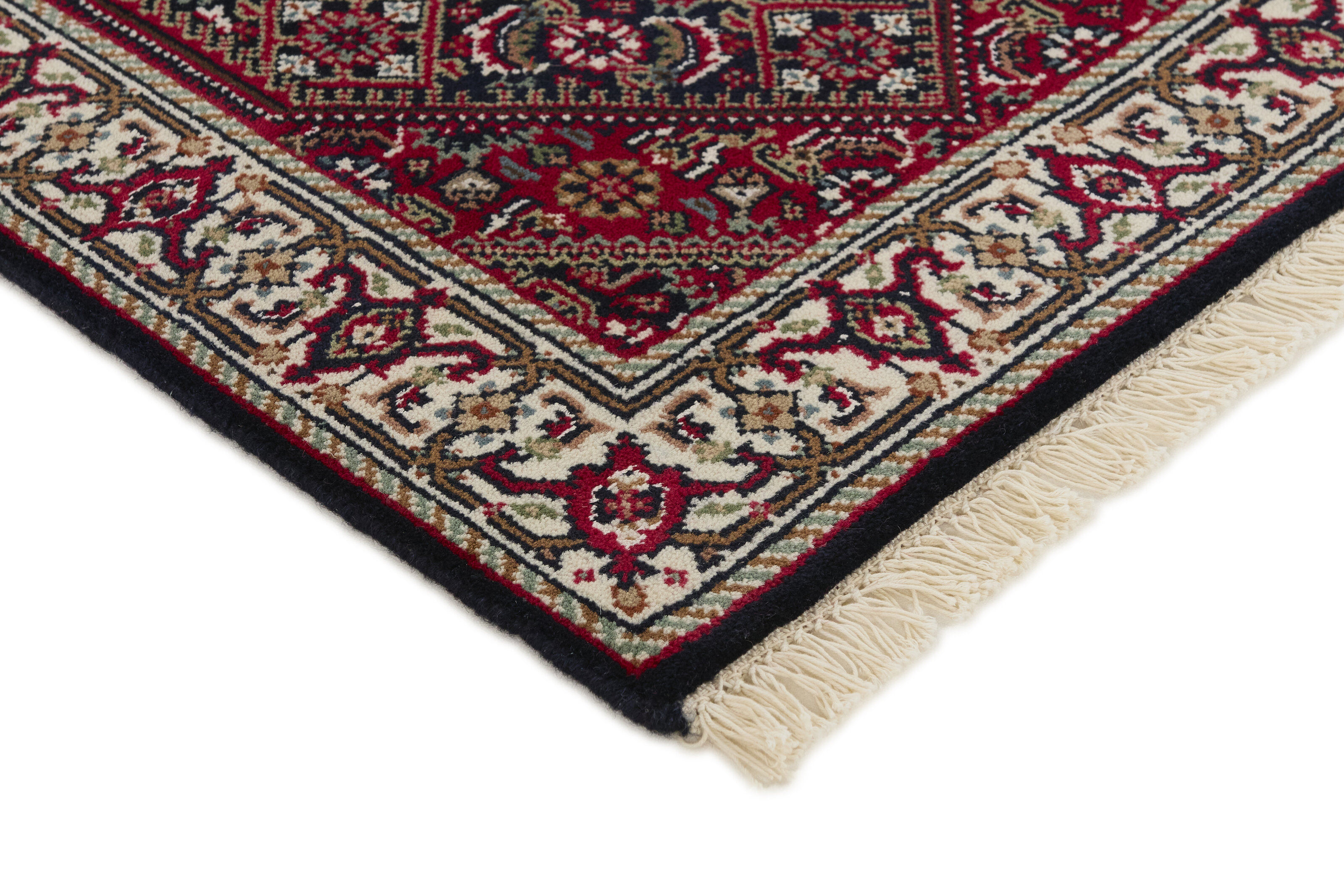 Bidjar Royals are classical hand knotted rugs from India, with designs inspired by the original Persian Bidjar rugs. The colours are red and the patterns are hexagonal, often with a large central medallion surrounded by two other hexagons. The trimmings are decorated with rosettes and flowers. There is some difference in quality between Royals and Indis, but it is not easily observable.