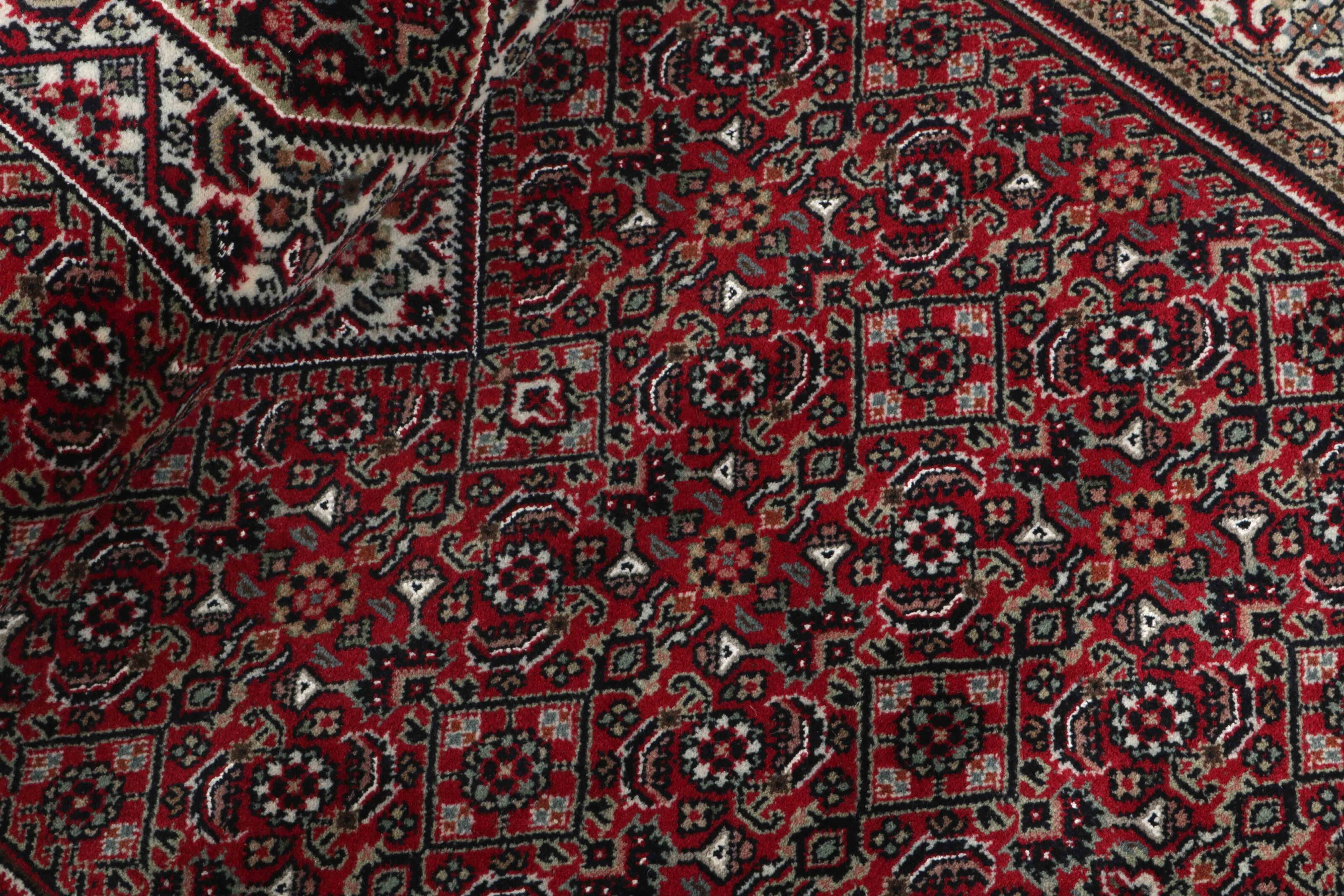 Bidjar Royals are classical hand knotted rugs from India, with designs inspired by the original Persian Bidjar rugs. The colours are red and the patterns are hexagonal, often with a large central medallion surrounded by two other hexagons. The trimmings are decorated with rosettes and flowers. There is some difference in quality between Royals and Indis, but it is not easily observable.