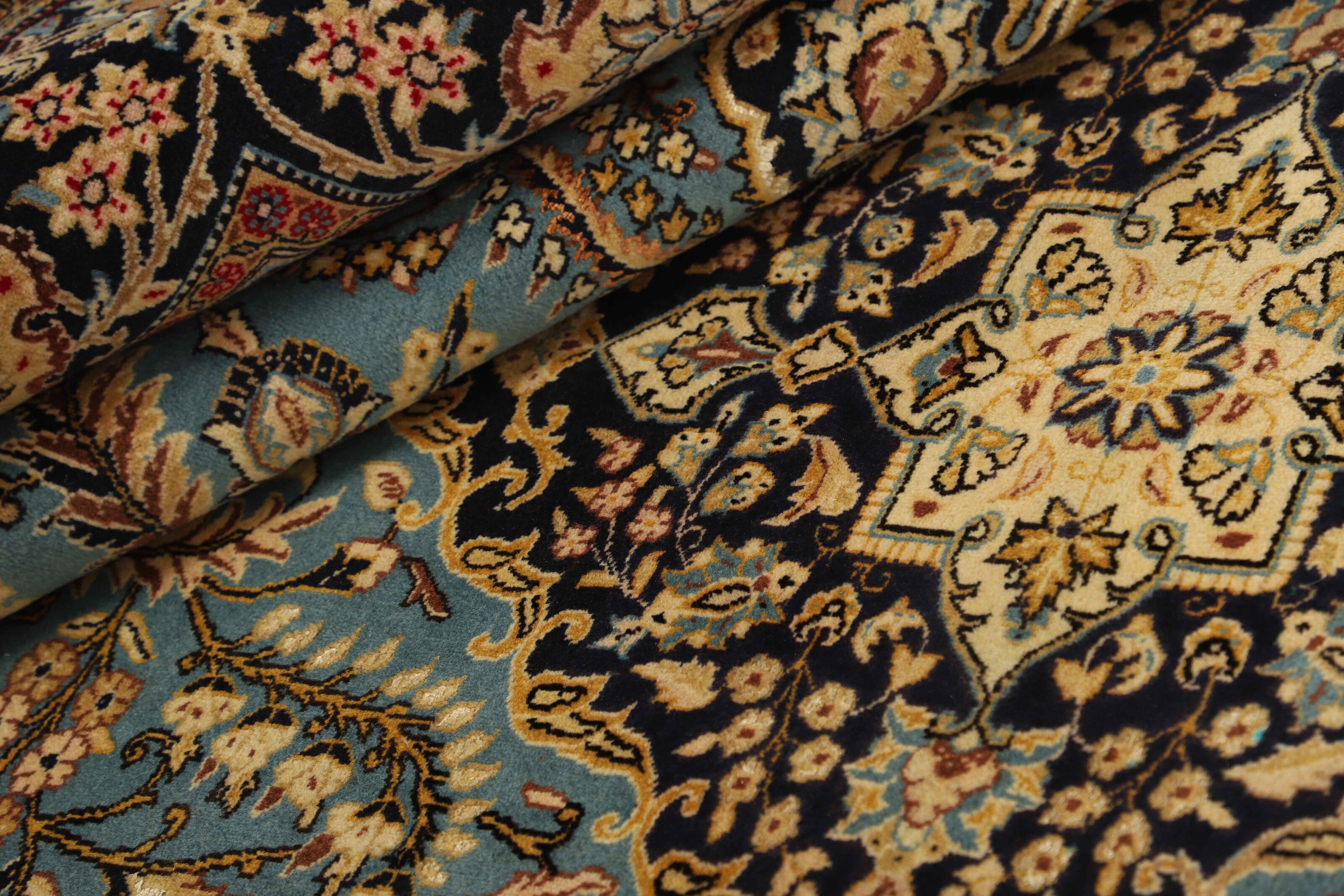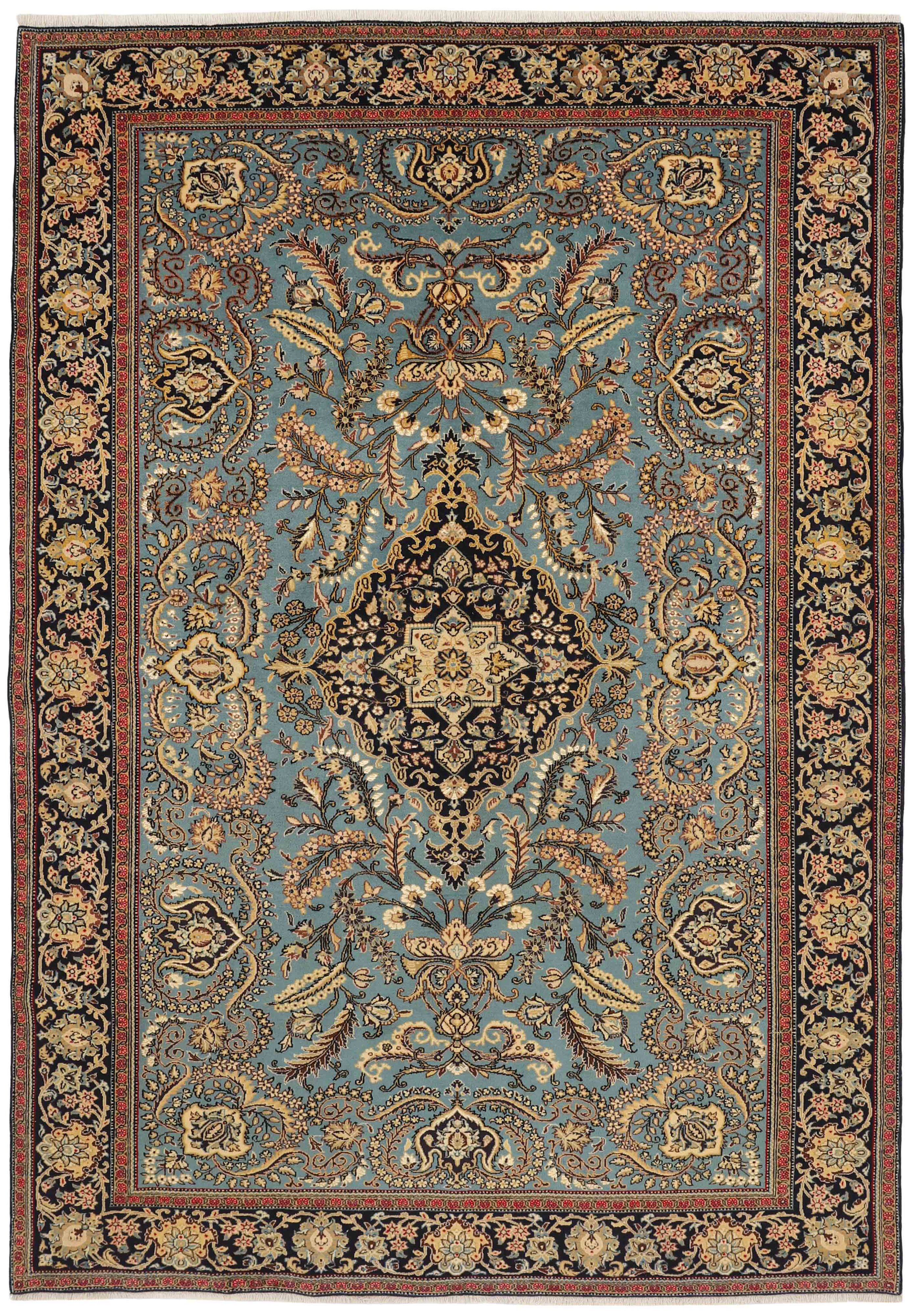 Ghom, a city of half a million people, lies south of Teheran, by the road to the Markazi (Central) province. The city’s rug industry was only developed after 1930 but has gained a good reputation. As there is no tradition or precedent to draw on, the weavers get their motifs from different sources, from where they transfer and combine them. Some patterns are completely copied and it is not uncommon to see copies of Joshqan or Sirjan rugs made in Ghom, but they much finer than the originals and made with a silk pile. In addition, several variations of medallions and uniform patterns are made. The pile is either silk with silk warp and weft, or wool, or wool mixed with silk, with a cotton base. The knotting is usually fine. A wide range of colours is used, sometimes in combinations that appear odd to westerners. A powerful pink and green is particularly characteristic of the silk rugs.