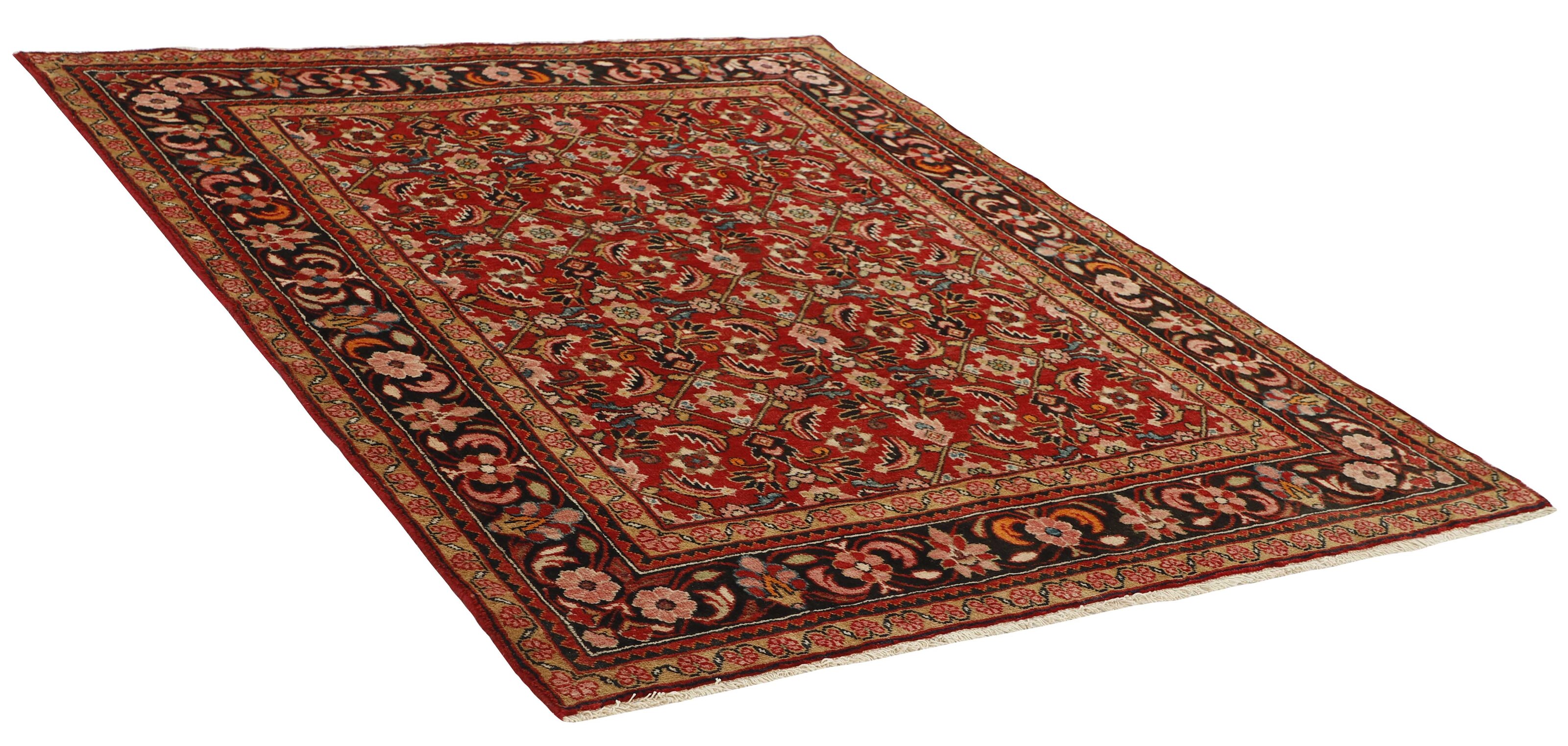 The city and the district of Hamadan is an important centre for the rug trade, as well as the most productive rug production area of Iran. Hamadan is a major city with hundreds of thousands of people. Like Ekbatan, it was a main city of the Achemenian kings. It has an indigenous Jewish population and numerous monuments, of which the most important are the tombs of Esther and Mordicai (central to Jewish pilgrims), and the tomb at Avicenna. Hamadan is a provincial capitol. Two types of rugs are knotted. One is the so-called “city rug”, also known as the Shahrbaff. The production is modern and largely state controlled. The village production, however, is much more important; Hamadan is a market city for many rug producing villages that each has its own pattern. Most prominent are Borchalu, Tuserkman, Memraban, Khamseh, Begardeh, Enjilas, Hosseinabad, and Zandjan. There is a wide range of patterns but the quality is very consistent. The colours are strong, and often plant colours. The patterns are daring, although random, and Hosseinabad and Enjilas in particular are known for through going patterns. The rugs are usually not much bigger than 3 by 2 metres.