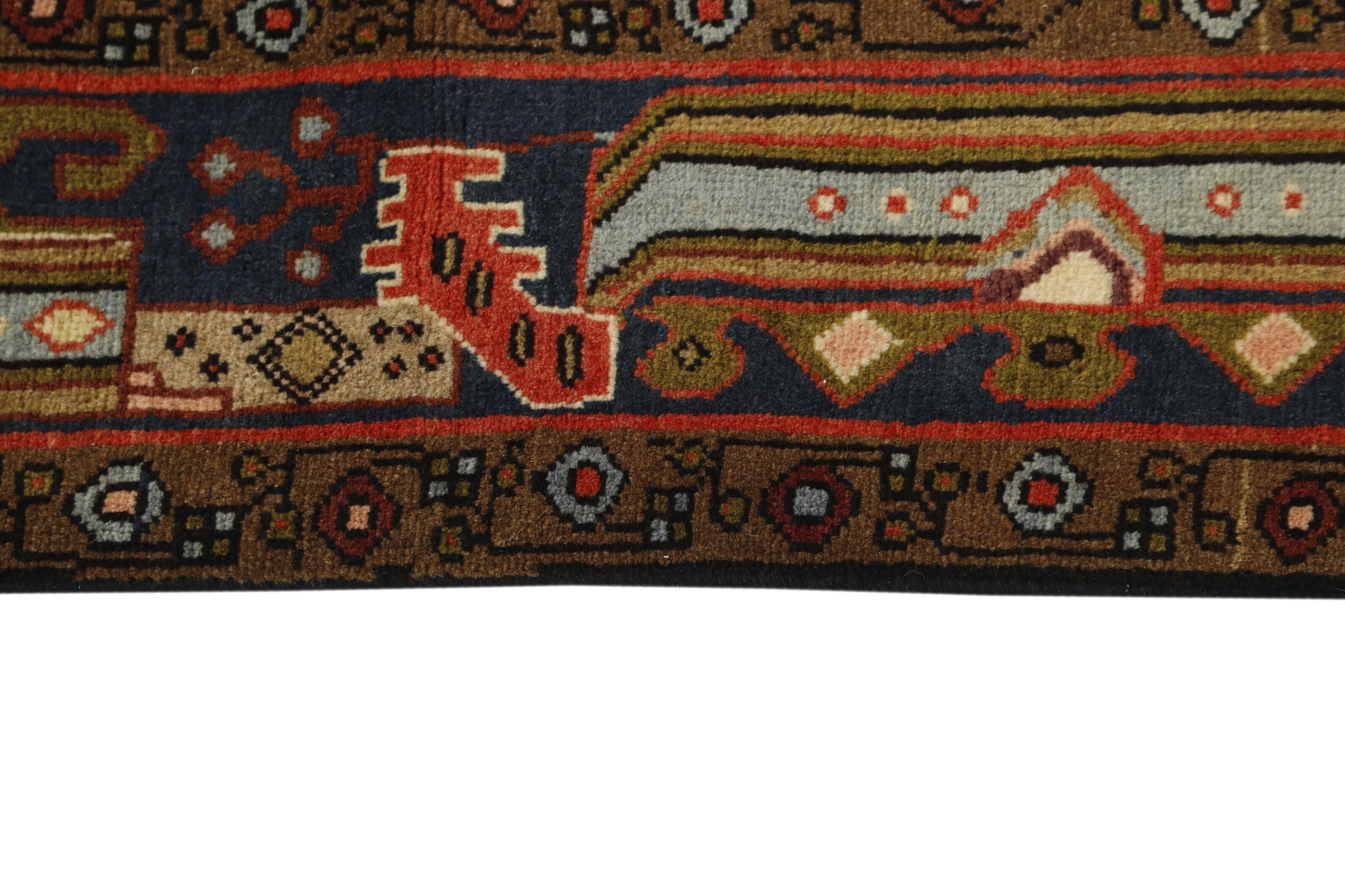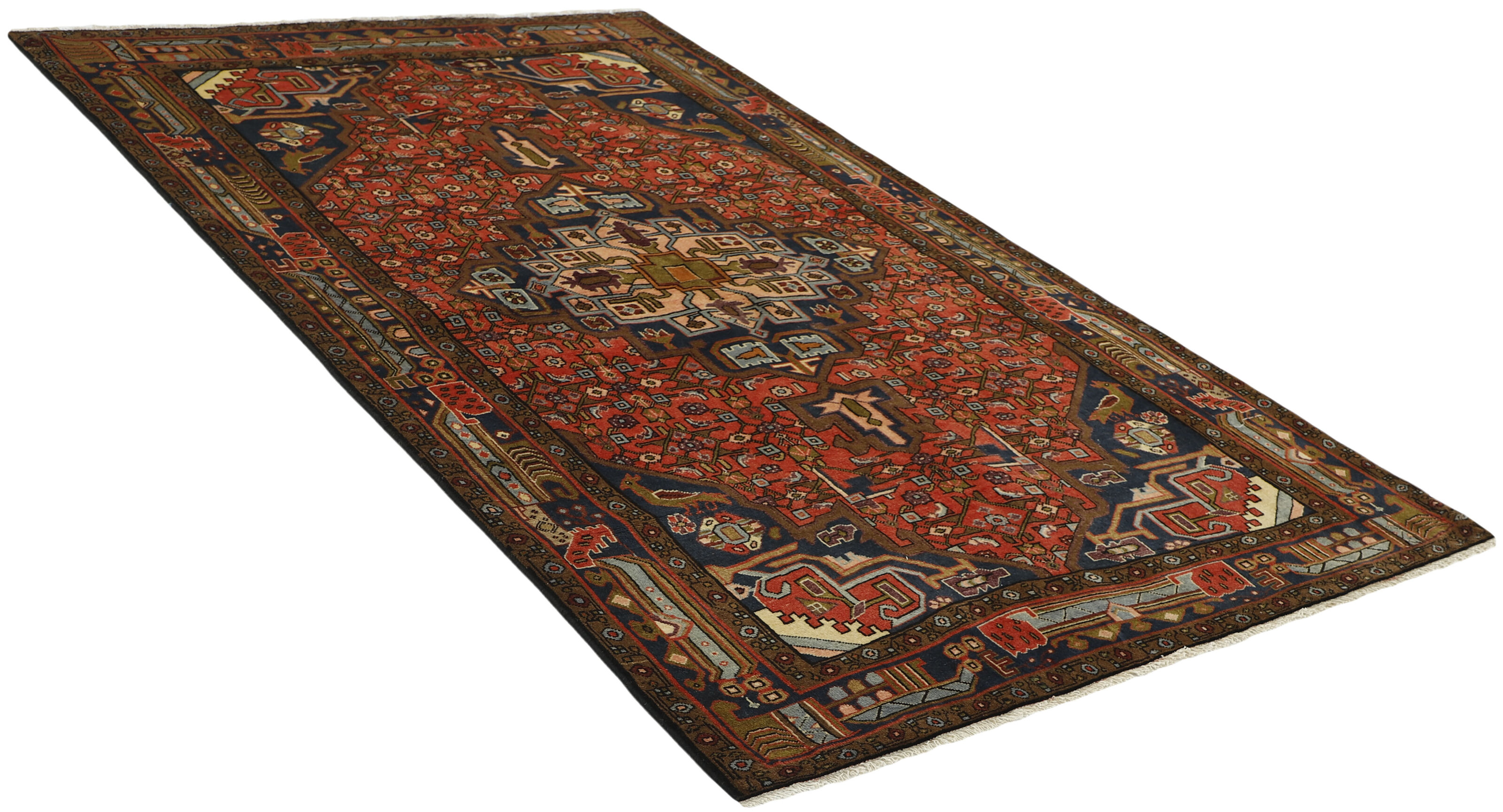 AsadabadItem no.: 1491081 Size: 145 cm x 238 cmThis rug is from the district of Hamadan which is an important centre for the rug trade, as well as the most productive rug production area of Iran. Hamadan is a major city with hundreds of thousands of people. Like Ekbatan, it was a main city of the Achemenian kings. It has an indigenous Jewish population and numerous monuments, of which the most important are the tombs of Esther and Mordicai (central to Jewish pilgrims), and the tomb at Avicenna. Hamadan is a provincial capitol. Two types of rugs are knotted. One is the so-called “city rug”, also known as the Shahrbaff. The production is modern and largely state controlled. The village production, however, is much more important; Hamadan is a market city for many rug producing villages that each has its own pattern. Most prominent are Borchalu, Tuserkman, Memraban, Khamseh, Begardeh, Enjilas, Hosseinabad, and Zandjan. There is a wide range of patterns but the quality is very consistent. The colours are strong, and often plant colours. The patterns are daring, although random, and Hosseinabad and Enjilas in particular are known for through going patterns. The rugs are usually not much bigger than 3 by 2 metres.