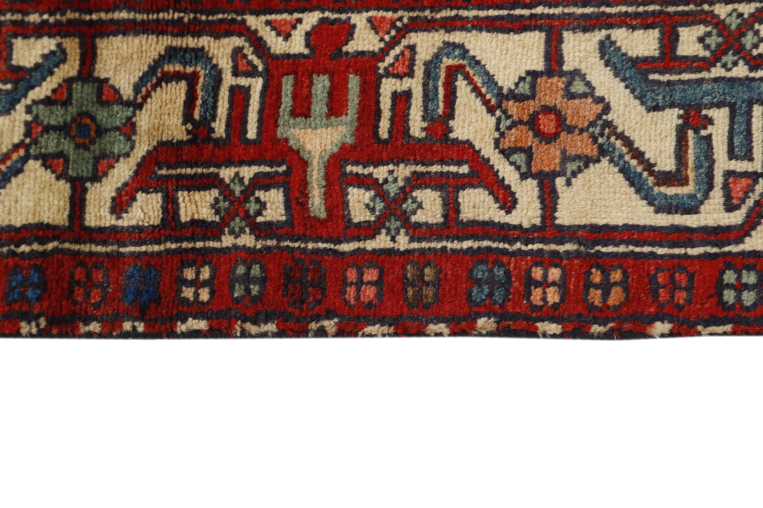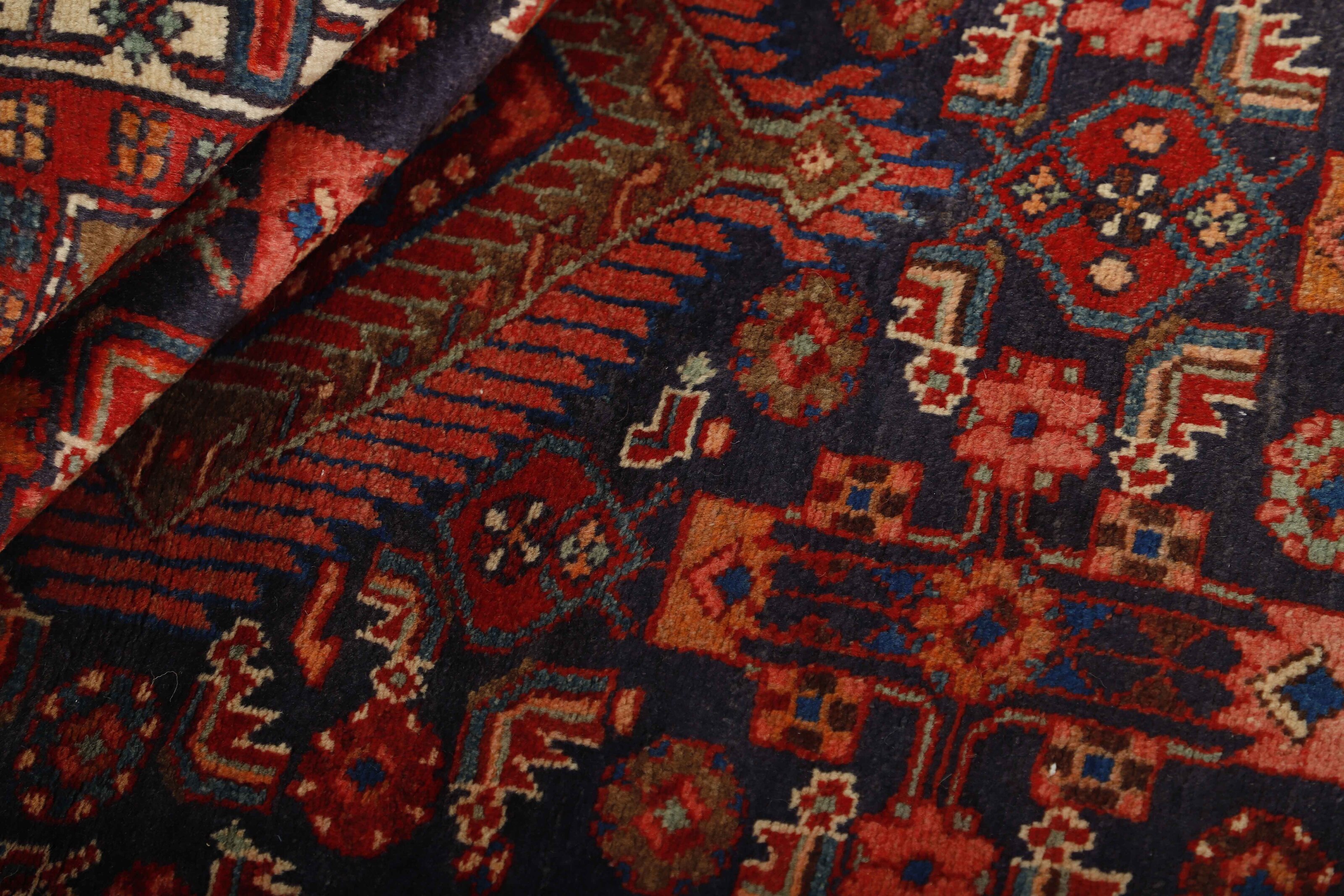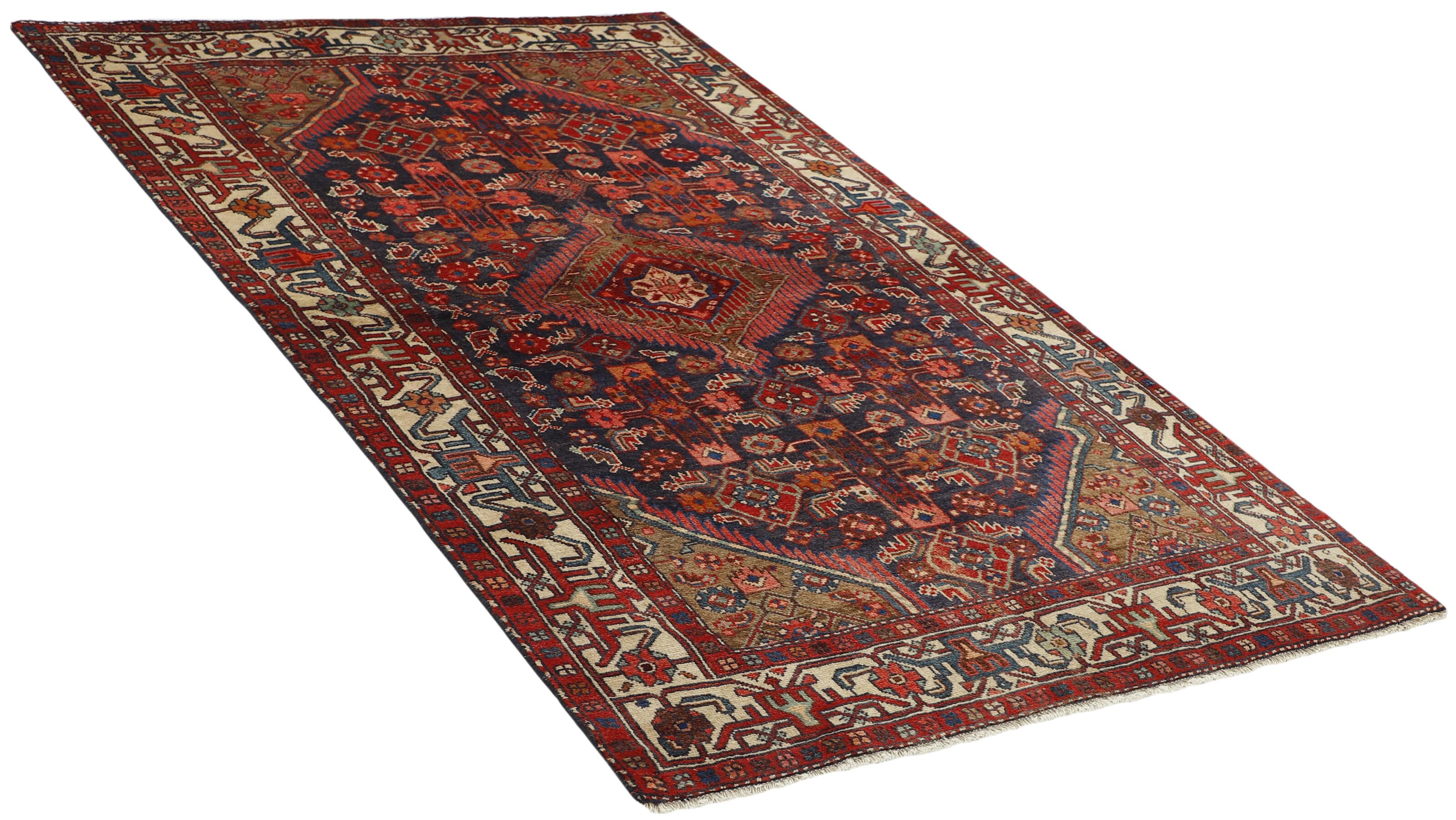 AsadabadItem no.: 1491091 Size: 128 cm x 216 cmThis rug is from the district of Hamadan which is an important centre for the rug trade, as well as the most productive rug production area of Iran. Hamadan is a major city with hundreds of thousands of people. Like Ekbatan, it was a main city of the Achemenian kings. It has an indigenous Jewish population and numerous monuments, of which the most important are the tombs of Esther and Mordicai (central to Jewish pilgrims), and the tomb at Avicenna. Hamadan is a provincial capitol. Two types of rugs are knotted. One is the so-called “city rug”, also known as the Shahrbaff. The production is modern and largely state controlled. The village production, however, is much more important; Hamadan is a market city for many rug producing villages that each has its own pattern. Most prominent are Borchalu, Tuserkman, Memraban, Khamseh, Begardeh, Enjilas, Hosseinabad, and Zandjan. There is a wide range of patterns but the quality is very consistent. The colours are strong, and often plant colours. The patterns are daring, although random, and Hosseinabad and Enjilas in particular are known for through going patterns. The rugs are usually not much bigger than 3 by 2 metres.