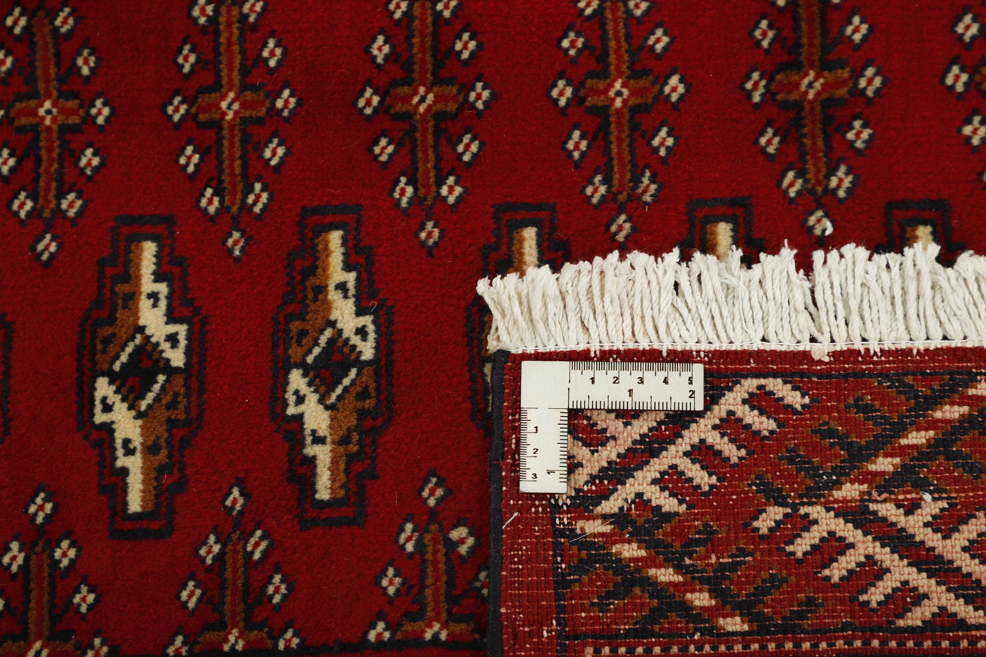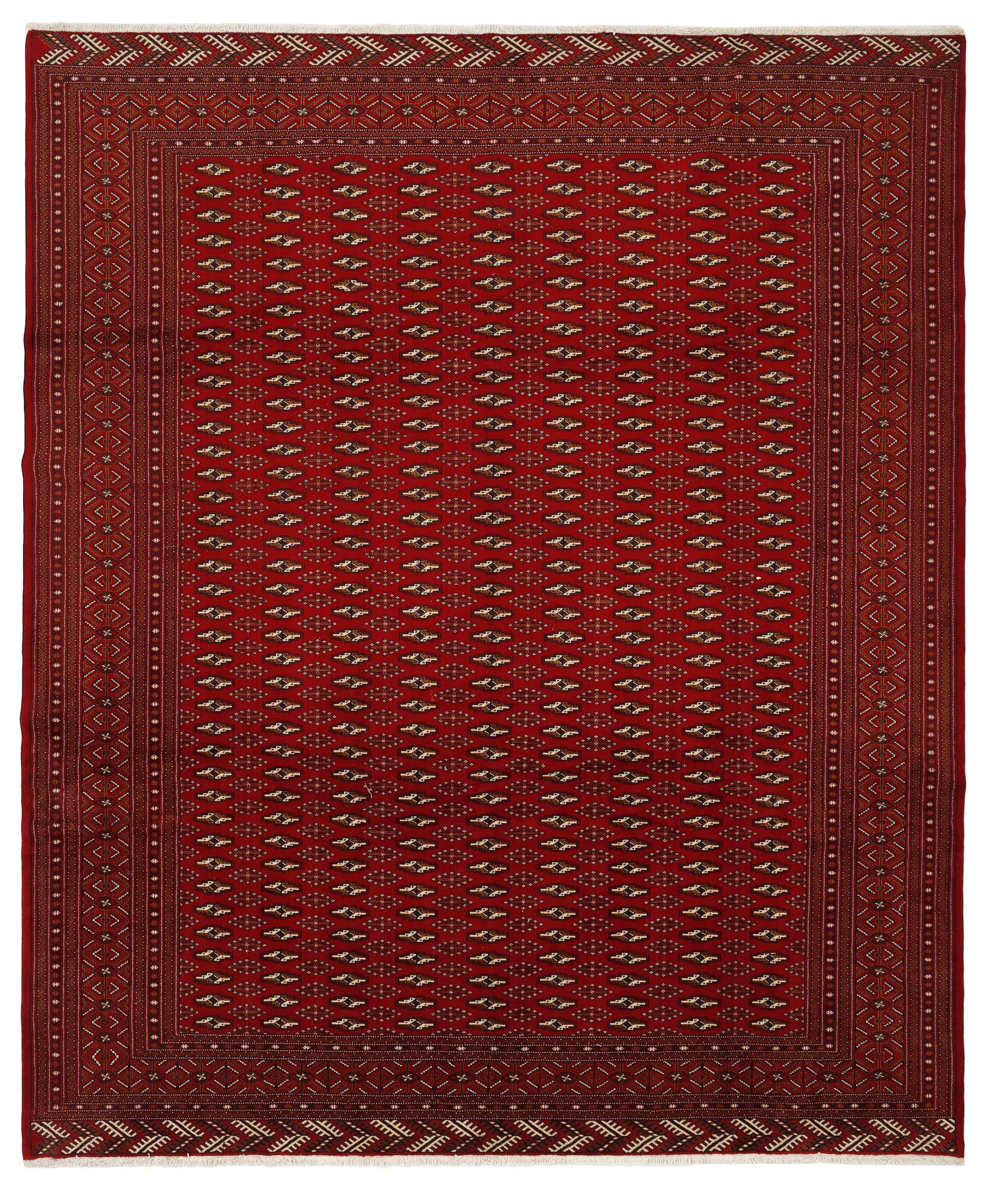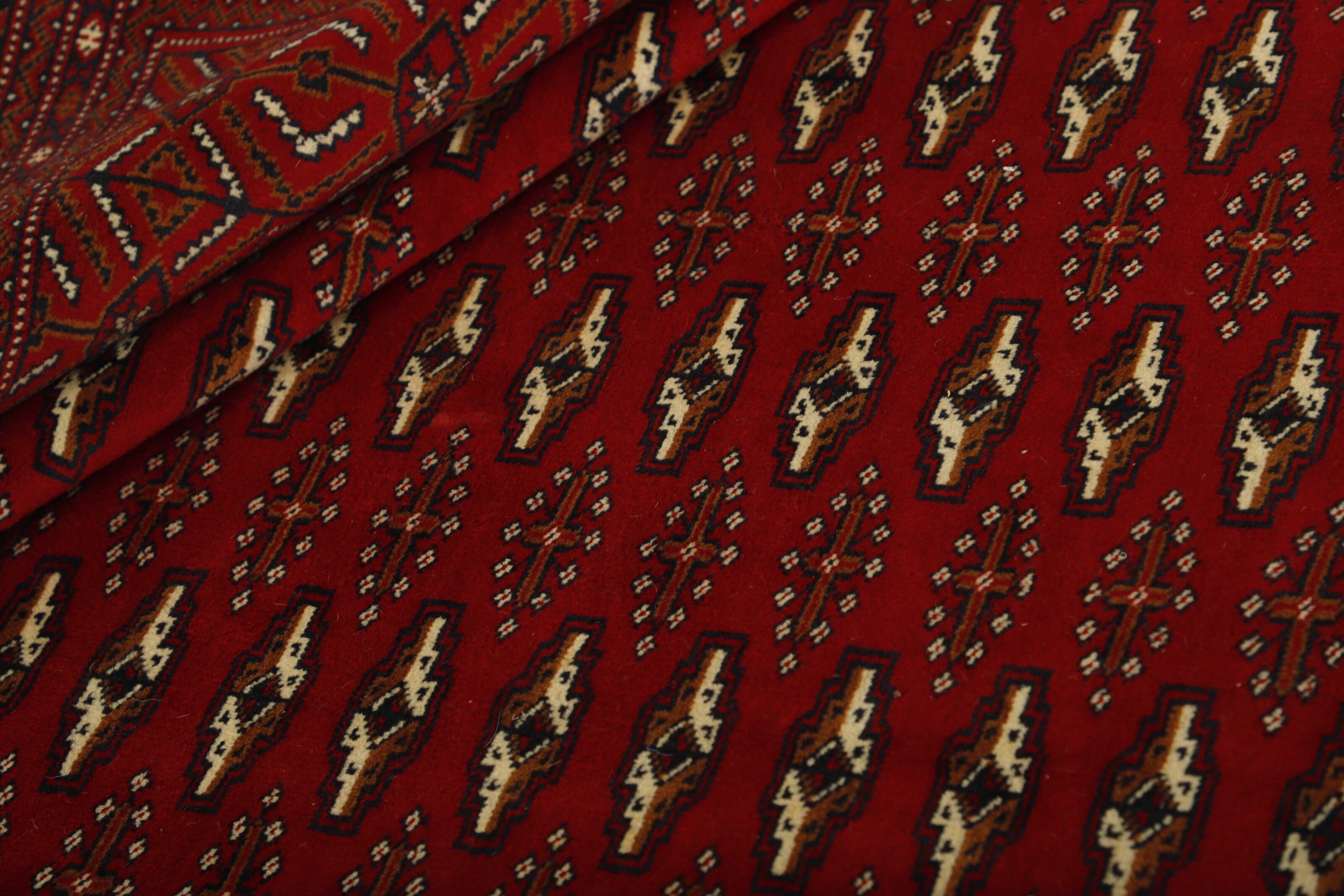 The Turkmen are a very significant tribe, mostly inhabiting Afghanistan and the former Soviet Republic of Turkmenistan. The Iranian population is limited to an area around Gonbad-e- Kavus (500.000 inhabitants) in the Mazandran Province. The Iranian Turkmens belong to three tribes; the Yomut, the Tekke, and the Atabat. The first two are most famous for their rugs. They were originally nomadic tribes, but most Iranian Turkmens are now settled, although they often have a traditional round tent in a square near their modern brick houses. Turkmen rugs are traditionally made of wool and have a limited range of colours; red, black, and ivory, sometimes mixed with other colours and silk. The typical patterns are geometrical flowers (güls), and octagonal patterns with variations according to tribe. According to tradition, the rugs are made in several sizes, depending on where in the tent they are to be used; as door curtains, bag covers, etc. Very large rugs are sometimes made to order for tribal chiefs.