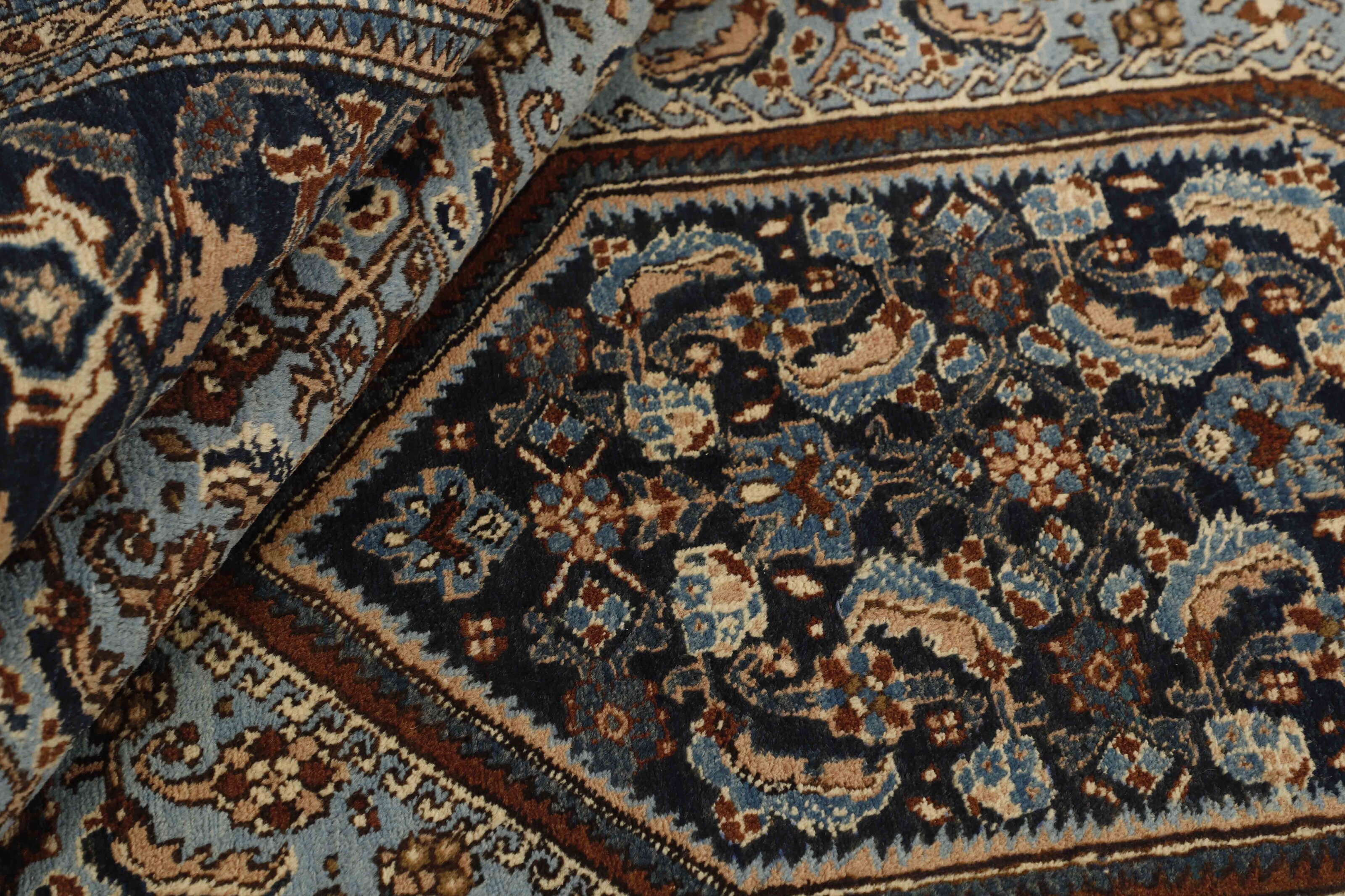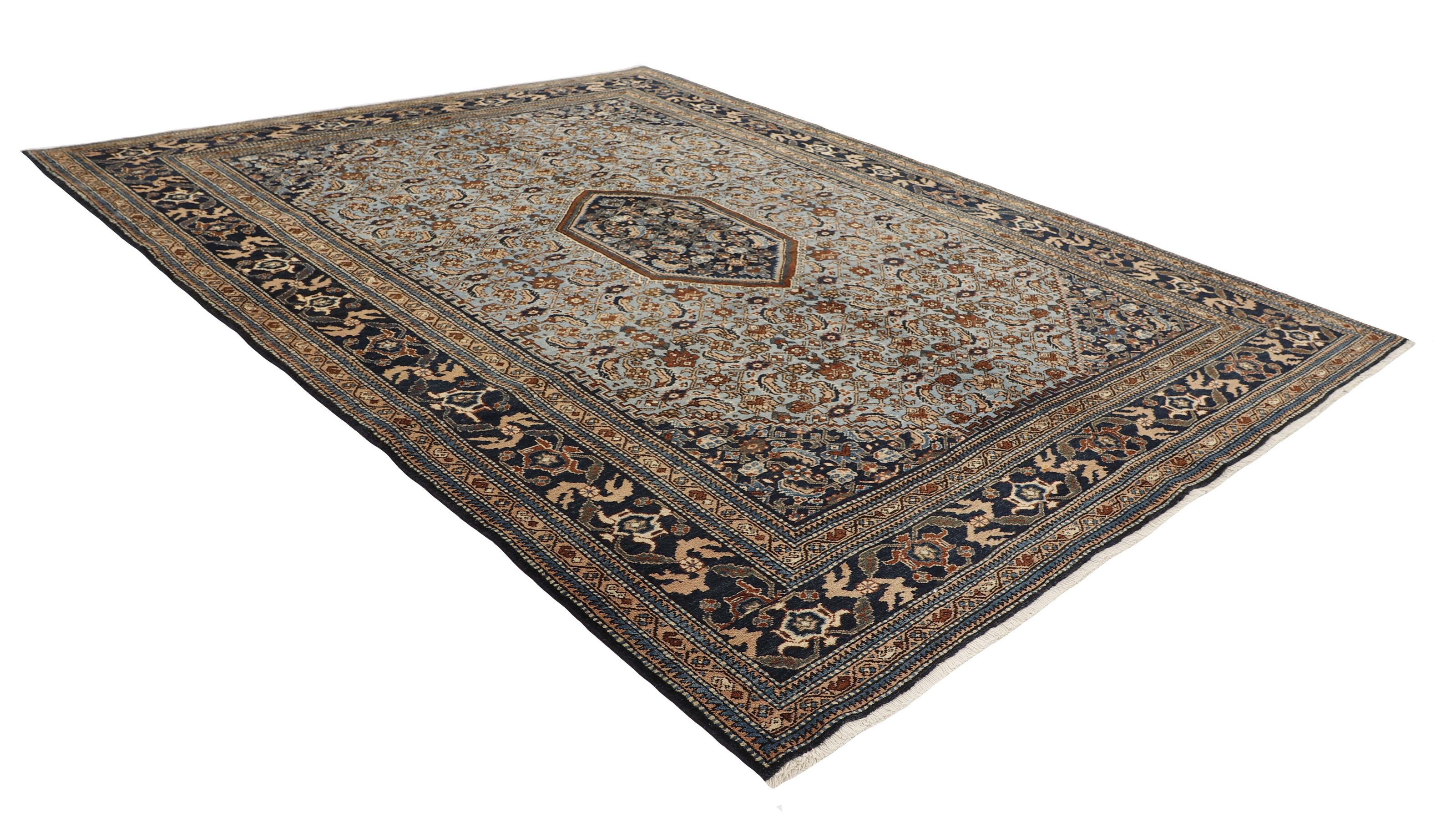 ArdebilItem no.: 1519715 Size: 227 cm x 322 cmArdebil and Meshkin (or Meshkinshahr) are situated in East Azerbaijan, east of Tabriz. Ardebil is the biggest and most important of the two cities, and it was home to the Safavaids, a royal family in 17th century Iran. The Safavid mosque and mausoleum complex is located in the city centre. The two 1542 rugs known as the Ardebil rugs, now shared between London and California, were originally placed in the mosque. The rugs produced in Ardebil and Meshkin today are heavily influenced by impressions from other parts of Azerbaijan; by the village rugs covered in geometrical patterns, and by the Tabriz rugs, with their simple patterns and medallions on a Herati base, which provides a beautiful contrast to the calm blue, red, or cream coloured base. Wool and cotton is used for the warp and weft, while the pile is generally wool, although there is a significant production of rugs with mixed silk/wool piles.