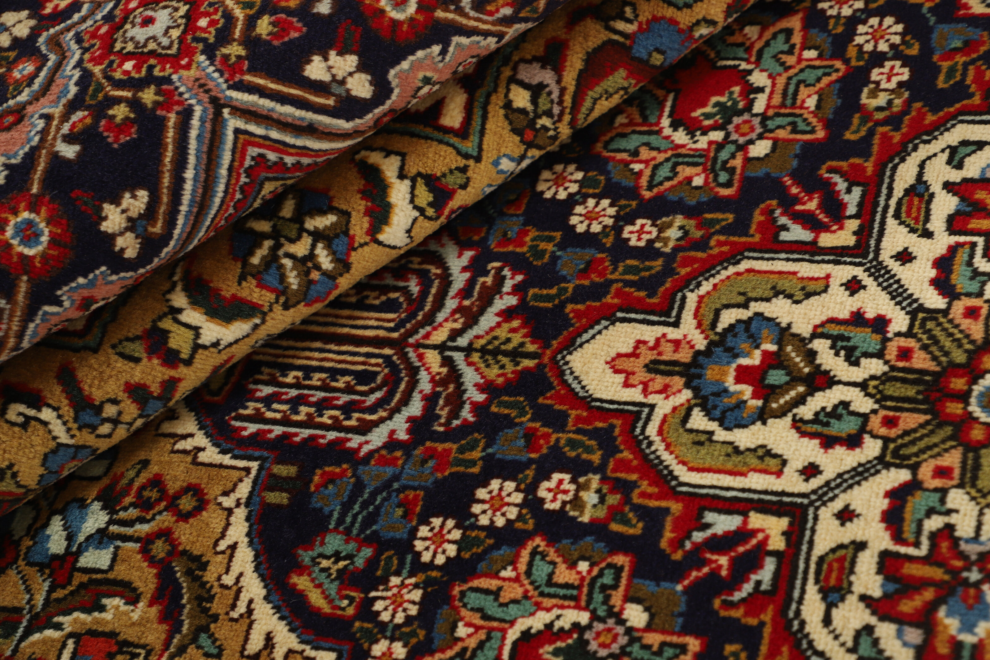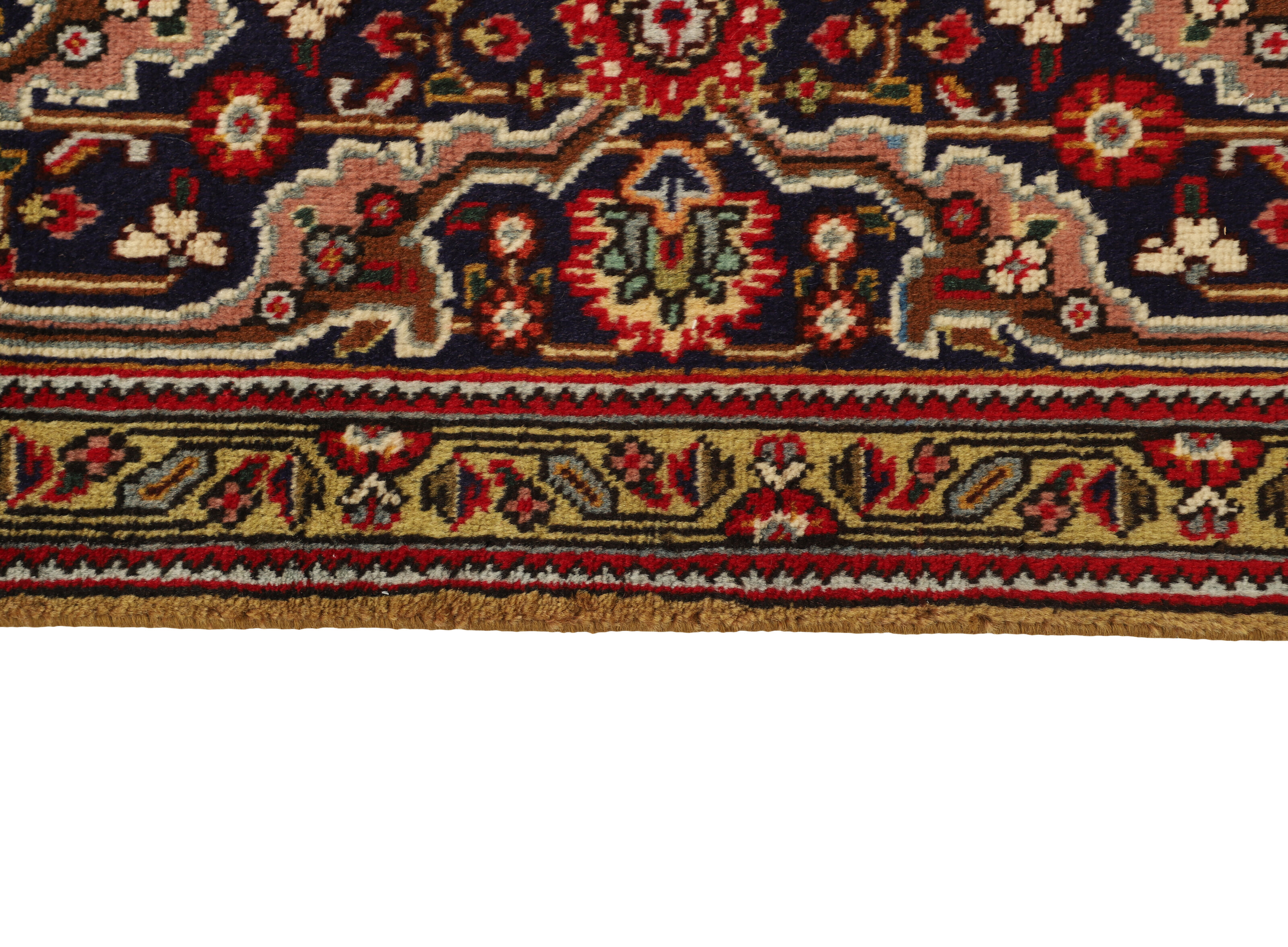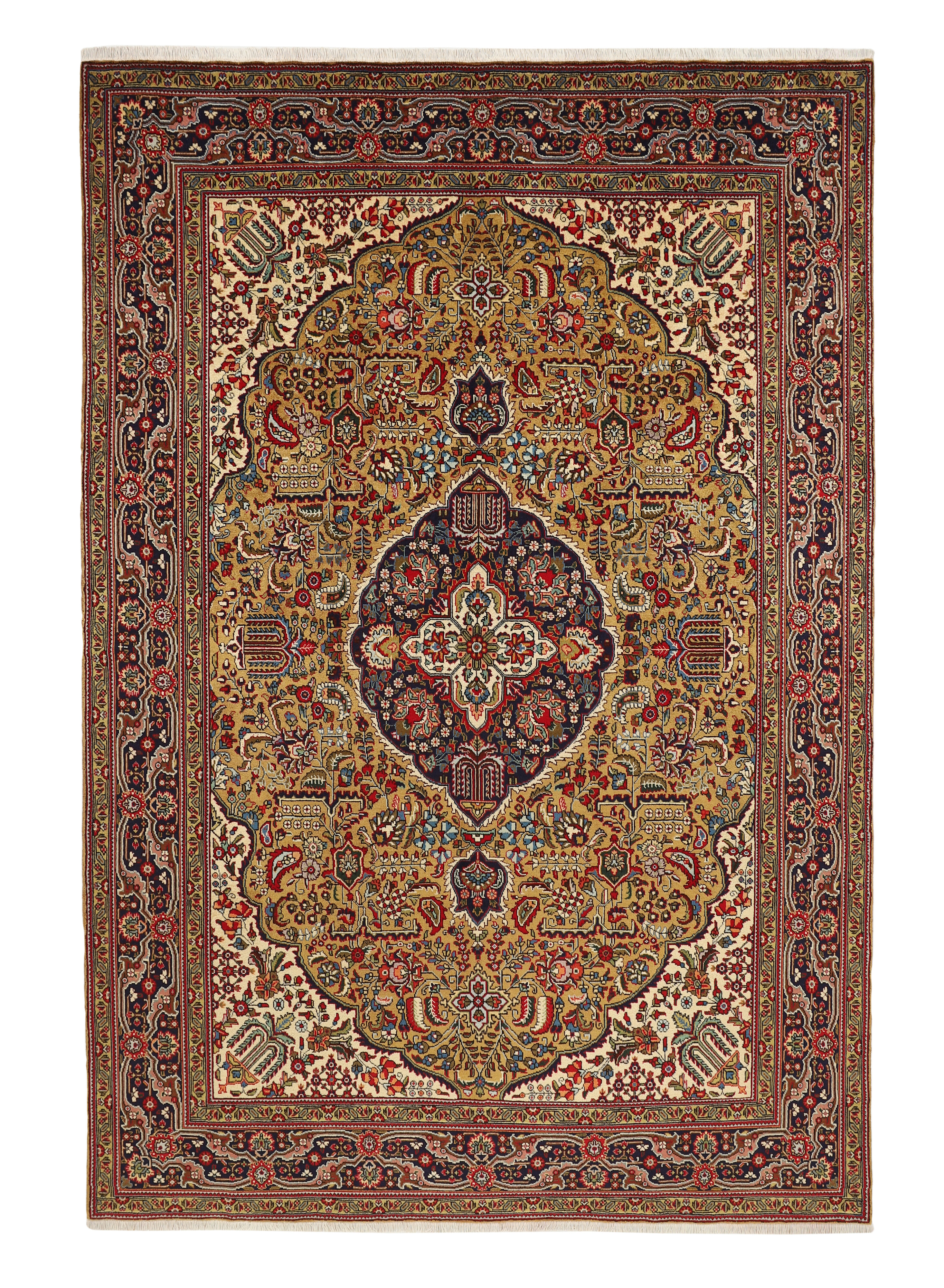 TabrizItem no.: 1519861 Size: 251 cm x 356 cmTabriz is one of the most important cities in Iran. It has a population of 1,5 million people, and is the capitol of the East Azerbaijan province. As one of Persia’s biggest rug producing regions, Tabriz rugs are exported in all qualities, from the more simple to the most luxurious. The best qualities are divided into two main categories; the Tabriz Mahi, also known as “Tabriz fish pattern” (the rug’s leaf-shaped pattern is called Mahi, meaning “fish”), and the Tabriz Nagsheh, which means pattern. In this context, it refers to the figurative patterns and symbols from Keshan and Isfahan, which inspire the Tabriz Nagsheh rug. The knotters are incredibly skilled, and they have invented a special type of hook, which they can use instead of their fingers for knotting the knots. Warp and weft are cotton, and the pile is wool, often with silk woven into it in the finer qualities. The colours in the better rugs are fine and refined. The roughest qualities have bright colours and are rarely exported. Tabriz rugs are often given a number, such as Tabriz 50, which is an indication of quality. Tabriz 50 has 500.000 knots per m2. Rugs from Tabriz are regarded as being of a durable, very high quality.