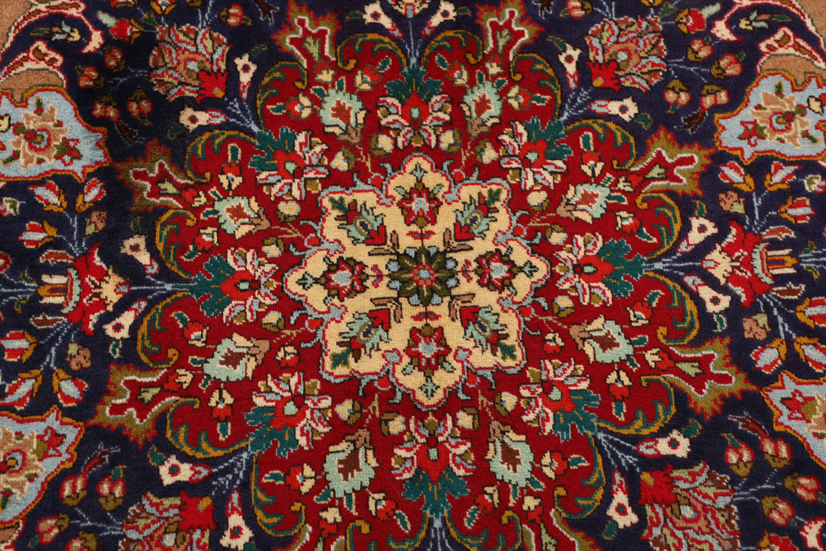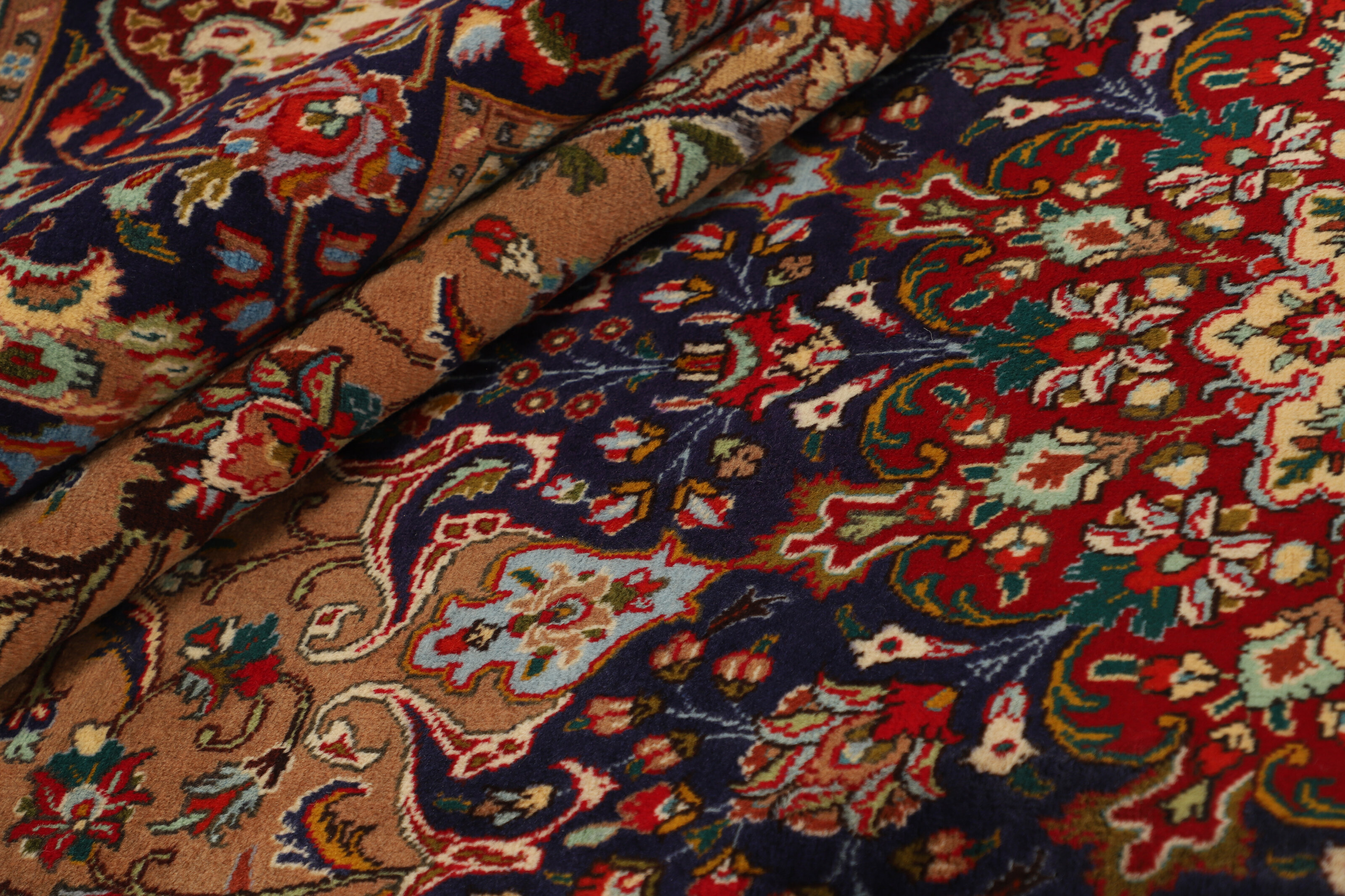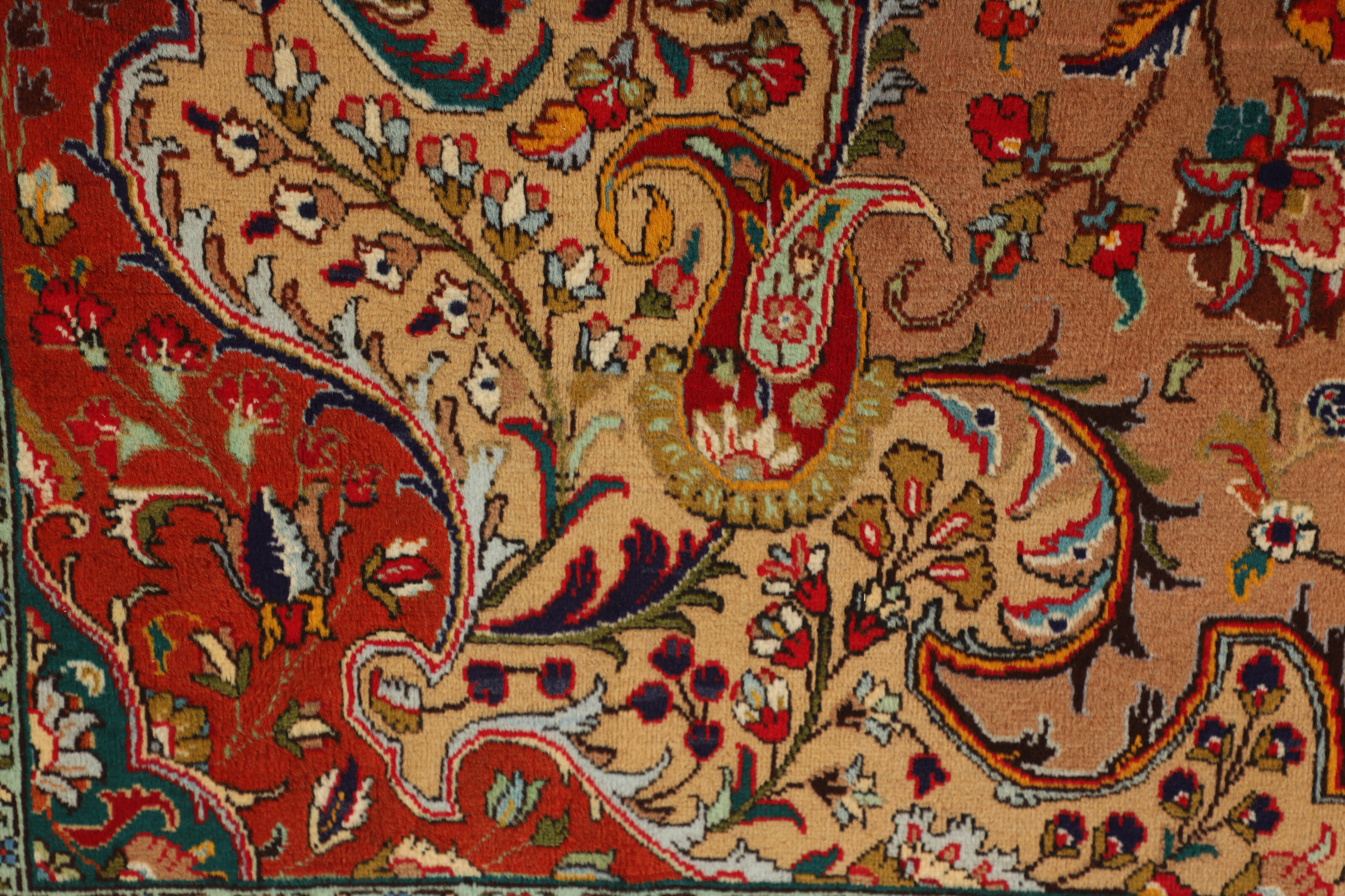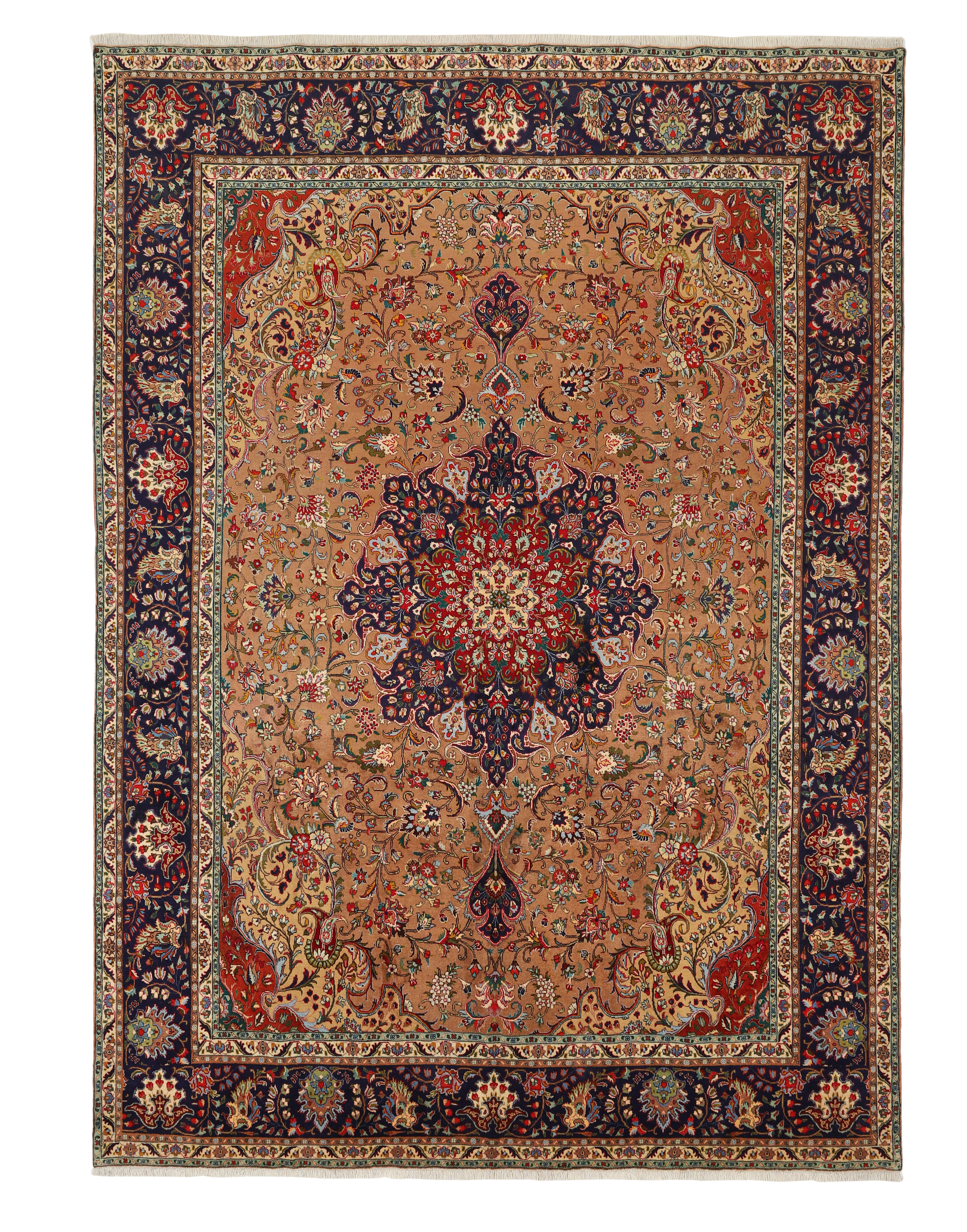 TabrizItem no.: 1519862 Size: 288 cm x 391 cmTabriz is one of the most important cities in Iran. It has a population of 1,5 million people, and is the capitol of the East Azerbaijan province. As one of Persia’s biggest rug producing regions, Tabriz rugs are exported in all qualities, from the more simple to the most luxurious. The best qualities are divided into two main categories; the Tabriz Mahi, also known as “Tabriz fish pattern” (the rug’s leaf-shaped pattern is called Mahi, meaning “fish”), and the Tabriz Nagsheh, which means pattern. In this context, it refers to the figurative patterns and symbols from Keshan and Isfahan, which inspire the Tabriz Nagsheh rug. The knotters are incredibly skilled, and they have invented a special type of hook, which they can use instead of their fingers for knotting the knots. Warp and weft are cotton, and the pile is wool, often with silk woven into it in the finer qualities. The colours in the better rugs are fine and refined. The roughest qualities have bright colours and are rarely exported. Tabriz rugs are often given a number, such as Tabriz 50, which is an indication of quality. Tabriz 50 has 500.000 knots per m2. Rugs from Tabriz are regarded as being of a durable, very high quality.