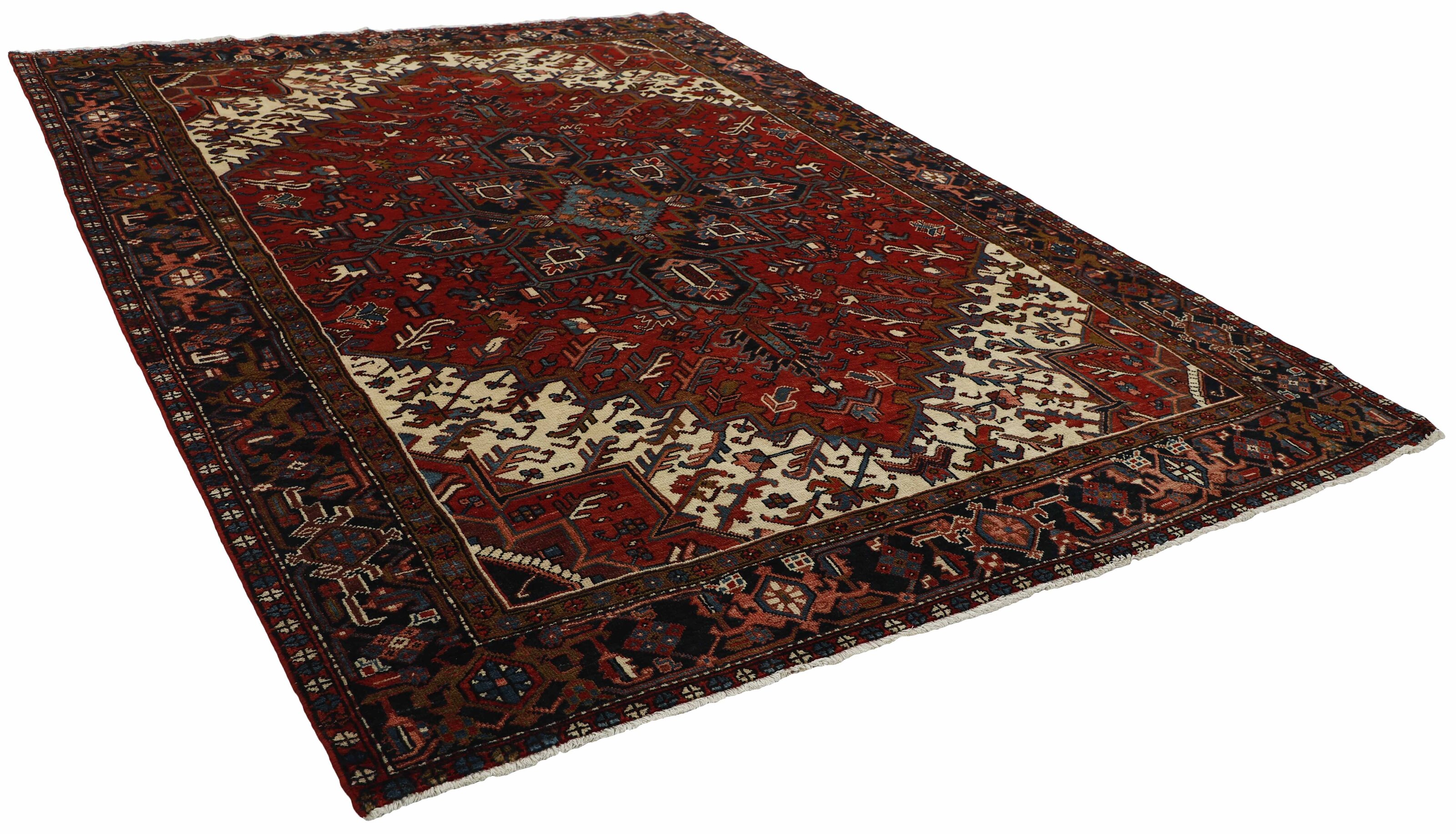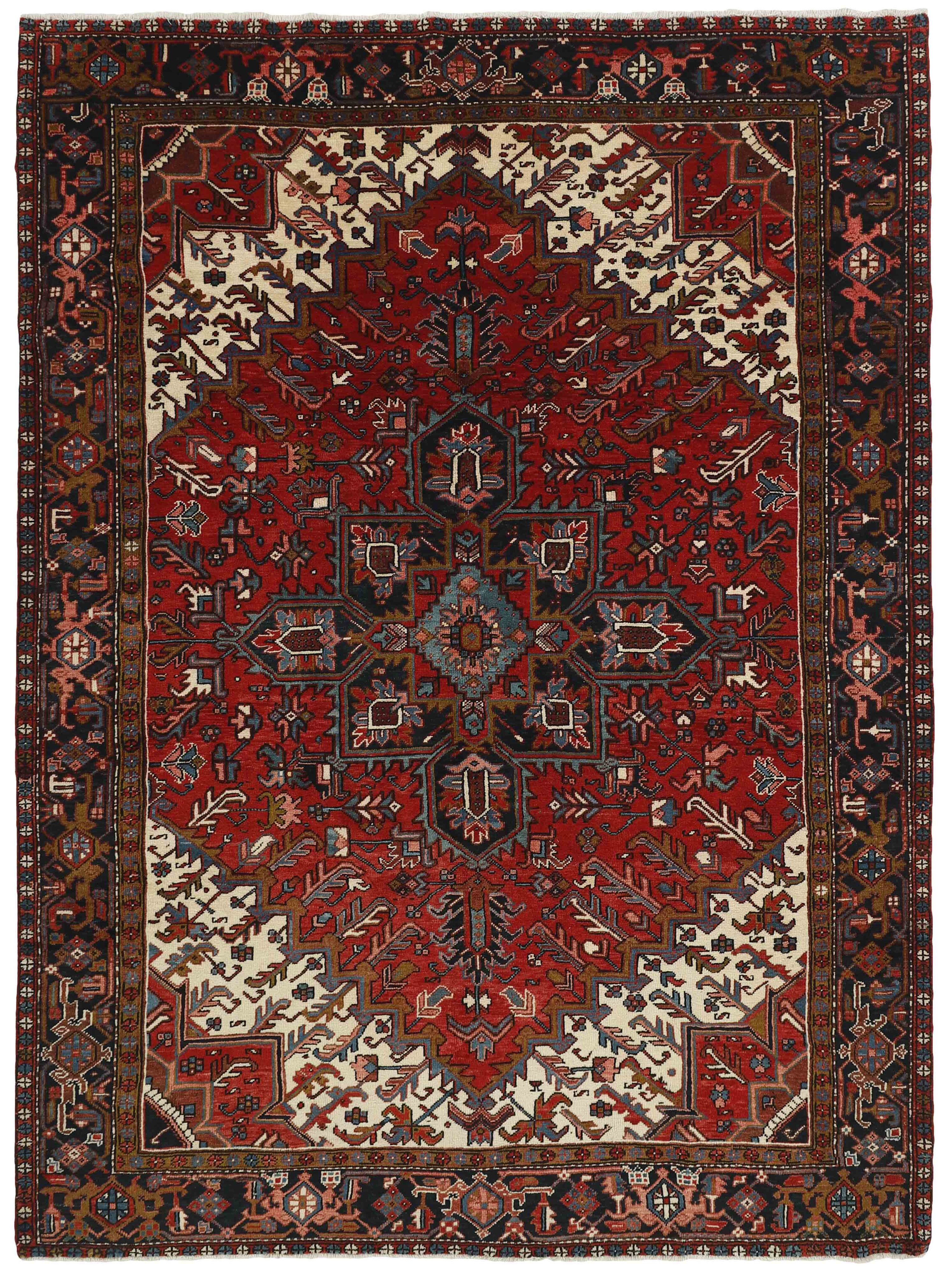 Heriz rugs are Persian rugs from the area of Heris, East Azerbaijan in northwest Iran, northeast of Tabriz. Such rugs are produced in the village of the same name in the slopes of Mount Sabalan. Heriz carpets are durable and hard-wearing and they can last for generations. 19th century examples of such carpets are often found on sale by major auction houses in United States and Europe. Part of the reason for the toughness of Heriz carpets is that Mount Sabalan sits on a major deposit of copper. Traces of copper in the drinking water of sheep produces high quality wool that is far more resilient than wool from other areas. The Heriz Carpet is the only carpet in the world where stories of the Old times are woven. Heriz rug weavers often make them in geometric, bold patterns with a large medallion dominating the field. Such designs are traditional and often woven from memory. Similar rugs from the neighbouring towns and villages of the Heriz region are Afshar, Mehraban, Sarab, Bakhshaish, and Gorevan. The grades of these rugs are primarily based on village name. Serapis, for example, have been considered the finest grade of Heriz since the beginning of the 20th century.