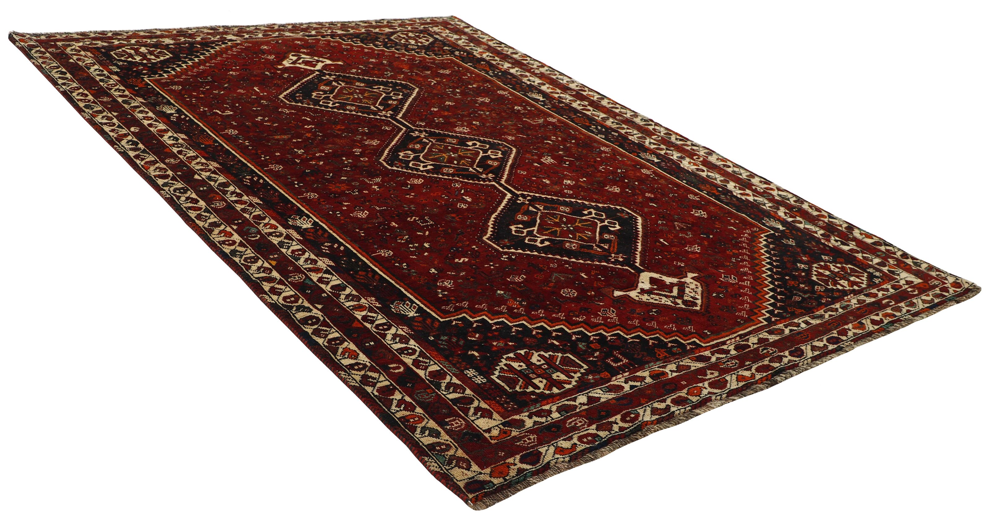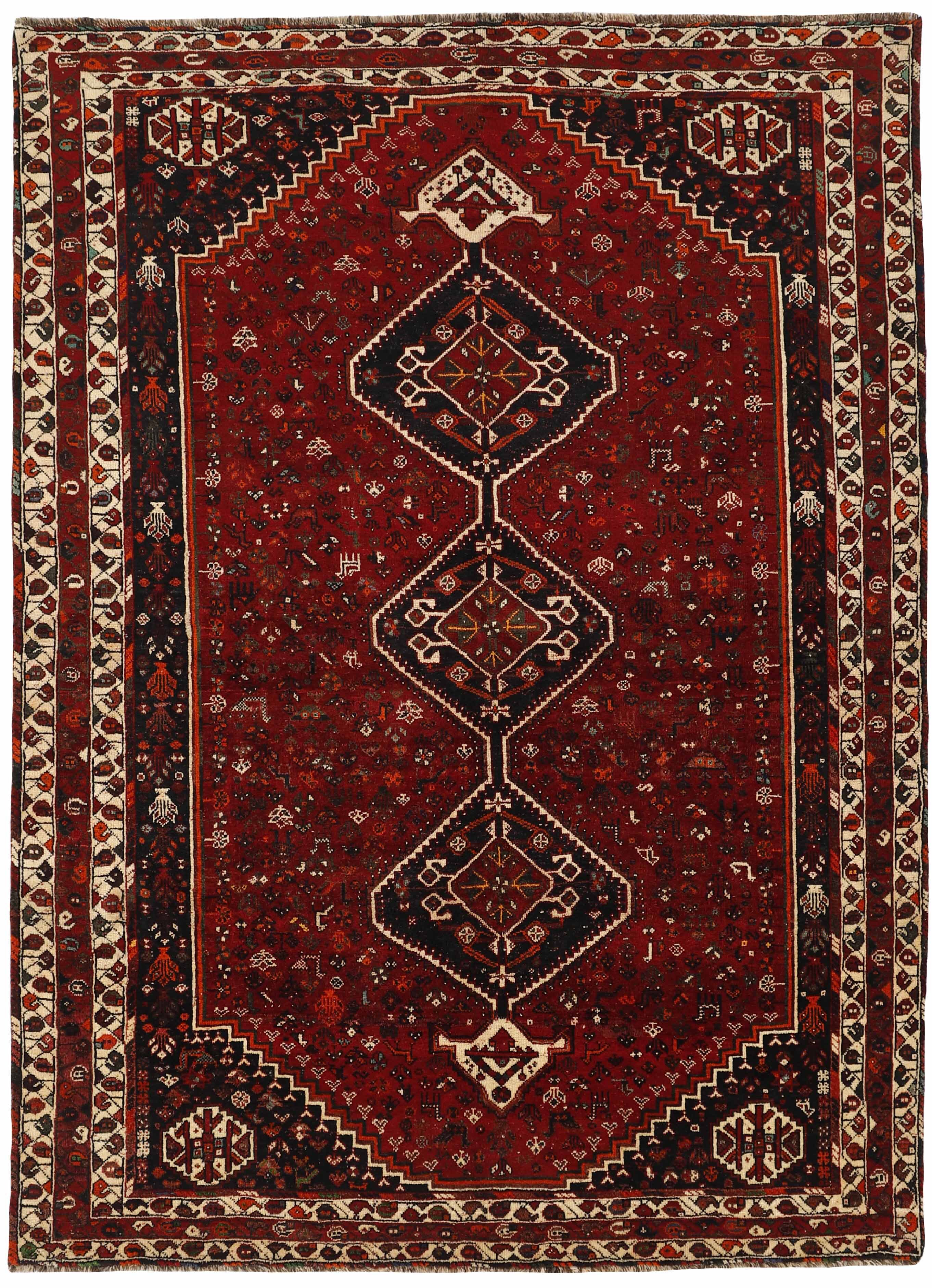 KashghaiItem no.: 1489124 Size: 229 cm x 320 cmThe Kashghai are Iran’s largest and most well known tribe. They speak a Turkish dialect, and are believed to have come from the Caucasus in the 18th century to their current areas, around Shiraz in the Fars Province of southern Iran. Their belligerent attitude has lead to conflicts with changing governments, as well as other tribes in the area. Both their rugs and the women’s clothing clearly show their skills and love of colours. Many subtribes exist, the most important ones being the Bilvedi, the Shishbouki, the Darashuri, and the Kashkuli. The Kashghai knot numerous types of rugs, but a characteristic product can be distinguished by its wool construction, the sturdy ridges on the back, its strong, deep colours (especially the red), as well as by the use of traditional motifs such as Harshang or the crab. The patterns are geometrical, typically with three or five medallions along the centre of the rug or in the middle and corners. The entire field is usually covered in small geometrical motifs. Persepolis motifs can often be found in the rugs. The Kashghai are also famous for their older crafts, such as horse blankets, saddlebags, and rope. The products of other tribes, such as the Kamseh and the Lori, are often mistaken for those of the Kashghai.