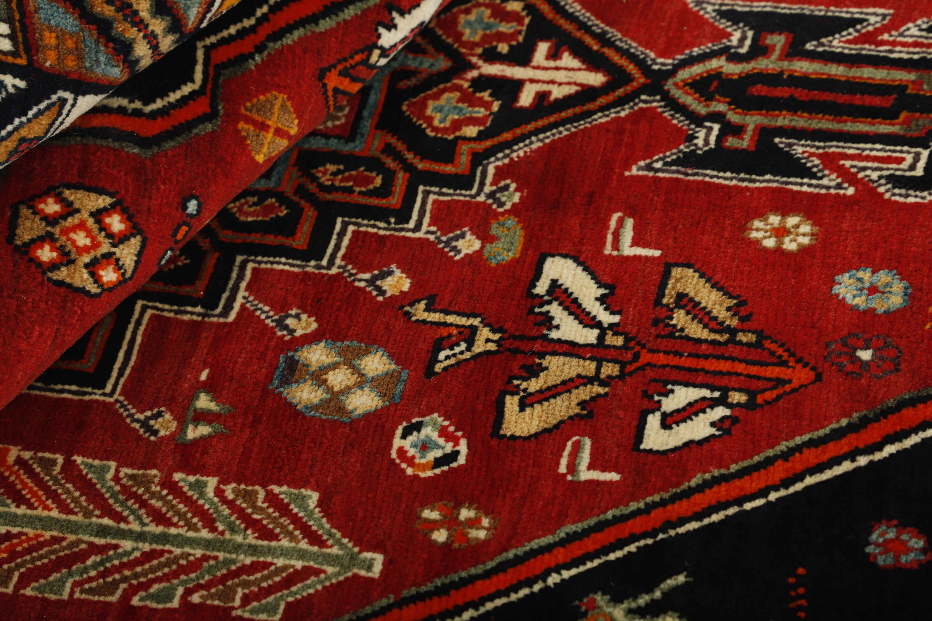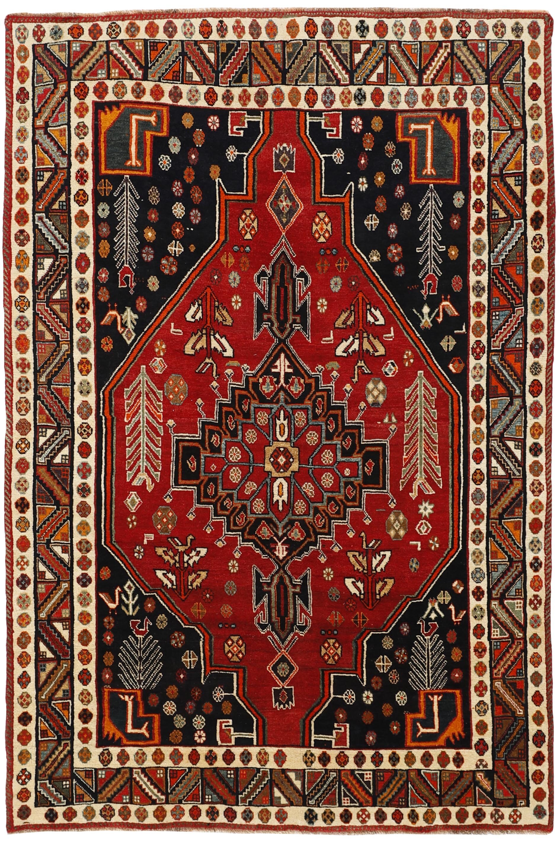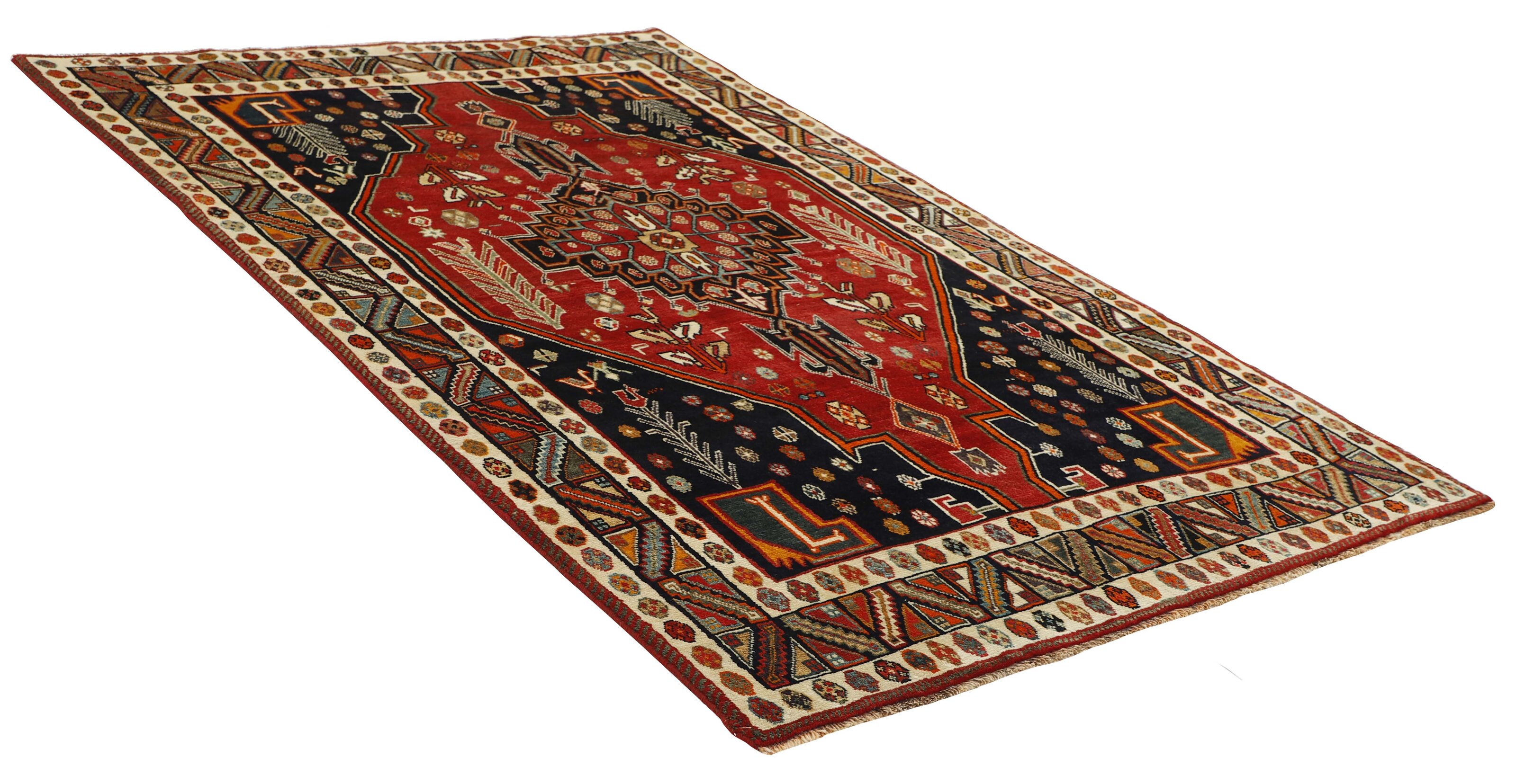 KashghaiItem no.: 1489125 Size: 163 cm x 244 cmThe Kashghai are Iran’s largest and most well known tribe. They speak a Turkish dialect, and are believed to have come from the Caucasus in the 18th century to their current areas, around Shiraz in the Fars Province of southern Iran. Their belligerent attitude has lead to conflicts with changing governments, as well as other tribes in the area. Both their rugs and the women’s clothing clearly show their skills and love of colours. Many subtribes exist, the most important ones being the Bilvedi, the Shishbouki, the Darashuri, and the Kashkuli. The Kashghai knot numerous types of rugs, but a characteristic product can be distinguished by its wool construction, the sturdy ridges on the back, its strong, deep colours (especially the red), as well as by the use of traditional motifs such as Harshang or the crab. The patterns are geometrical, typically with three or five medallions along the centre of the rug or in the middle and corners. The entire field is usually covered in small geometrical motifs. Persepolis motifs can often be found in the rugs. The Kashghai are also famous for their older crafts, such as horse blankets, saddlebags, and rope. The products of other tribes, such as the Kamseh and the Lori, are often mistaken for those of the Kashghai.