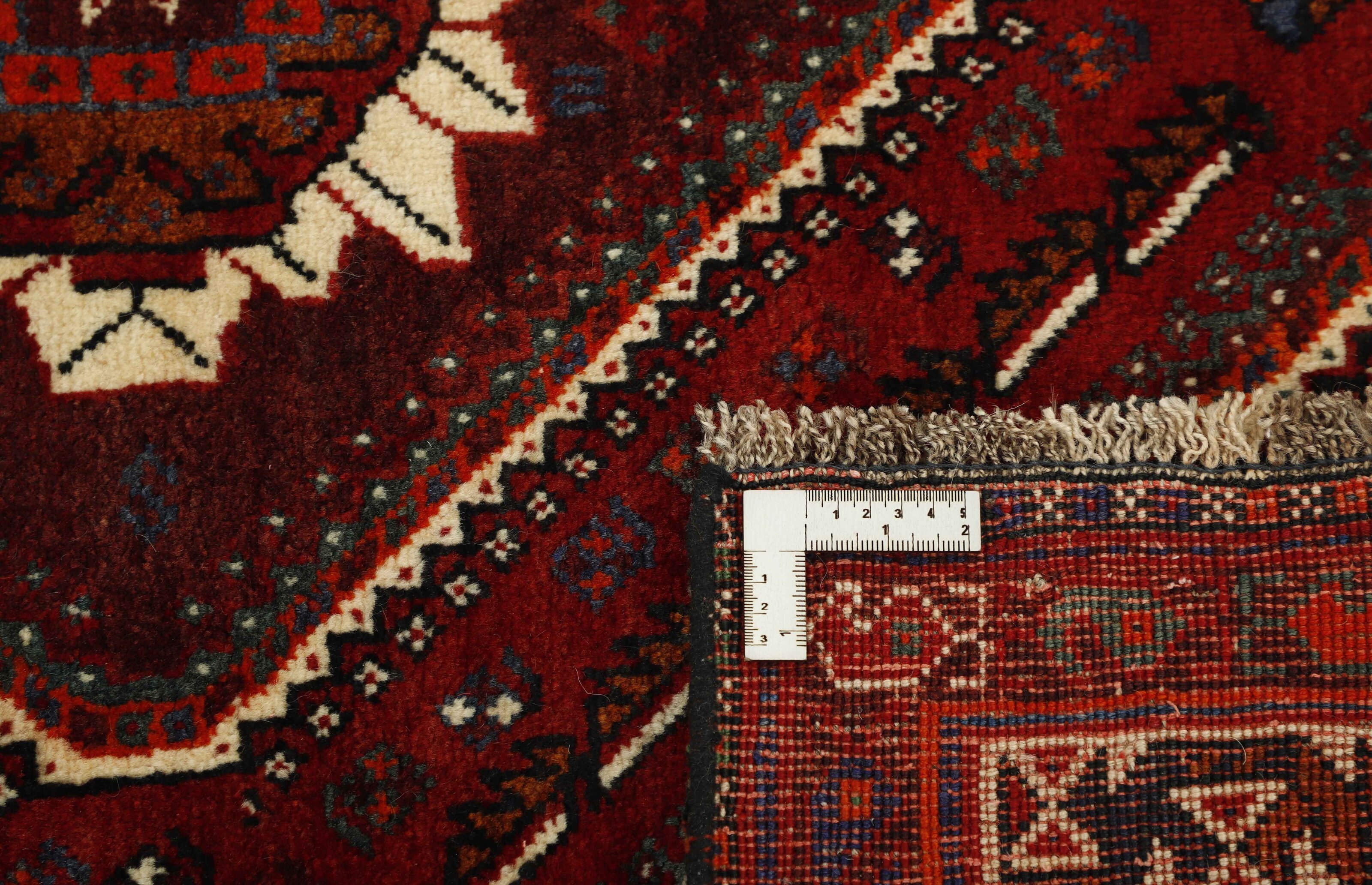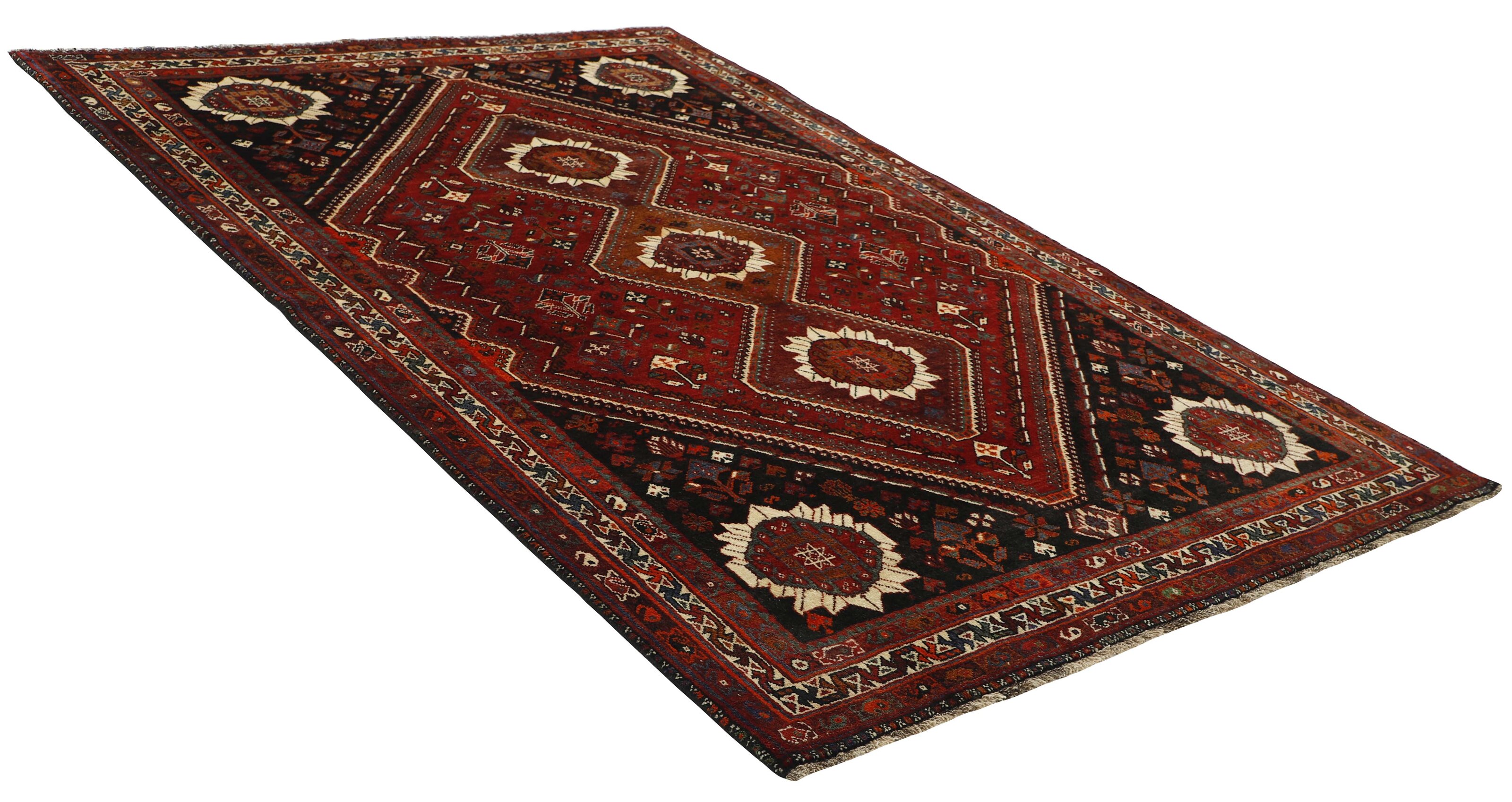 KashghaiItem no.: 1489127 Size: 186 cm x 277 cmThe Kashghai are Iran’s largest and most well known tribe. They speak a Turkish dialect, and are believed to have come from the Caucasus in the 18th century to their current areas, around Shiraz in the Fars Province of southern Iran. Their belligerent attitude has lead to conflicts with changing governments, as well as other tribes in the area. Both their rugs and the women’s clothing clearly show their skills and love of colours. Many subtribes exist, the most important ones being the Bilvedi, the Shishbouki, the Darashuri, and the Kashkuli. The Kashghai knot numerous types of rugs, but a characteristic product can be distinguished by its wool construction, the sturdy ridges on the back, its strong, deep colours (especially the red), as well as by the use of traditional motifs such as Harshang or the crab. The patterns are geometrical, typically with three or five medallions along the centre of the rug or in the middle and corners. The entire field is usually covered in small geometrical motifs. Persepolis motifs can often be found in the rugs. The Kashghai are also famous for their older crafts, such as horse blankets, saddlebags, and rope. The products of other tribes, such as the Kamseh and the Lori, are often mistaken for those of the Kashghai.