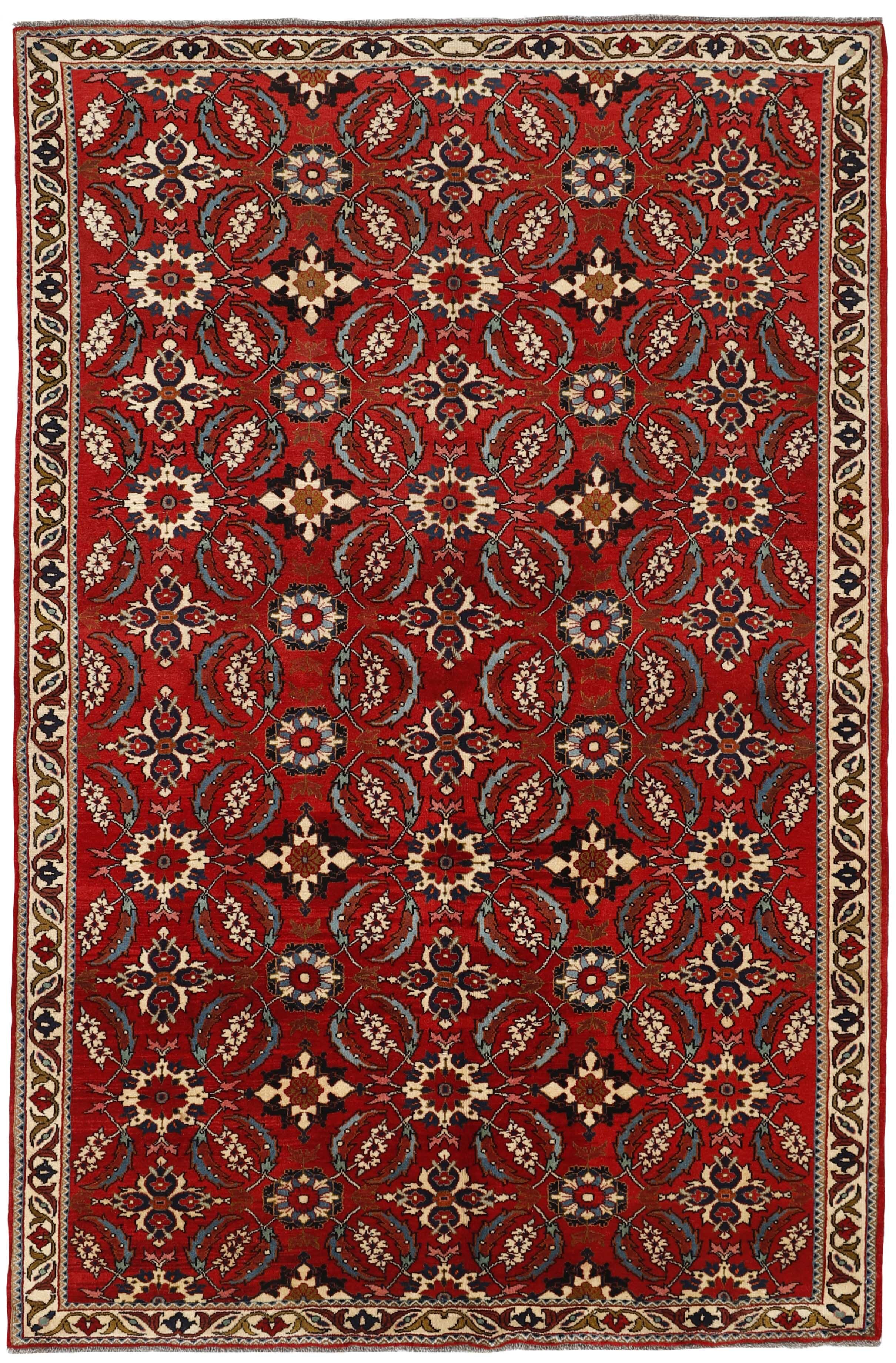 KashghaiItem no.: 1489130 Size: 217 cm x 317 cmThe Kashghai are Iran’s largest and most well known tribe. They speak a Turkish dialect, and are believed to have come from the Caucasus in the 18th century to their current areas, around Shiraz in the Fars Province of southern Iran. Their belligerent attitude has lead to conflicts with changing governments, as well as other tribes in the area. Both their rugs and the women’s clothing clearly show their skills and love of colours. Many subtribes exist, the most important ones being the Bilvedi, the Shishbouki, the Darashuri, and the Kashkuli. The Kashghai knot numerous types of rugs, but a characteristic product can be distinguished by its wool construction, the sturdy ridges on the back, its strong, deep colours (especially the red), as well as by the use of traditional motifs such as Harshang or the crab. The patterns are geometrical, typically with three or five medallions along the centre of the rug or in the middle and corners. The entire field is usually covered in small geometrical motifs. Persepolis motifs can often be found in the rugs. The Kashghai are also famous for their older crafts, such as horse blankets, saddlebags, and rope. The products of other tribes, such as the Kamseh and the Lori, are often mistaken for those of the Kashghai.