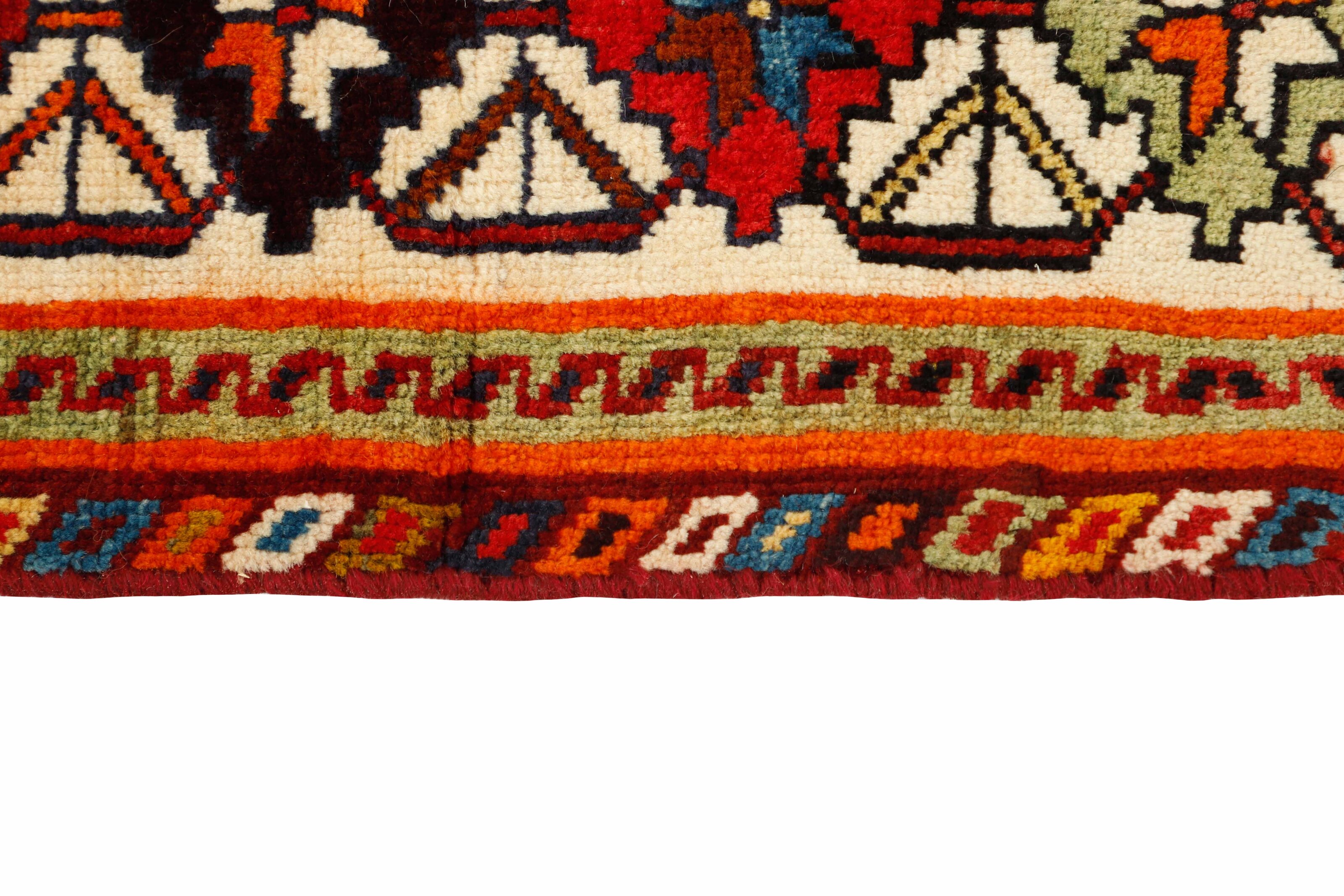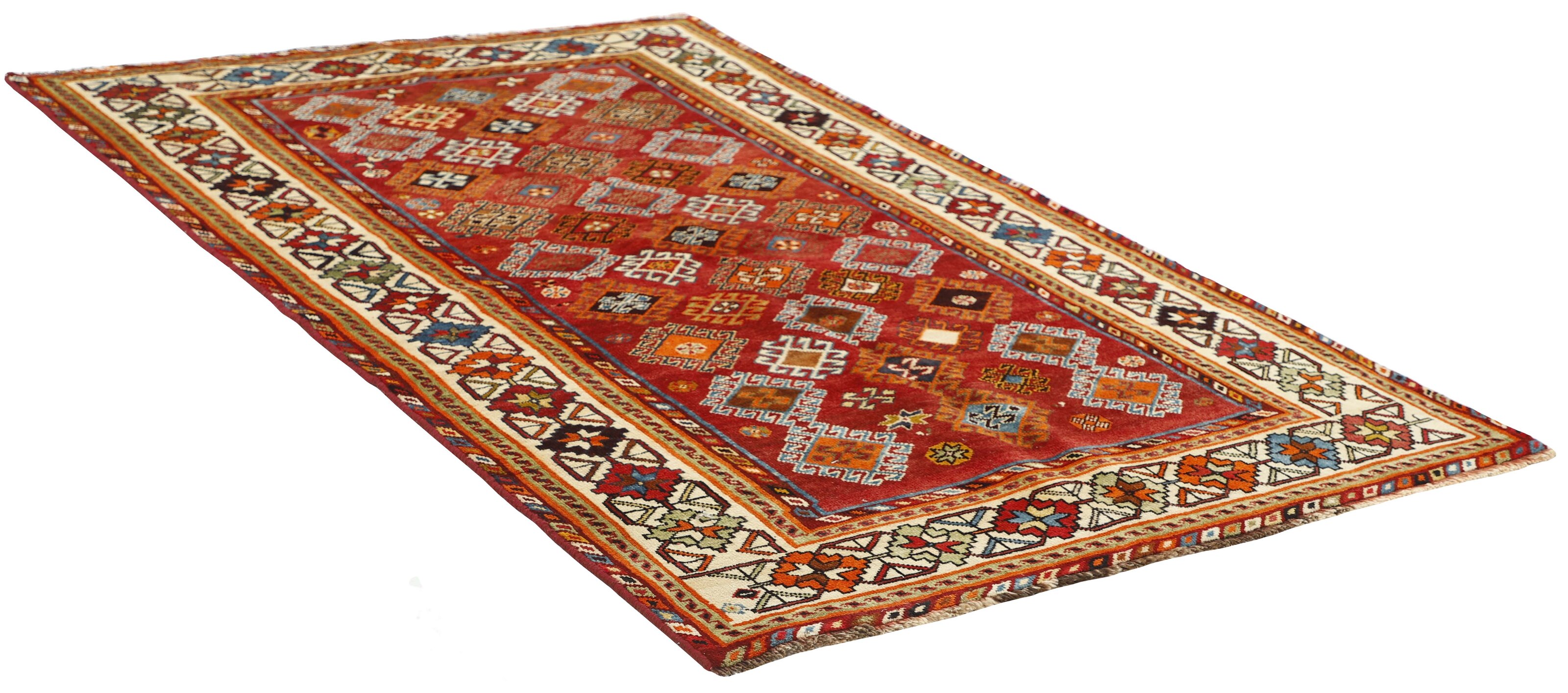 KashghaiItem no.: 1489134 Size: 143 cm x 230 cmThe Kashghai are Iran’s largest and most well known tribe. They speak a Turkish dialect, and are believed to have come from the Caucasus in the 18th century to their current areas, around Shiraz in the Fars Province of southern Iran. Their belligerent attitude has lead to conflicts with changing governments, as well as other tribes in the area. Both their rugs and the women’s clothing clearly show their skills and love of colours. Many subtribes exist, the most important ones being the Bilvedi, the Shishbouki, the Darashuri, and the Kashkuli. The Kashghai knot numerous types of rugs, but a characteristic product can be distinguished by its wool construction, the sturdy ridges on the back, its strong, deep colours (especially the red), as well as by the use of traditional motifs such as Harshang or the crab. The patterns are geometrical, typically with three or five medallions along the centre of the rug or in the middle and corners. The entire field is usually covered in small geometrical motifs. Persepolis motifs can often be found in the rugs. The Kashghai are also famous for their older crafts, such as horse blankets, saddlebags, and rope. The products of other tribes, such as the Kamseh and the Lori, are often mistaken for those of the Kashghai.