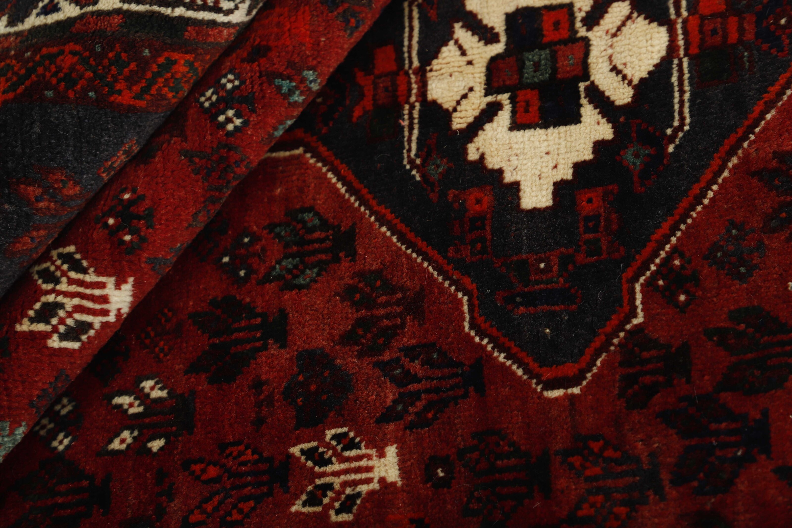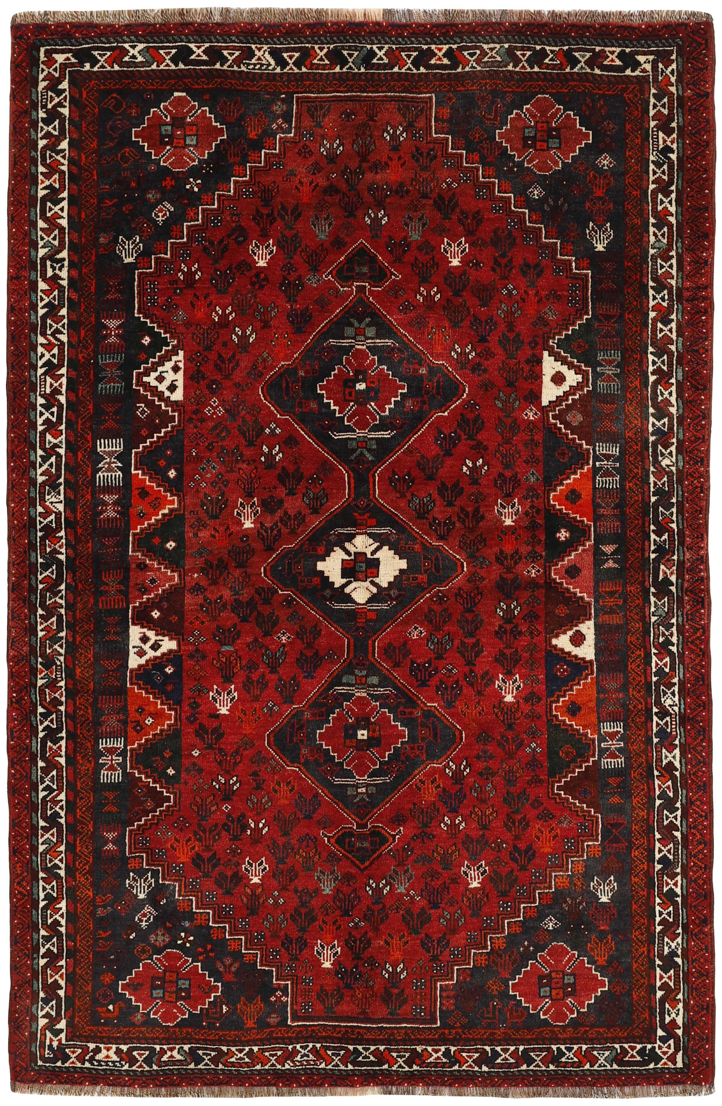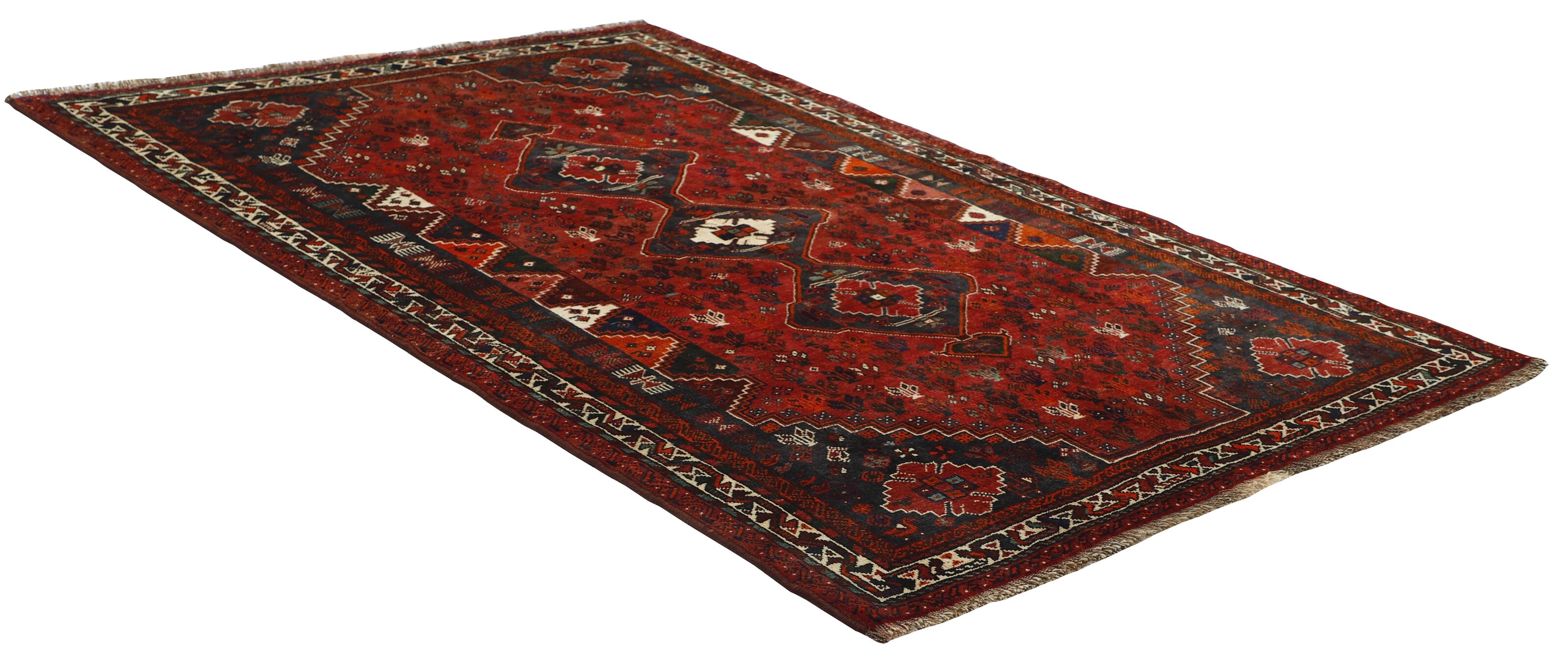 KashghaiItem no.: 1489136 Size: 173 cm x 263 cmThe Kashghai are Iran’s largest and most well known tribe. They speak a Turkish dialect, and are believed to have come from the Caucasus in the 18th century to their current areas, around Shiraz in the Fars Province of southern Iran. Their belligerent attitude has lead to conflicts with changing governments, as well as other tribes in the area. Both their rugs and the women’s clothing clearly show their skills and love of colours. Many subtribes exist, the most important ones being the Bilvedi, the Shishbouki, the Darashuri, and the Kashkuli. The Kashghai knot numerous types of rugs, but a characteristic product can be distinguished by its wool construction, the sturdy ridges on the back, its strong, deep colours (especially the red), as well as by the use of traditional motifs such as Harshang or the crab. The patterns are geometrical, typically with three or five medallions along the centre of the rug or in the middle and corners. The entire field is usually covered in small geometrical motifs. Persepolis motifs can often be found in the rugs. The Kashghai are also famous for their older crafts, such as horse blankets, saddlebags, and rope. The products of other tribes, such as the Kamseh and the Lori, are often mistaken for those of the Kashghai.