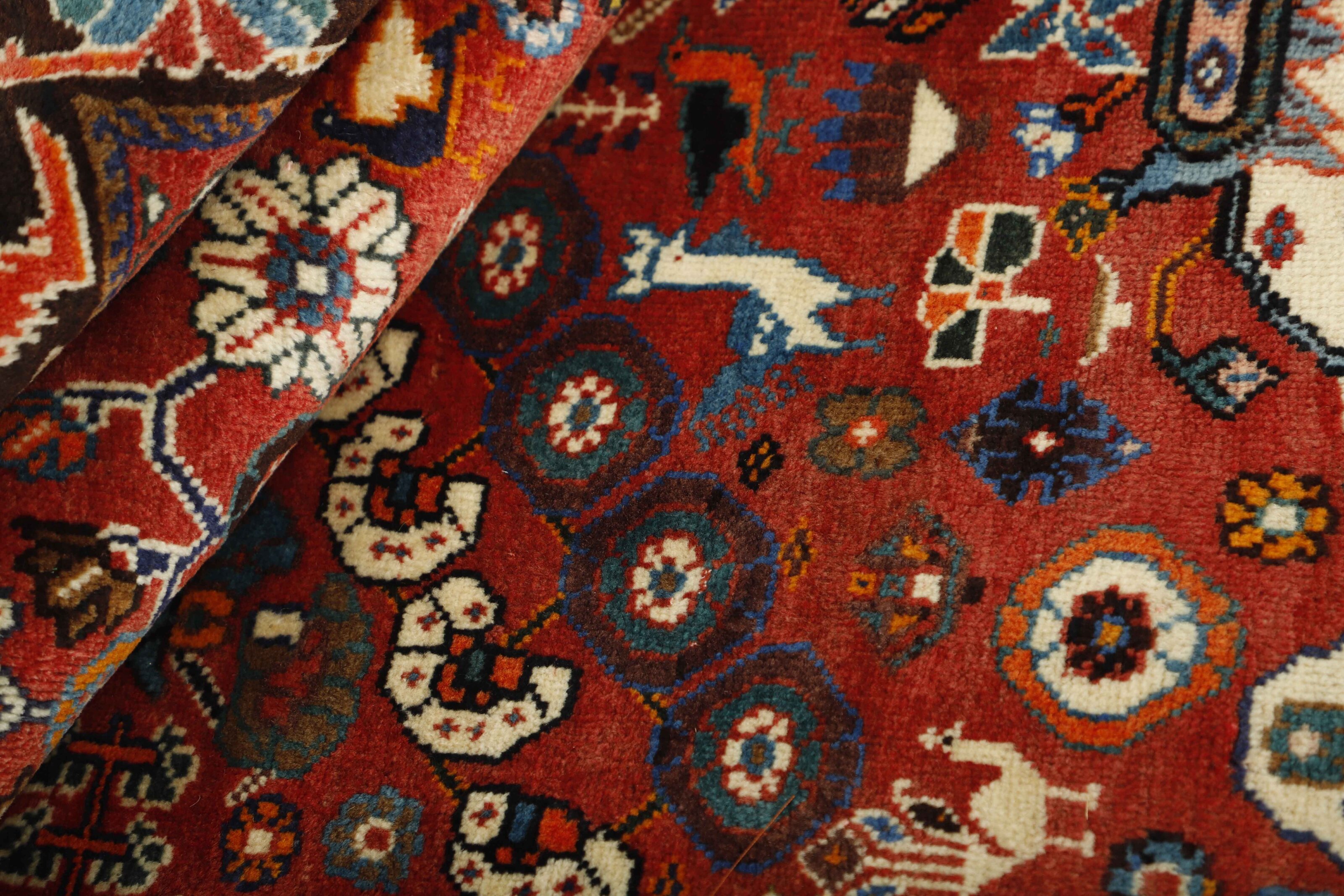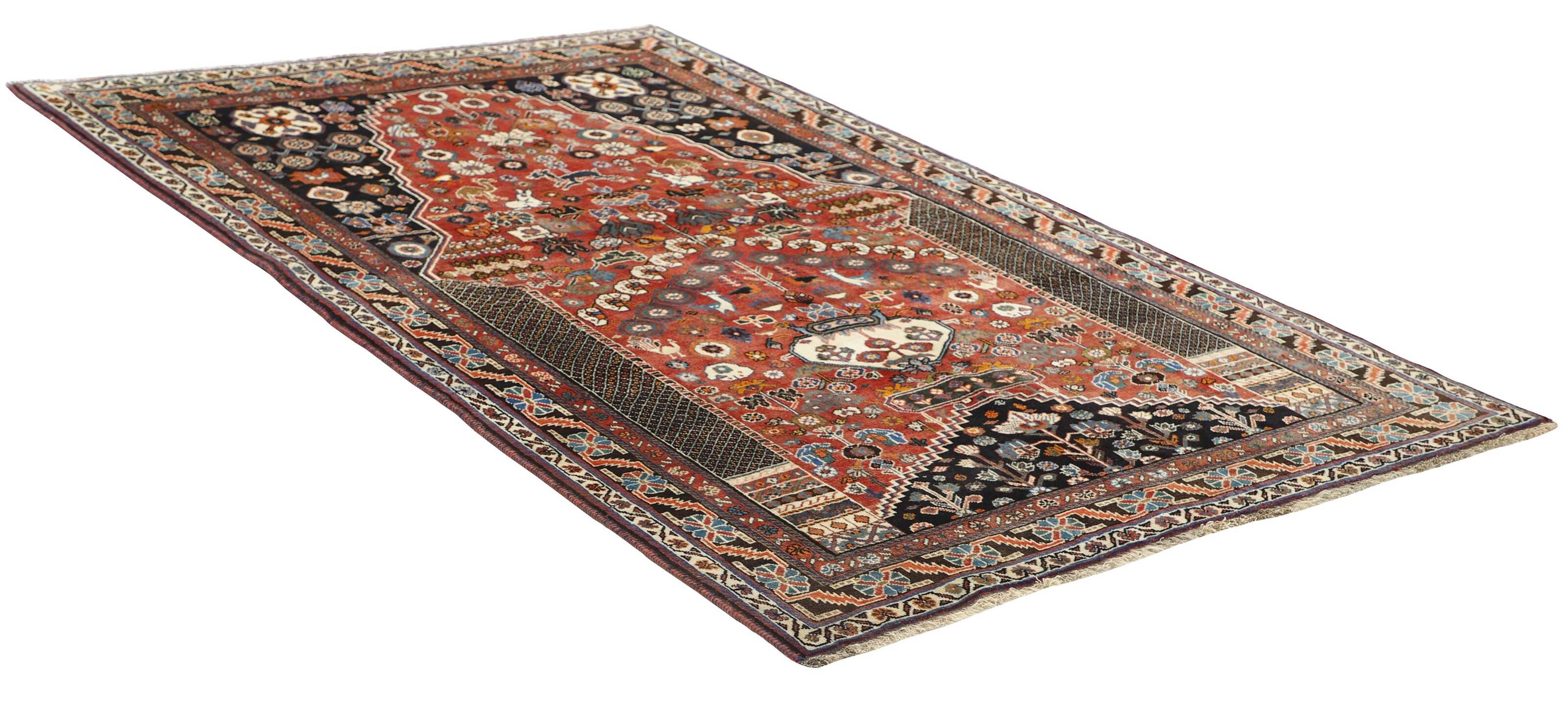 KashghaiItem no.: 1489137 Size: 154 cm x 243 cmThe Kashghai are Iran’s largest and most well known tribe. They speak a Turkish dialect, and are believed to have come from the Caucasus in the 18th century to their current areas, around Shiraz in the Fars Province of southern Iran. Their belligerent attitude has lead to conflicts with changing governments, as well as other tribes in the area. Both their rugs and the women’s clothing clearly show their skills and love of colours. Many subtribes exist, the most important ones being the Bilvedi, the Shishbouki, the Darashuri, and the Kashkuli. The Kashghai knot numerous types of rugs, but a characteristic product can be distinguished by its wool construction, the sturdy ridges on the back, its strong, deep colours (especially the red), as well as by the use of traditional motifs such as Harshang or the crab. The patterns are geometrical, typically with three or five medallions along the centre of the rug or in the middle and corners. The entire field is usually covered in small geometrical motifs. Persepolis motifs can often be found in the rugs. The Kashghai are also famous for their older crafts, such as horse blankets, saddlebags, and rope. The products of other tribes, such as the Kamseh and the Lori, are often mistaken for those of the Kashghai.