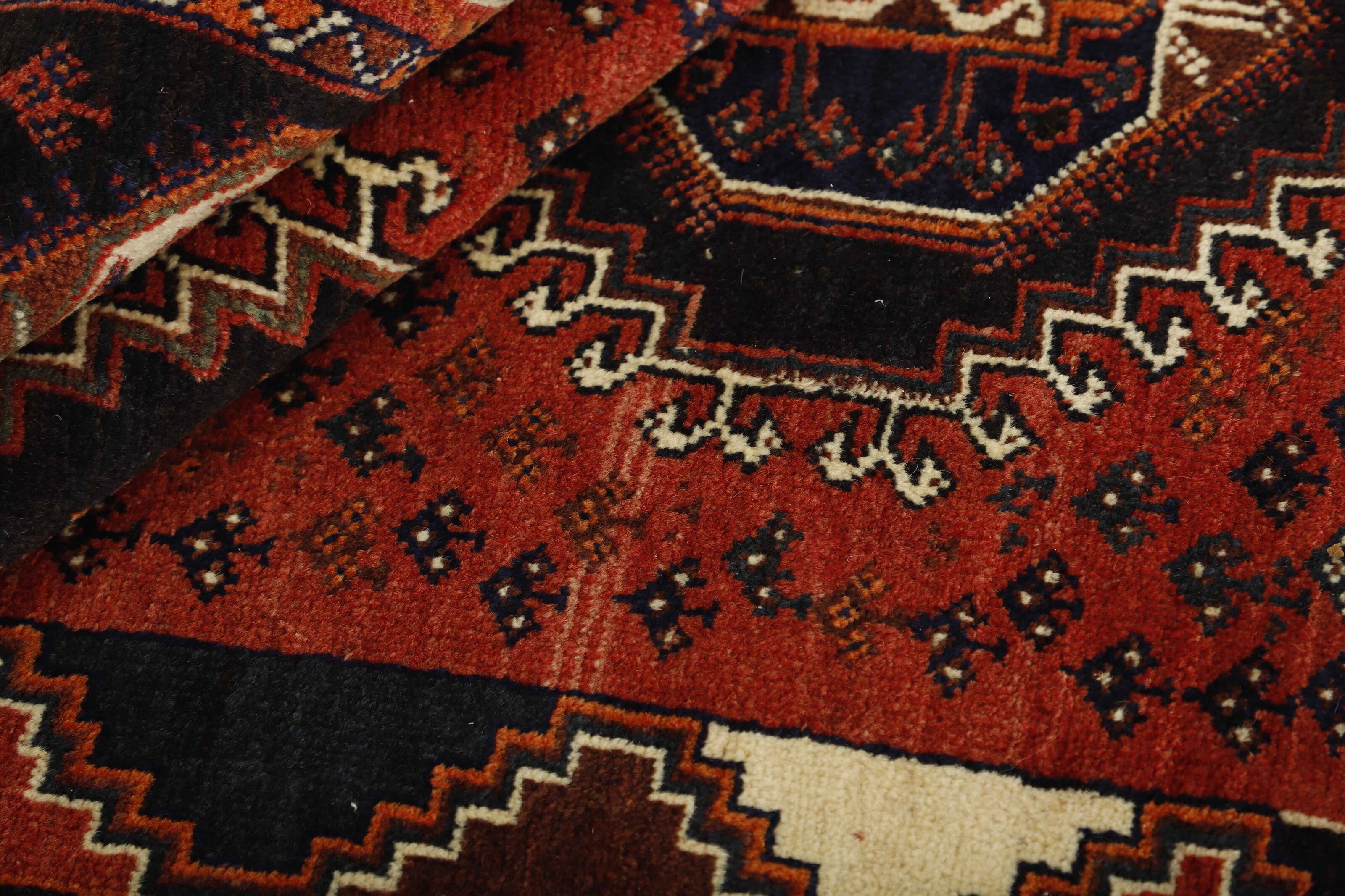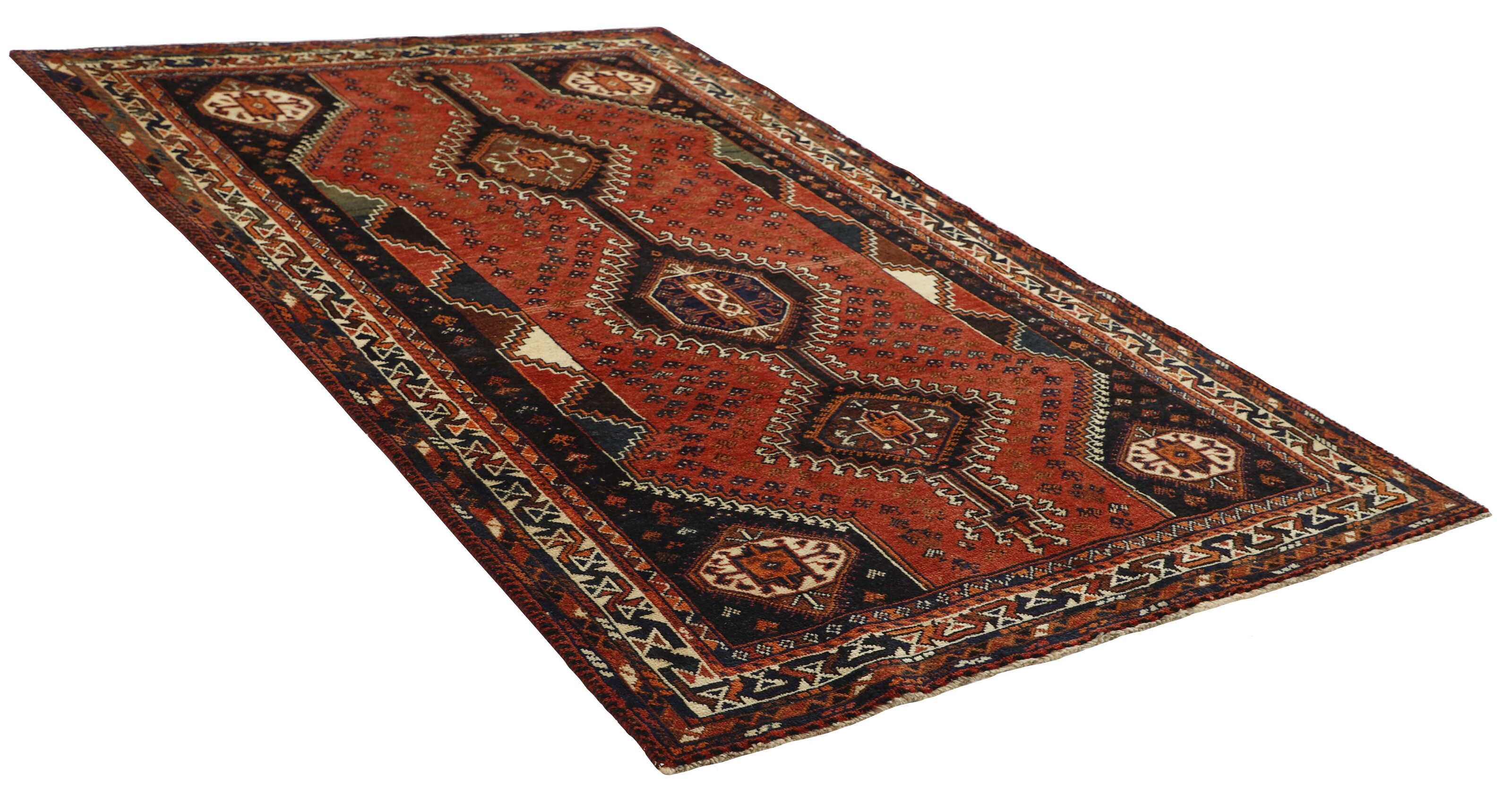 KashghaiItem no.: 1489144 Size: 164 cm x 264 cmThe Kashghai are Iran’s largest and most well known tribe. They speak a Turkish dialect, and are believed to have come from the Caucasus in the 18th century to their current areas, around Shiraz in the Fars Province of southern Iran. Their belligerent attitude has lead to conflicts with changing governments, as well as other tribes in the area. Both their rugs and the women’s clothing clearly show their skills and love of colours. Many subtribes exist, the most important ones being the Bilvedi, the Shishbouki, the Darashuri, and the Kashkuli. The Kashghai knot numerous types of rugs, but a characteristic product can be distinguished by its wool construction, the sturdy ridges on the back, its strong, deep colours (especially the red), as well as by the use of traditional motifs such as Harshang or the crab. The patterns are geometrical, typically with three or five medallions along the centre of the rug or in the middle and corners. The entire field is usually covered in small geometrical motifs. Persepolis motifs can often be found in the rugs. The Kashghai are also famous for their older crafts, such as horse blankets, saddlebags, and rope. The products of other tribes, such as the Kamseh and the Lori, are often mistaken for those of the Kashghai.