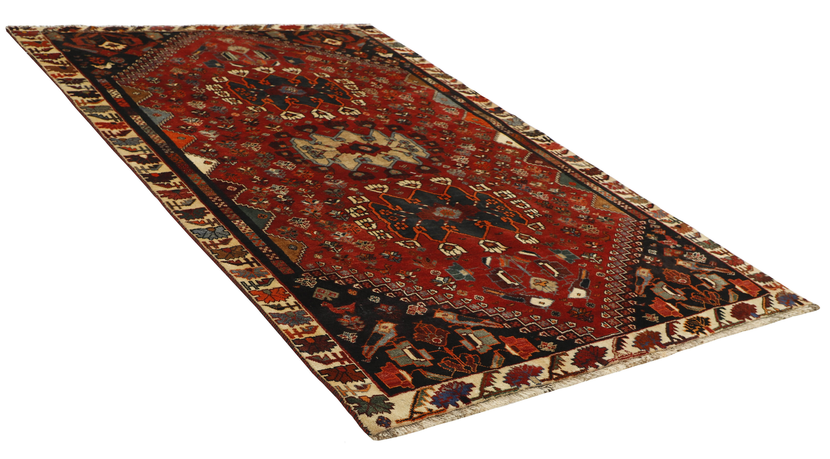 KashghaiItem no.: 1489145 Size: 168 cm x 270 cmThe Kashghai are Iran’s largest and most well known tribe. They speak a Turkish dialect, and are believed to have come from the Caucasus in the 18th century to their current areas, around Shiraz in the Fars Province of southern Iran. Their belligerent attitude has lead to conflicts with changing governments, as well as other tribes in the area. Both their rugs and the women’s clothing clearly show their skills and love of colours. Many subtribes exist, the most important ones being the Bilvedi, the Shishbouki, the Darashuri, and the Kashkuli. The Kashghai knot numerous types of rugs, but a characteristic product can be distinguished by its wool construction, the sturdy ridges on the back, its strong, deep colours (especially the red), as well as by the use of traditional motifs such as Harshang or the crab. The patterns are geometrical, typically with three or five medallions along the centre of the rug or in the middle and corners. The entire field is usually covered in small geometrical motifs. Persepolis motifs can often be found in the rugs. The Kashghai are also famous for their older crafts, such as horse blankets, saddlebags, and rope. The products of other tribes, such as the Kamseh and the Lori, are often mistaken for those of the Kashghai.