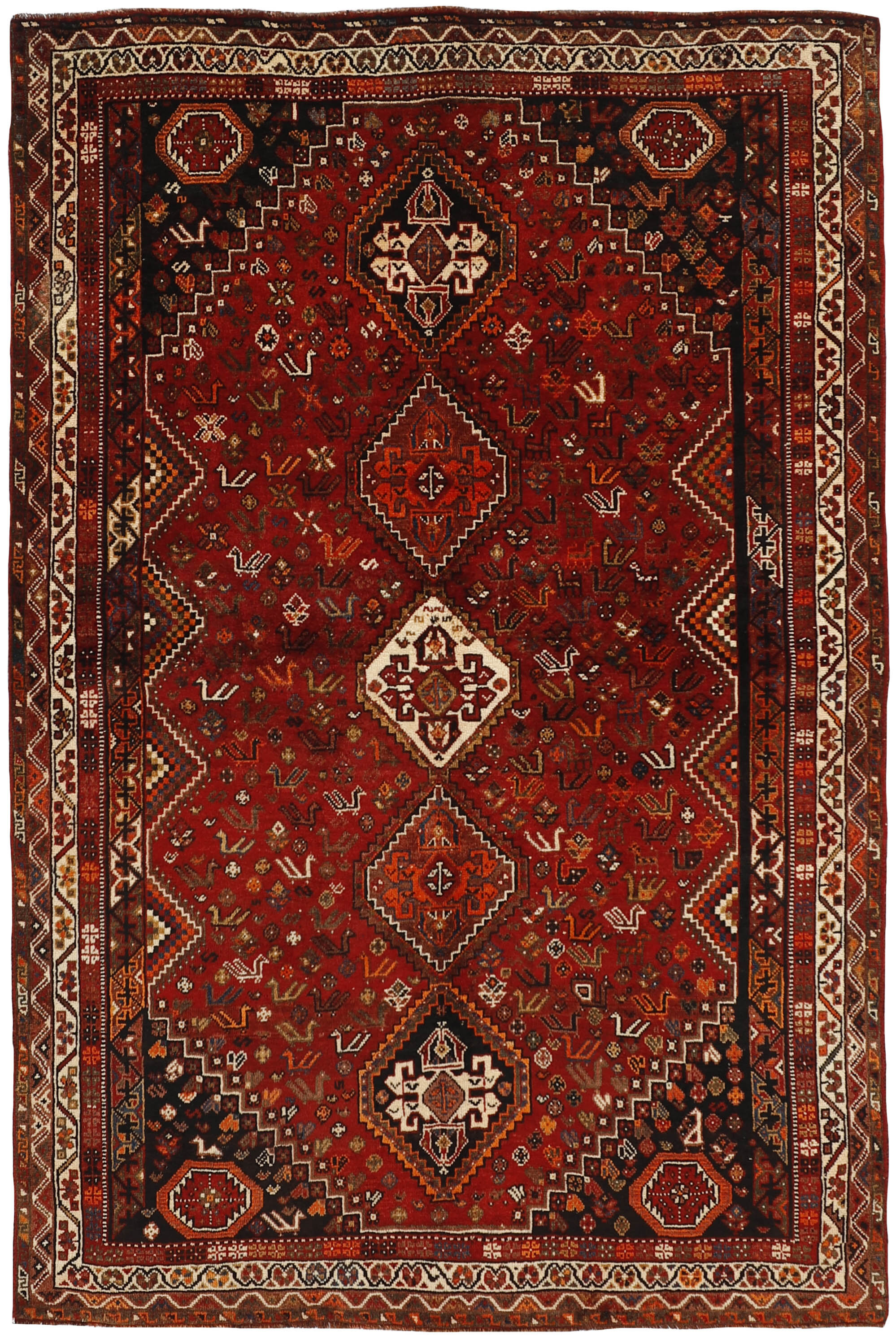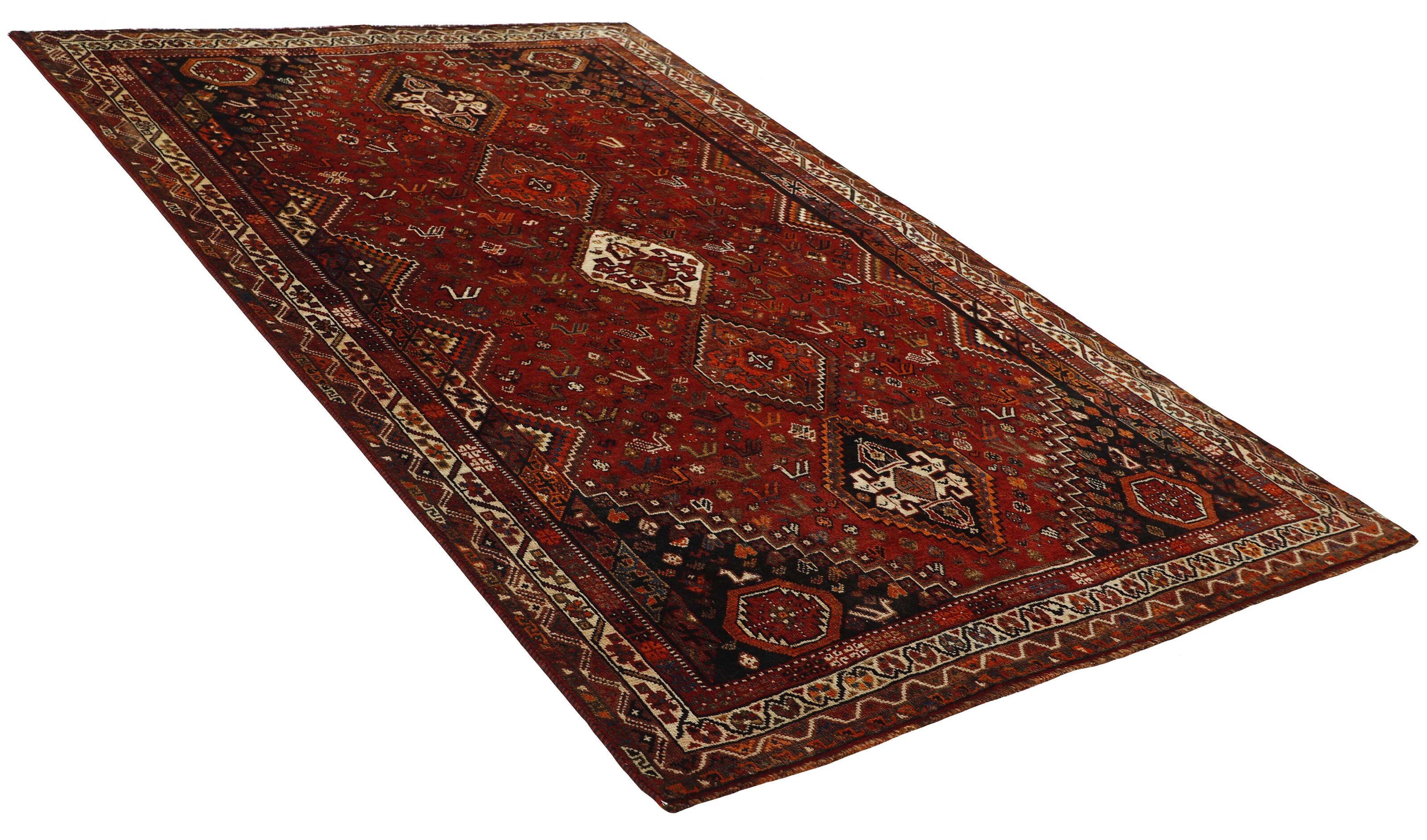 KashghaiItem no.: 1489147 Size: 170 cm x 258 cmThe Kashghai are Iran’s largest and most well known tribe. They speak a Turkish dialect, and are believed to have come from the Caucasus in the 18th century to their current areas, around Shiraz in the Fars Province of southern Iran. Their belligerent attitude has lead to conflicts with changing governments, as well as other tribes in the area. Both their rugs and the women’s clothing clearly show their skills and love of colours. Many subtribes exist, the most important ones being the Bilvedi, the Shishbouki, the Darashuri, and the Kashkuli. The Kashghai knot numerous types of rugs, but a characteristic product can be distinguished by its wool construction, the sturdy ridges on the back, its strong, deep colours (especially the red), as well as by the use of traditional motifs such as Harshang or the crab. The patterns are geometrical, typically with three or five medallions along the centre of the rug or in the middle and corners. The entire field is usually covered in small geometrical motifs. Persepolis motifs can often be found in the rugs. The Kashghai are also famous for their older crafts, such as horse blankets, saddlebags, and rope. The products of other tribes, such as the Kamseh and the Lori, are often mistaken for those of the Kashghai.