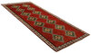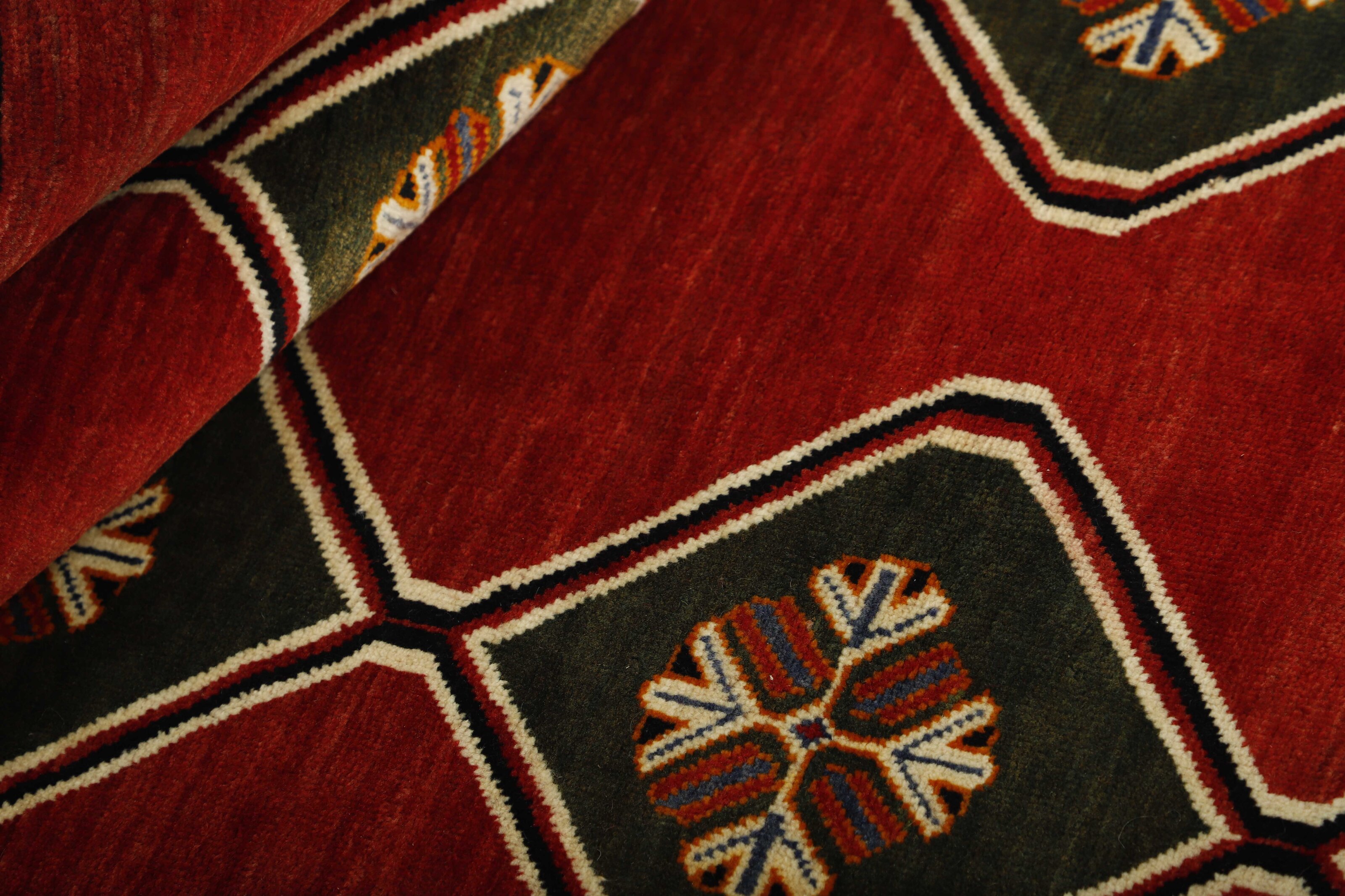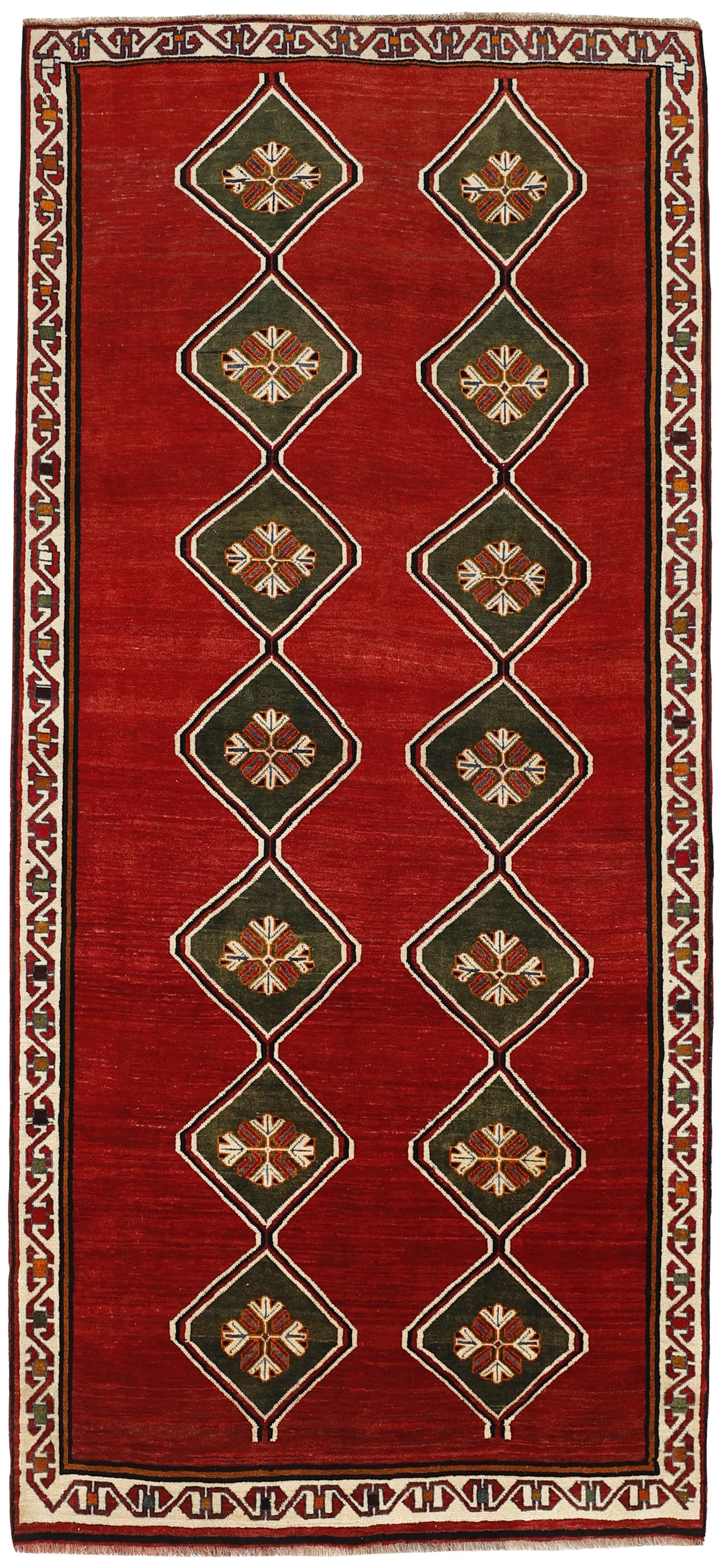 KashghaiItem no.: 1491066 Size: 128 cm x 282 cmThe Kashghai are Iran’s largest and most well known tribe. They speak a Turkish dialect, and are believed to have come from the Caucasus in the 18th century to their current areas, around Shiraz in the Fars Province of southern Iran. Their belligerent attitude has lead to conflicts with changing governments, as well as other tribes in the area. Both their rugs and the women’s clothing clearly show their skills and love of colours. Many subtribes exist, the most important ones being the Bilvedi, the Shishbouki, the Darashuri, and the Kashkuli. The Kashghai knot numerous types of rugs, but a characteristic product can be distinguished by its wool construction, the sturdy ridges on the back, its strong, deep colours (especially the red), as well as by the use of traditional motifs such as Harshang or the crab. The patterns are geometrical, typically with three or five medallions along the centre of the rug or in the middle and corners. The entire field is usually covered in small geometrical motifs. Persepolis motifs can often be found in the rugs. The Kashghai are also famous for their older crafts, such as horse blankets, saddlebags, and rope. The products of other tribes, such as the Kamseh and the Lori, are often mistaken for those of the Kashghai.