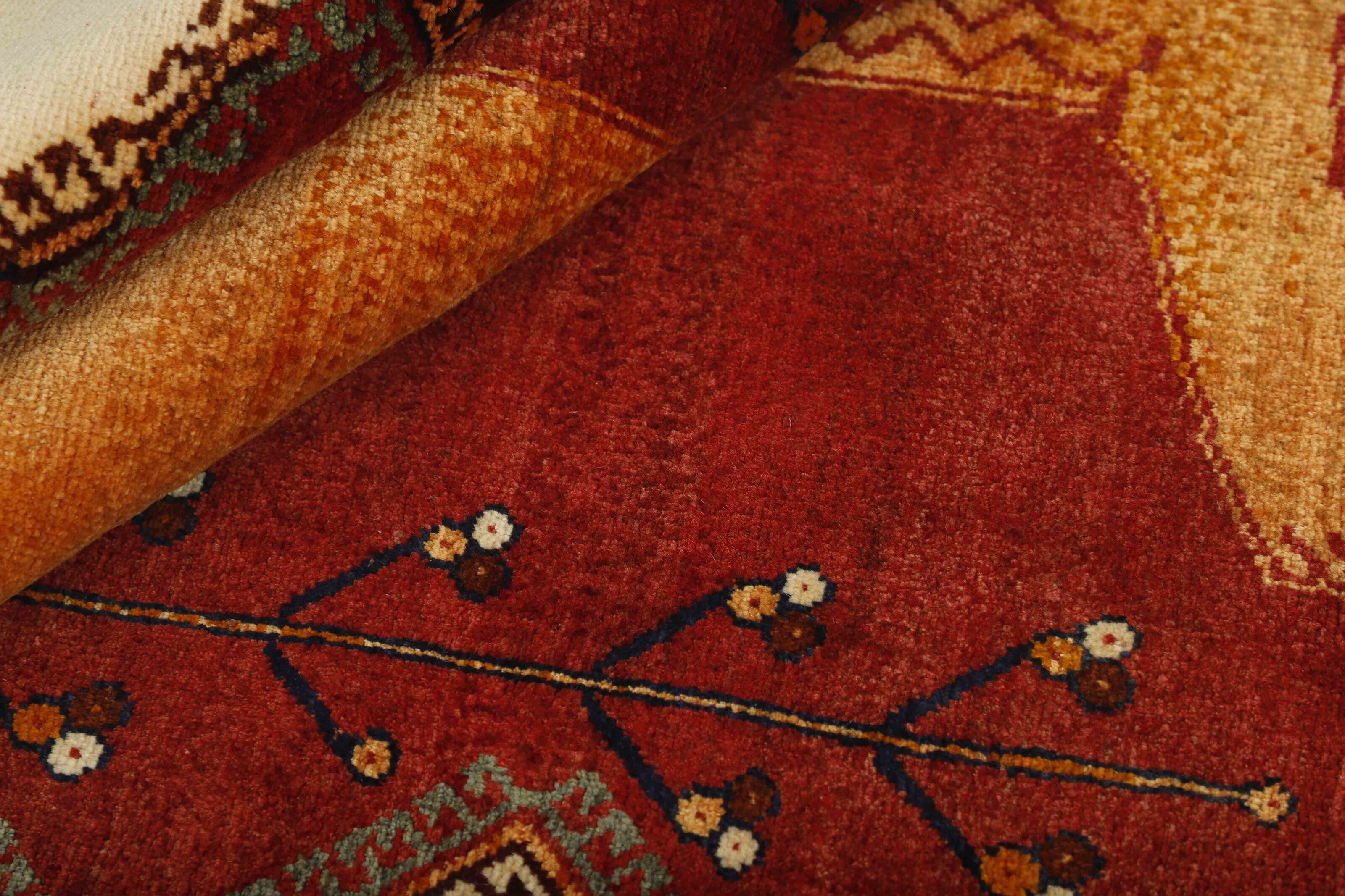 Kashghai Old FiguralItem no.: 1460308 Size: 121 cm x 193 cmThe Kashghai are Iran’s largest and most well known tribe. They speak a Turkish dialect, and are believed to have come from the Caucasus in the 18th century to their current areas, around Shiraz in the Fars Province of southern Iran. Their belligerent attitude has lead to conflicts with changing governments, as well as other tribes in the area. Both their rugs and the women’s clothing clearly show their skills and love of colours. Many subtribes exist, the most important ones being the Bilvedi, the Shishbouki, the Darashuri, and the Kashkuli. The Kashghai knot numerous types of rugs, but a characteristic product can be distinguished by its wool construction, the sturdy ridges on the back, its strong, deep colours (especially the red), as well as by the use of traditional motifs such as Harshang or the crab. The patterns are geometrical, typically with three or five medallions along the centre of the rug or in the middle and corners. The entire field is usually covered in small geometrical motifs. Persepolis motifs can often be found in the rugs. The Kashghai are also famous for their older crafts, such as horse blankets, saddlebags, and rope. The products of other tribes, such as the Kamseh and the Lori, are often mistaken for those of the Kashghai.