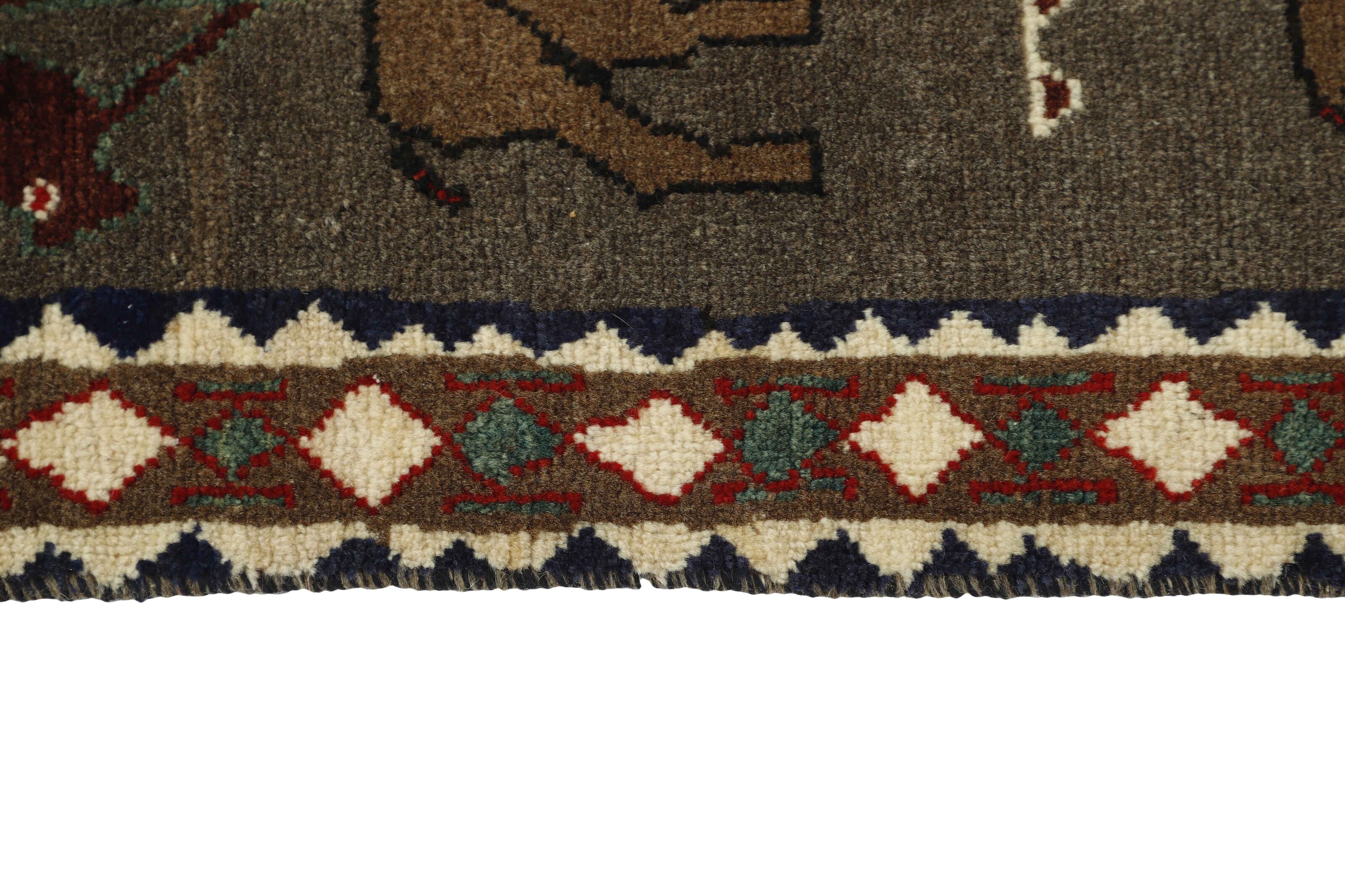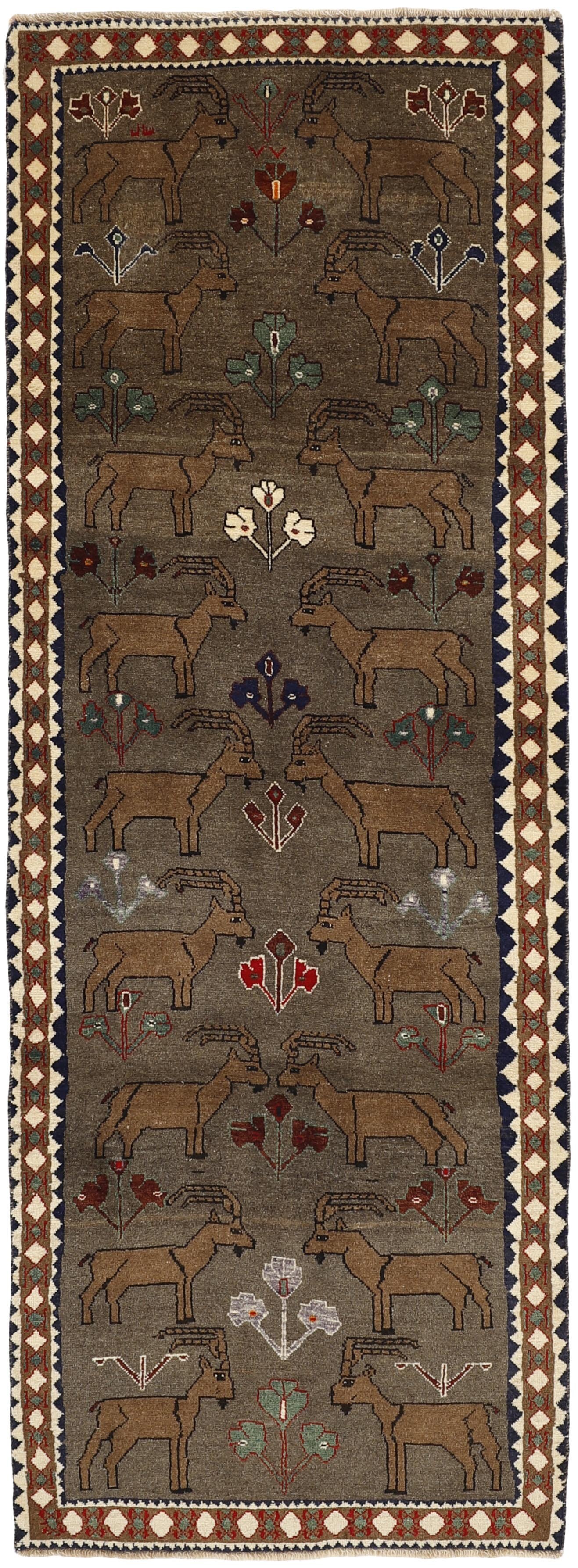 Kashghai Old FiguralItem no.: 1492457 Size: 102 cm x 301 cmThe Kashghai are Iran’s largest and most well known tribe. They speak a Turkish dialect, and are believed to have come from the Caucasus in the 18th century to their current areas, around Shiraz in the Fars Province of southern Iran. Their belligerent attitude has lead to conflicts with changing governments, as well as other tribes in the area. Both their rugs and the women’s clothing clearly show their skills and love of colours. Many subtribes exist, the most important ones being the Bilvedi, the Shishbouki, the Darashuri, and the Kashkuli. The Kashghai knot numerous types of rugs, but a characteristic product can be distinguished by its wool construction, the sturdy ridges on the back, its strong, deep colours (especially the red), as well as by the use of traditional motifs such as Harshang or the crab. The patterns are geometrical, typically with three or five medallions along the centre of the rug or in the middle and corners. The entire field is usually covered in small geometrical motifs. Persepolis motifs can often be found in the rugs. The Kashghai are also famous for their older crafts, such as horse blankets, saddlebags, and rope. The products of other tribes, such as the Kamseh and the Lori, are often mistaken for those of the Kashghai.