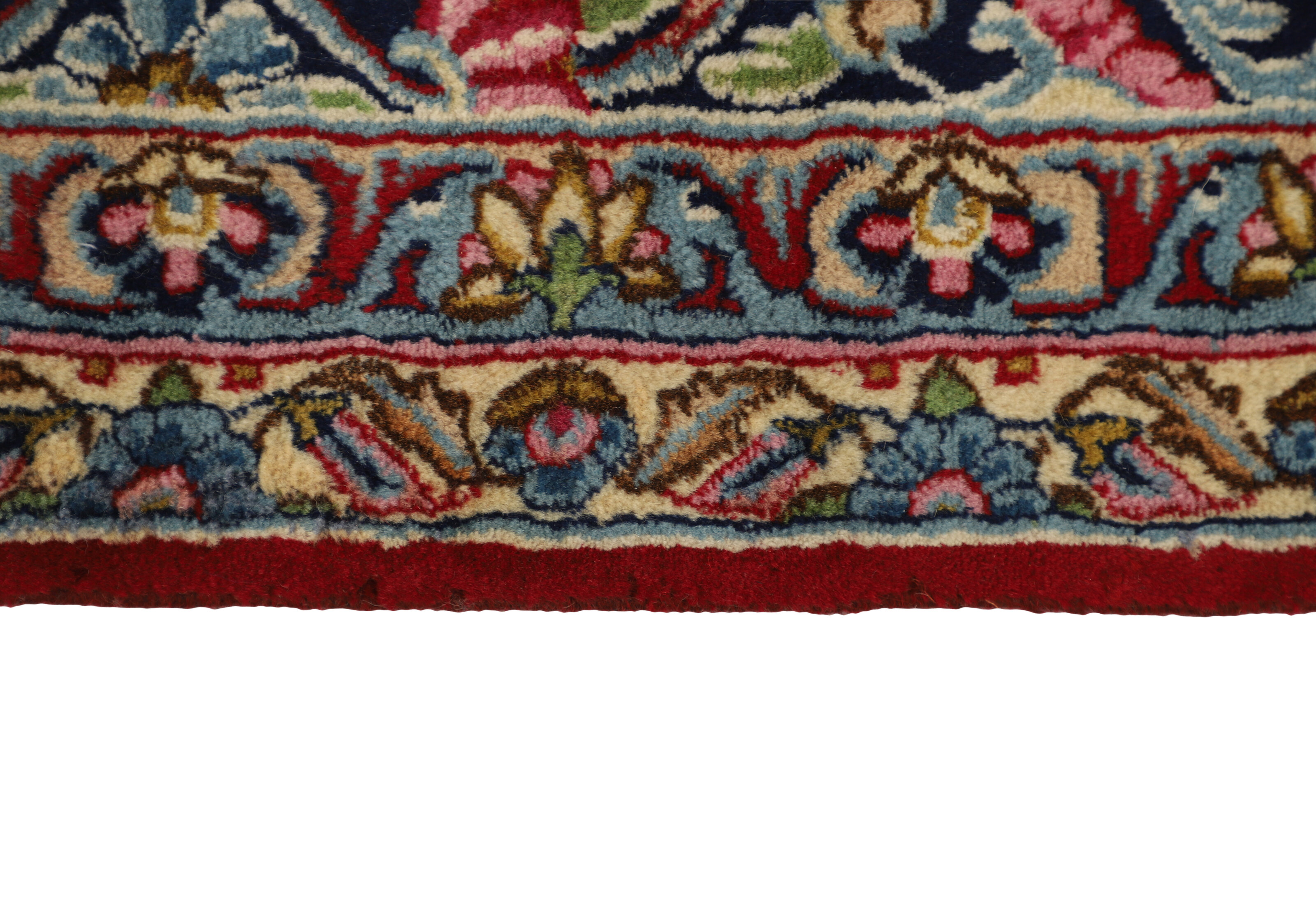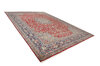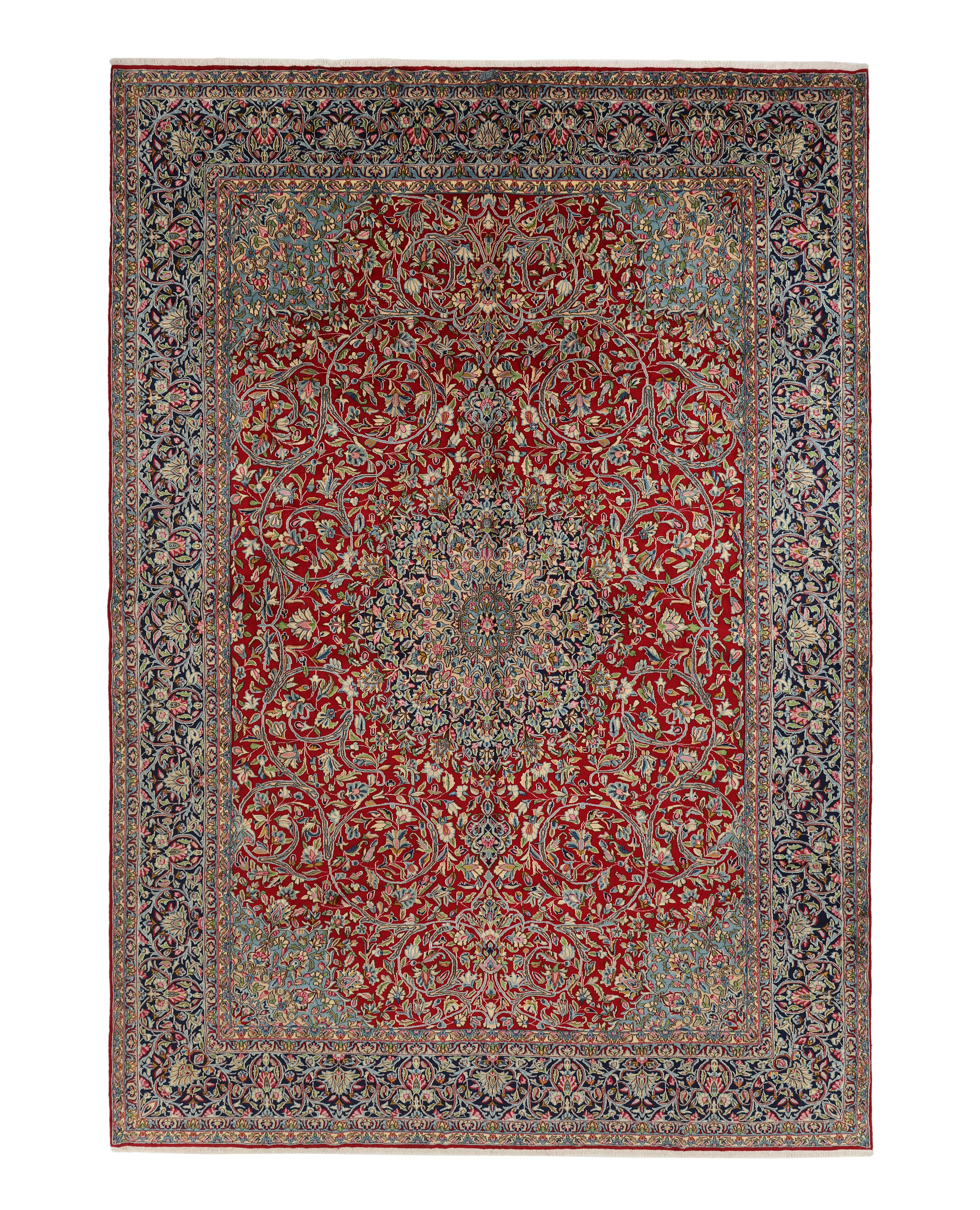 KermanItem no.: 1519857 Size: 344 cm x 506 cmThe city of Kerman lies in south-eastern Iran, on the edge of the Kavir-e-Lut Desert, and is the capitol of the Kerman province, which has about half a million inhabitants. Its geographical isolation has ensured the preservation of many monuments – there is said to be 90 mosques – and a 15th century mausoleum in nearby Mahan is said to be the most beautiful building in Iran. Like Yazd to the northwest, Kerman has a large population of Zoroastrians, who adhere to Iran’s ancient religion, which in other places has been replaced by Islam. The silhouette of Kerman is characterised by its wind towers – chimney like constructions used to catch every breeze and lead them down to the inner parts of the house. Kerman has an ancient textile tradition, and shawls were woven through large parts of the 19th century. When the demand for shawls fell, the weavers changed their looms for rug production. Initially, they used the same patterns they had used in the shawls, but they adapted them as fashion changed, although the Kerman rugs kept their delicate colours and patterns. All sizes are made. The largest rugs have unique colours and patterns, and are often knotted in the northern towns of Lavar or Ravar. Apart from the shawl patterns, Kerman often has adaptations of the Boteh- motif with natural bouquets of flowers, or adaptations of classical rug patterns. A wide range of delicate colours is used. The pile is normally soft, velvet like wool, while warp and weft are always cotton.