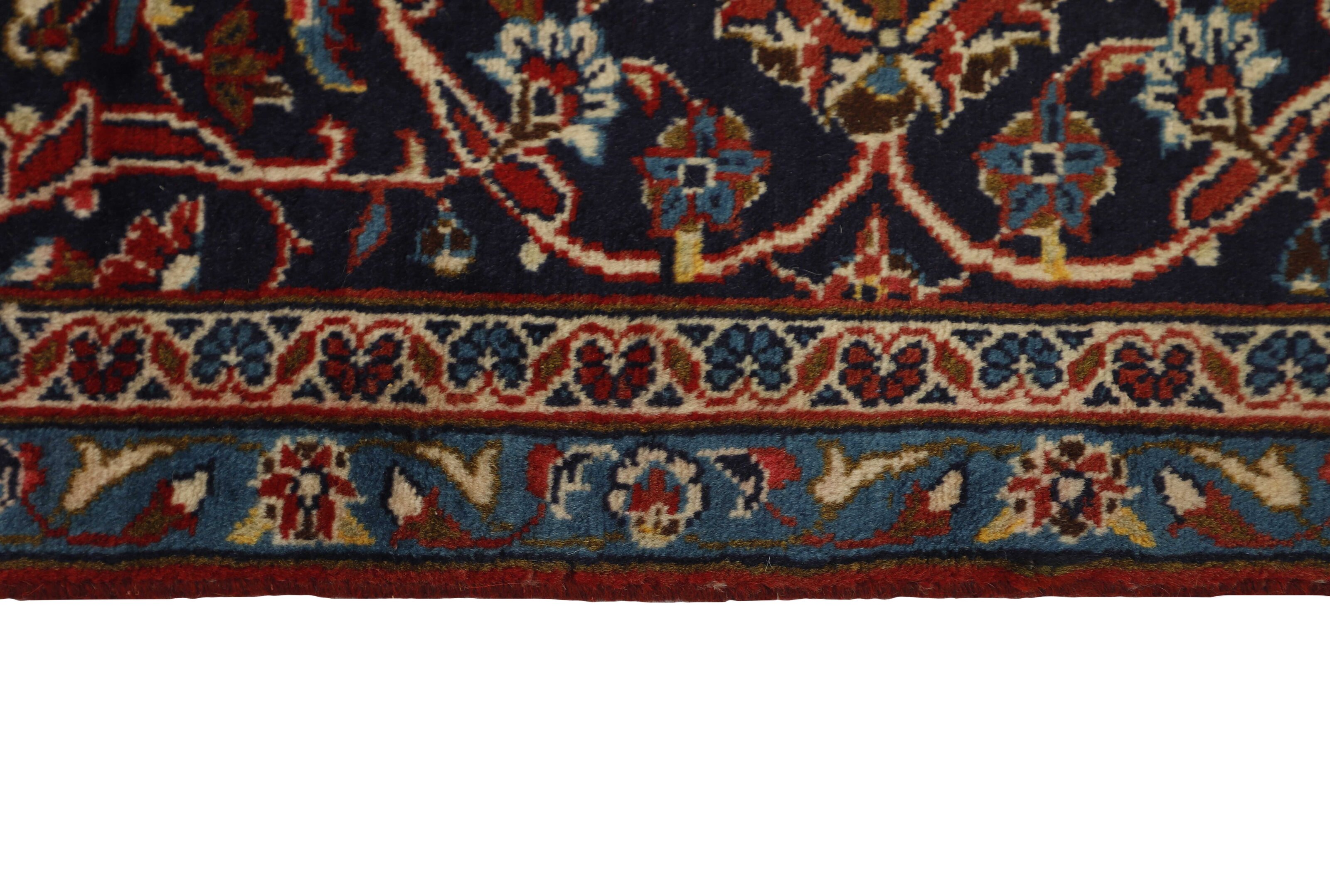 Keshan has always been famed for its handicrafts. The villages lie on the main road between Ghom and Isfahan in central Iran. To the East, the region borders Iran's largest desert. Despite the decline of this particular handicraft during the 20th century, many beautiful Keshan rugs are still being produced in accordance with the traditions of the old masters, e.g. decorated with the beautiful medallion patterns or tapestry featuring human and animal motifs. The patterns are most commonly woven around a medallion in the centre of the rug, some of which are repeated in the corners. The other fields are densely decorated with realistic flowers and vines. The main border often features the "Herati" motif (an arched leaf), while the secondary borders feature rosettes. Brick red and dark blue are the most common base colours. Keshan is a city of about 300.000 people, situated in the Isfahan province in central Iran. It is rather low lying, and it gets very hot in summer. Traditionally, people have sought to alleviate this by building the houses into the ground. Keshan produces both wool and silk rugs. The first have a cotton warp and weft, the weft being blue. Several qualities are produced, but most Keshan rugs are very finely knotted and all covering. The shape of a Keshan medallion is quite special; it is made by alternating curved lines and right angles. The most common colours are a red field and a blue medallion, with secondary details in other colours. The trimmings of a Keshan rug are also special; the main trimming is normally surrounded by stripes that form a geometrical pattern, usually small blue and red triangles. Keshan rugs come in all sizes. The south-eastern city of Natanez has laid name to image rugs done in the same knotting as Keshans.