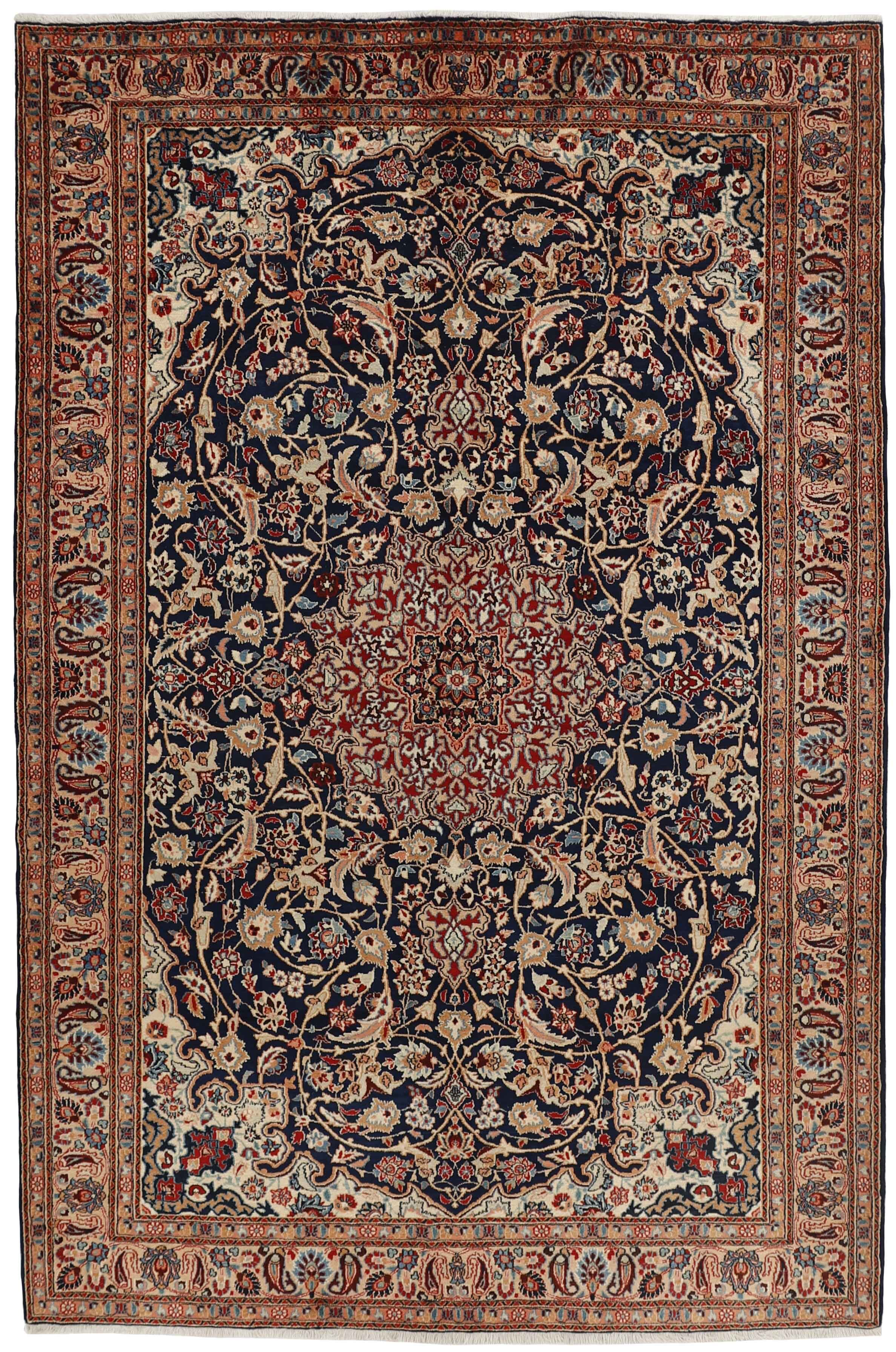 Moud MahiItem no.: 1519716 Size: 205 cm x 309 cmMoud is a small town south of Mashad, in the Khorrasan Province. Rugs from this area are characterised by homogeneity in patterns and quality. Warp and weft are cotton and the pile is wool. The trimmings are a version of the traditional Persian turtle trimming. The rugs are produced in all sizes. Moud rugs are often copied in India, because of their remarkable homogeneity. The characteristic Moud designs are among the most uniform, evenly knotted, and easily recognisable designs of the Khorrasan Province. Moud Mahi are made in a beige, light red, or blue tone, with all-over Mahi patterns or with a star shaped medallion. Mahi means fish, and the Mahi pattern is the most commonly used pattern in genuine Persian rugs. When looking at it closely, you can see a pond encircled by four fish.
