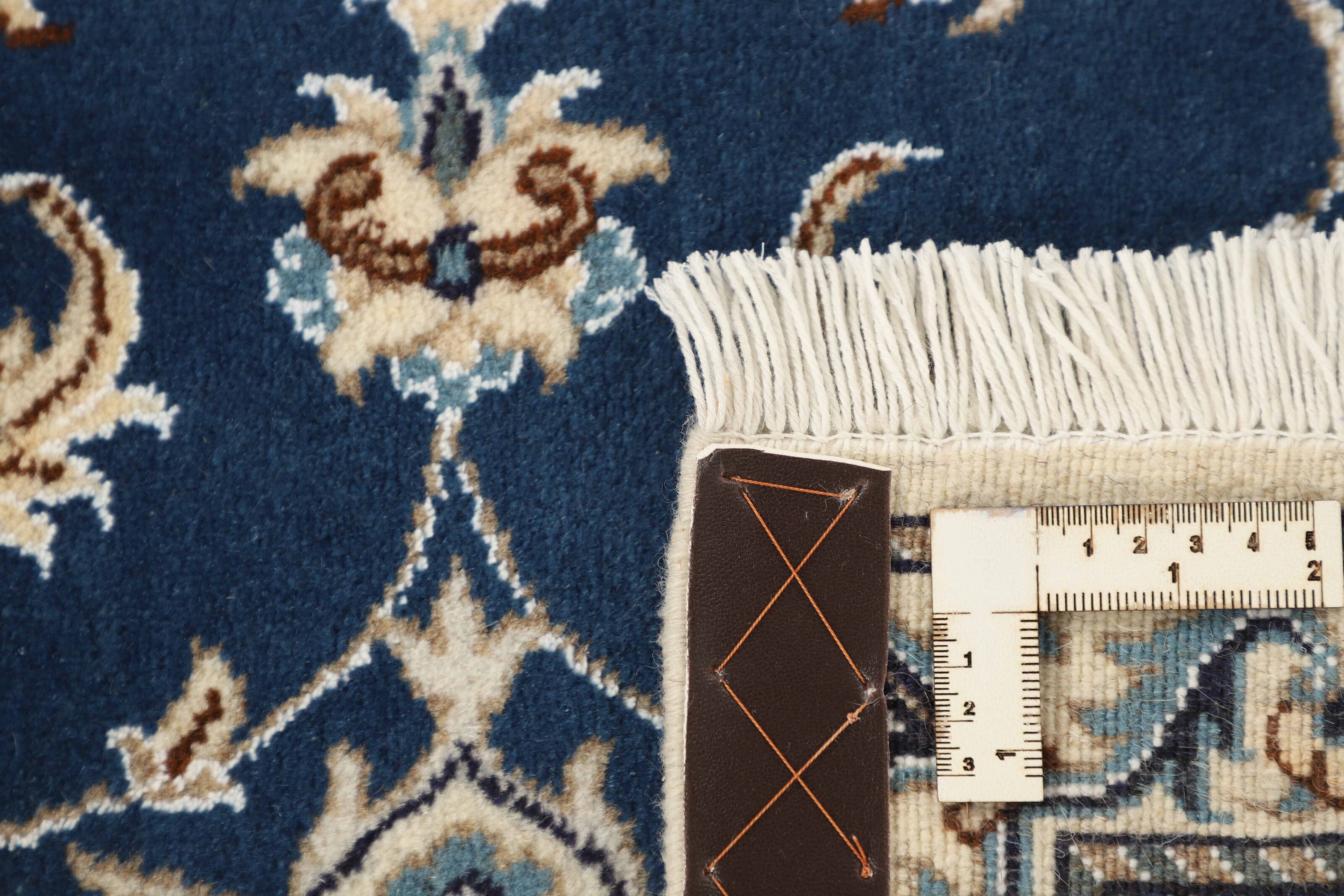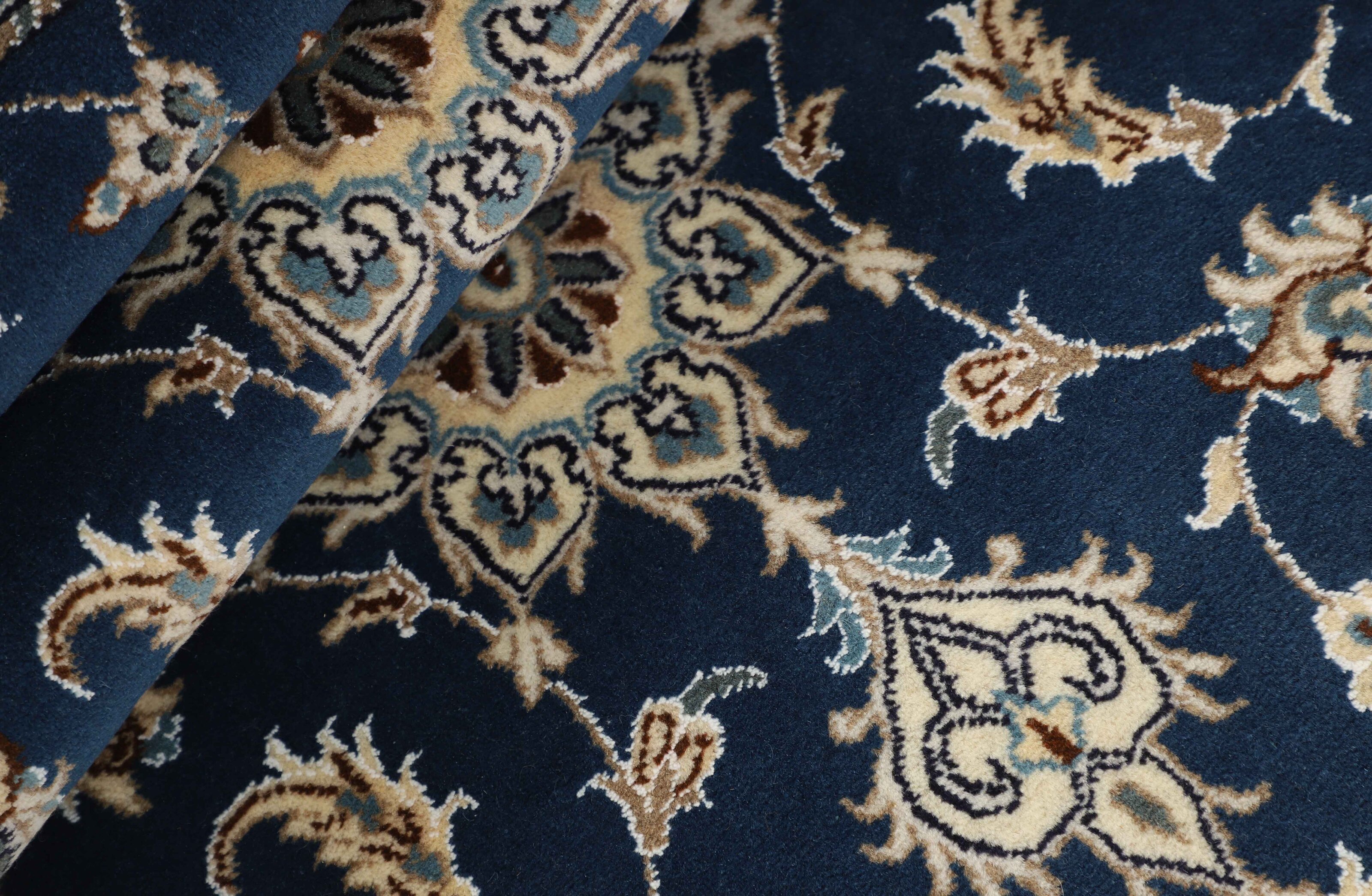 Nain KashmarItem no.: 1519758 Size: 74 cm x 204 cmNain is a city of about 50.000 people, located in the Isfahan Province. It has historic significance, since it was the last stop on caravan routes before Kavir-a-Lut, one of the deserts that stretch through the centre of Iran. The Nain Mosque is one of Iran’s oldest, and is built far better than the later and more famous mosques of Isfahan. The industry in Nain was traditionally focused on the production of wool garments, but the weavers switched to rug production when the demand fell. Their new products soon became famous, as the weavers were skilled and used good quality materials. The warp and weft are cotton, with a wool pile and contours of silk. Sometimes, silk is used more in the base. The colours are refined; nuances of ivory and cream, with small areas of red, green, and blue. As with the rugs from Isfahan, the patterns of the Nain rugs are also classical. The Nain rugs are made in all sizes, including the very large of up to 60m2, and some of these have a pure silk pile. The largest Nain rug produced was 20 by 20 metres.