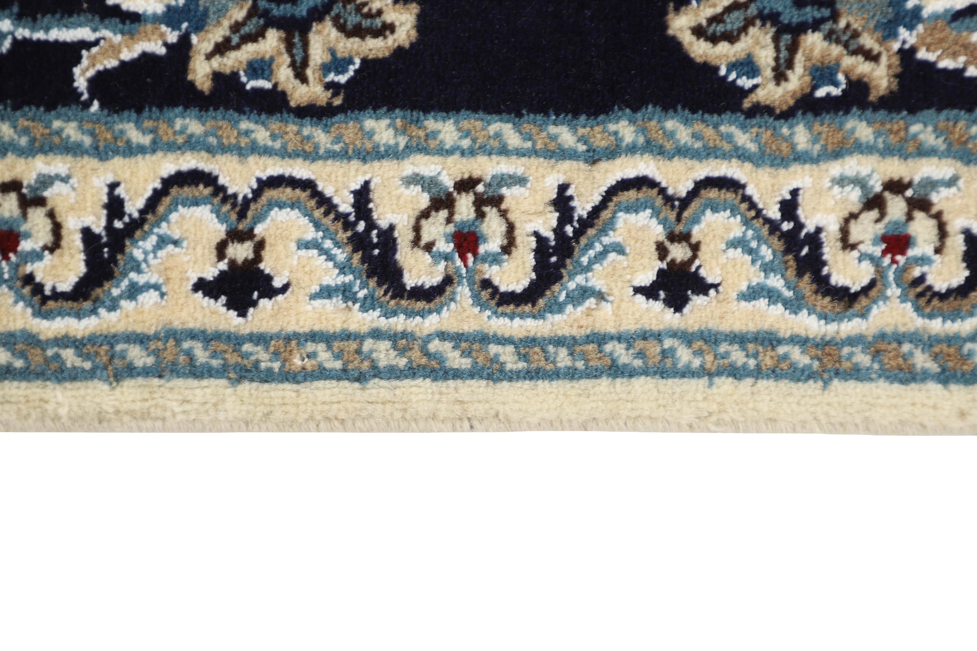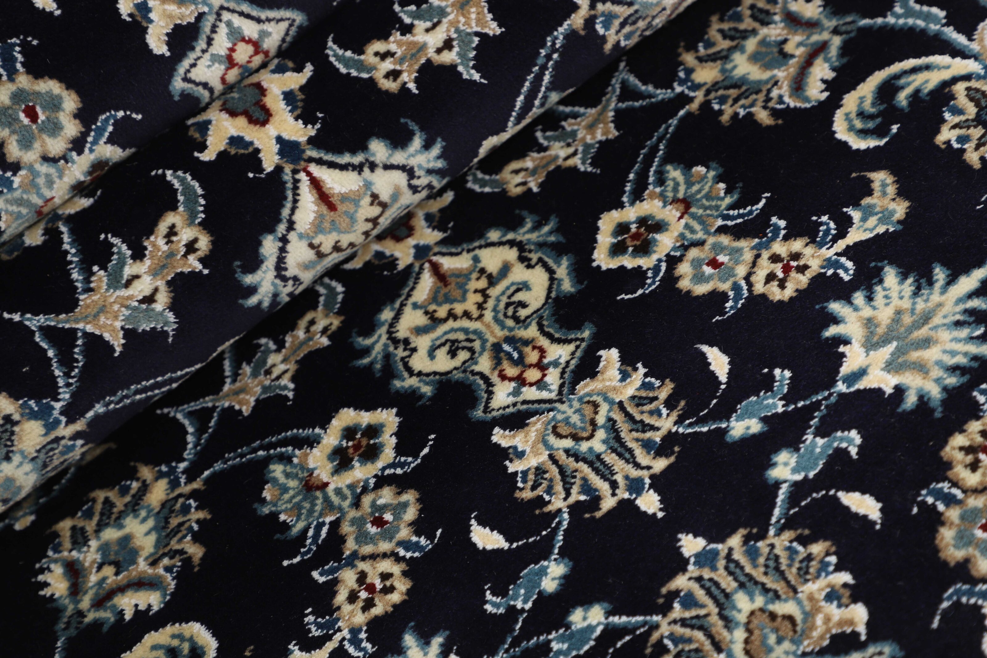 Nain KashmarItem no.: 1519908 Size: 79 cm x 292 cmNain is a city of about 50.000 people, located in the Isfahan Province. It has historic significance, since it was the last stop on caravan routes before Kavir-a-Lut, one of the deserts that stretch through the centre of Iran. The Nain Mosque is one of Iran’s oldest, and is built far better than the later and more famous mosques of Isfahan. The industry in Nain was traditionally focused on the production of wool garments, but the weavers switched to rug production when the demand fell. Their new products soon became famous, as the weavers were skilled and used good quality materials. The warp and weft are cotton, with a wool pile and contours of silk. Sometimes, silk is used more in the base. The colours are refined; nuances of ivory and cream, with small areas of red, green, and blue. As with the rugs from Isfahan, the patterns of the Nain rugs are also classical. The Nain rugs are made in all sizes, including the very large of up to 60m2, and some of these have a pure silk pile. The largest Nain rug produced was 20 by 20 metres.