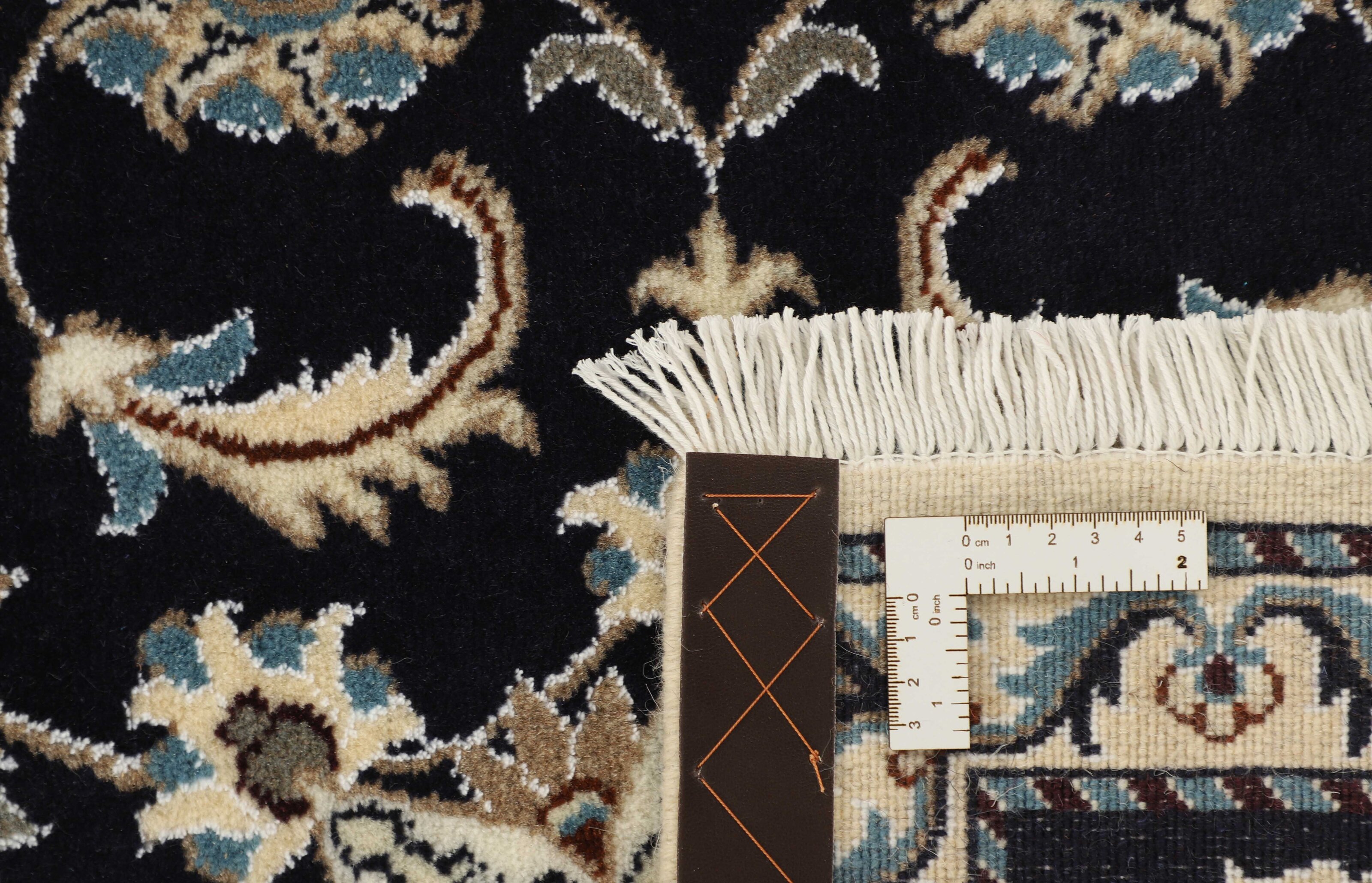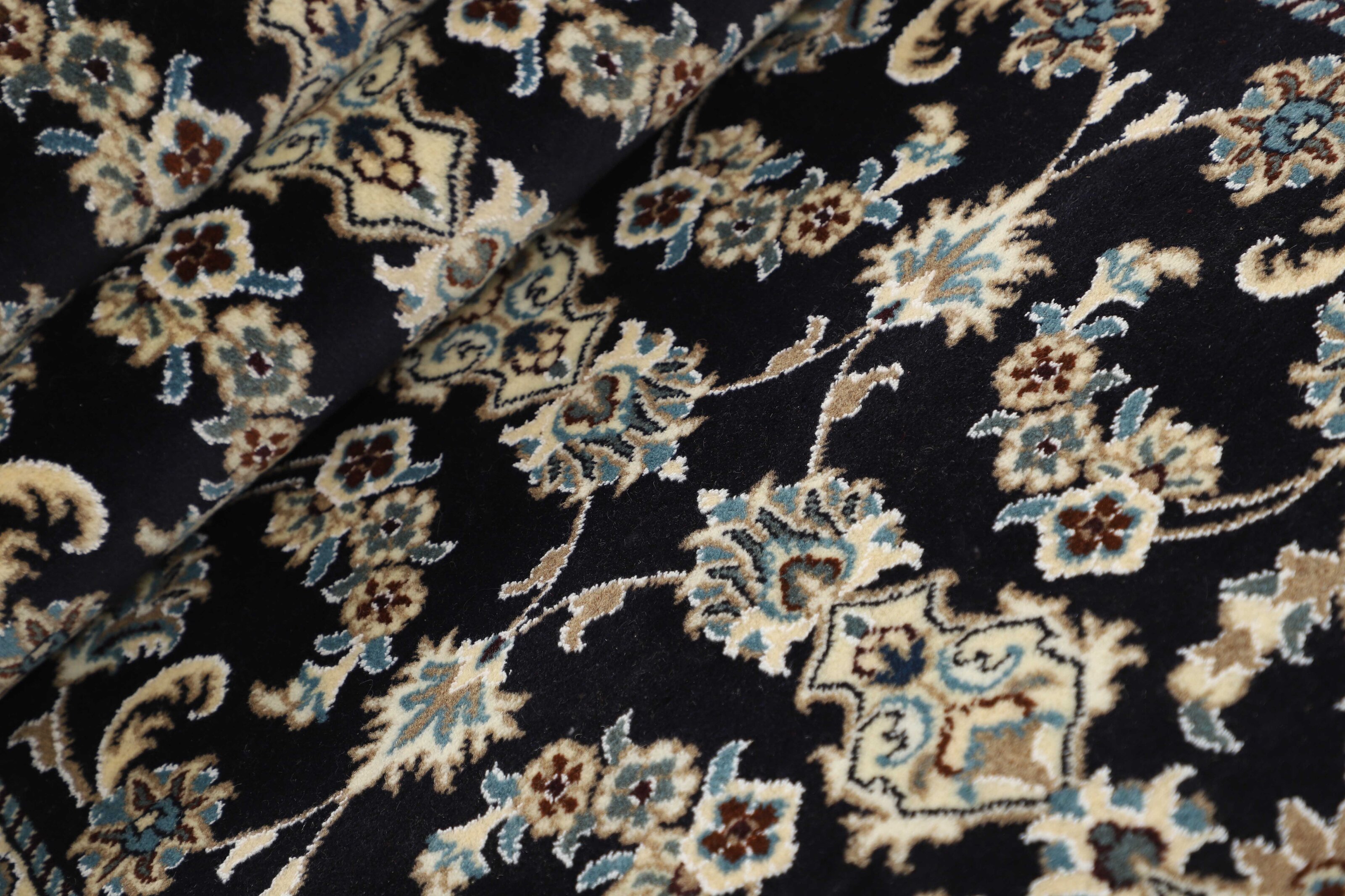 Nain KashmarItem no.: 1519910 Size: 77 cm x 382 cmNain is a city of about 50.000 people, located in the Isfahan Province. It has historic significance, since it was the last stop on caravan routes before Kavir-a-Lut, one of the deserts that stretch through the centre of Iran. The Nain Mosque is one of Iran’s oldest, and is built far better than the later and more famous mosques of Isfahan. The industry in Nain was traditionally focused on the production of wool garments, but the weavers switched to rug production when the demand fell. Their new products soon became famous, as the weavers were skilled and used good quality materials. The warp and weft are cotton, with a wool pile and contours of silk. Sometimes, silk is used more in the base. The colours are refined; nuances of ivory and cream, with small areas of red, green, and blue. As with the rugs from Isfahan, the patterns of the Nain rugs are also classical. The Nain rugs are made in all sizes, including the very large of up to 60m2, and some of these have a pure silk pile. The largest Nain rug produced was 20 by 20 metres.