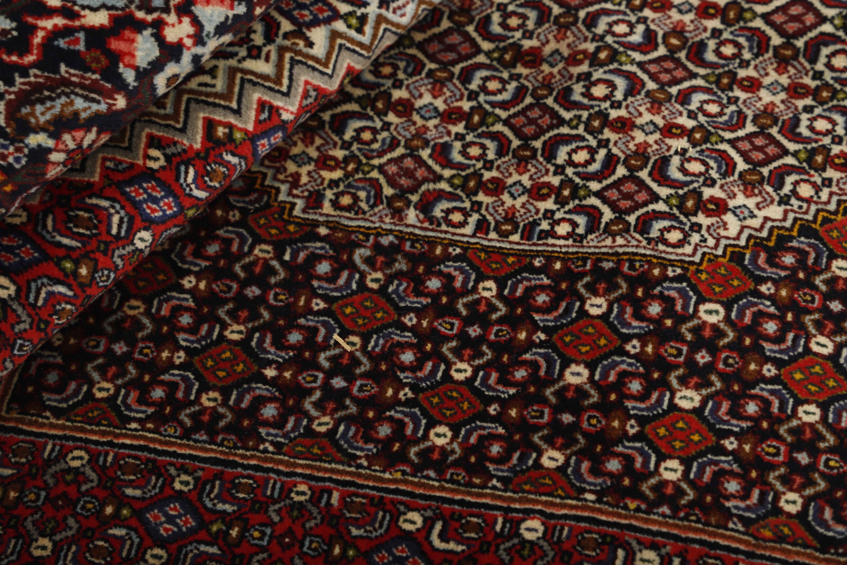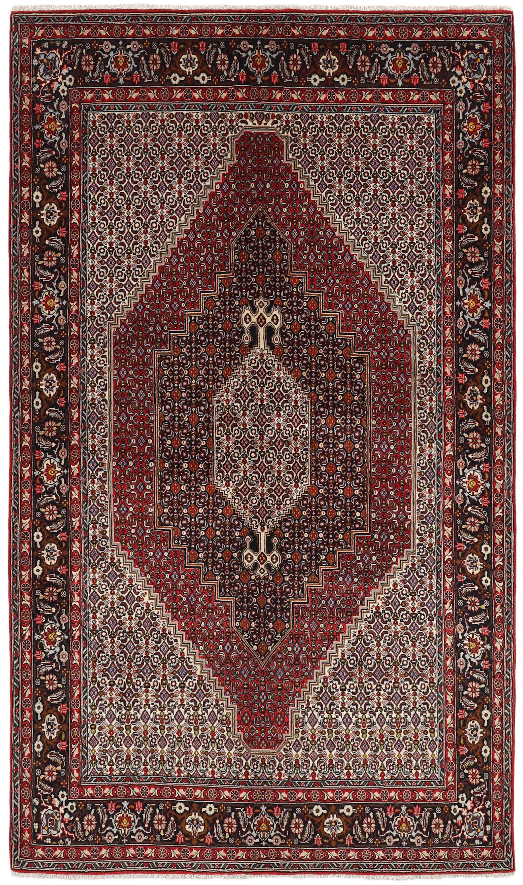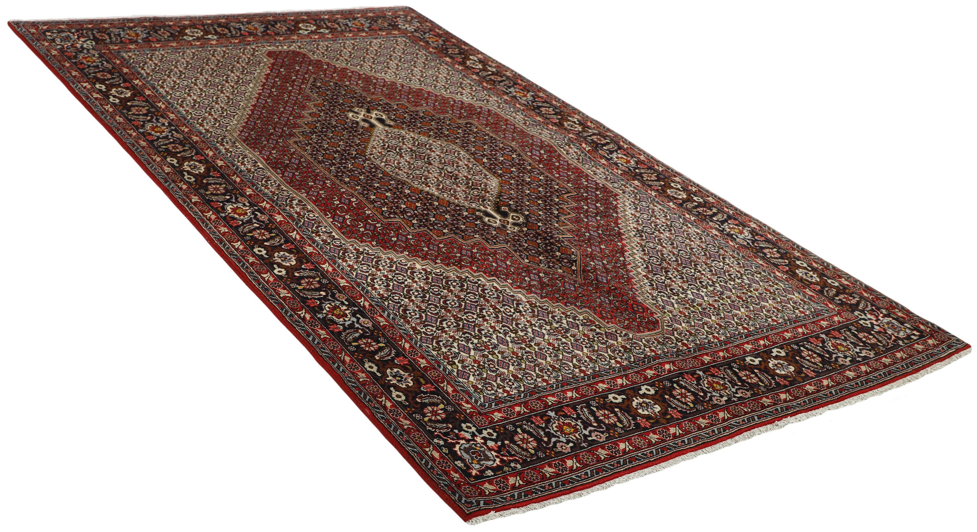 SenehItem no.: 1492947 Size: 157 cm x 270 cmSeneh in Sanadaj is the capitol of the Kurdistan province of north-western Iran, and has about 300.000 inhabitants, most of them Kurds from the Gurani Tribe. Seneh rugs are easily recognisable by their knotting method, as well as the pattern colours and wool used. They usually have a simple weft, and the back of the rugs is often coarse and grainy, as the wool is spun tightly by hand before the knotting. Sometimes, a firm Bidjar-like knotting can be seen. Characteristically, the colours are deep blue, green, dark red, and white. Seneh wool is among the best qualities of wool in Iran: firm and durable, with a deep glow, a result of the high altitude, the sparse vegetation, and extremes in temperature. The tribal knotters in the area use the same type of wool. In the 19th century, Seneh rugs were famous for their fineness and the variation in patterns, while the modern production is less fine and not as varied. The Ghiordis knot is usually used, but you will also encounter rugs from Seneh with the Seneh knot. The typical Seneh rug has a Herati pattern field, with a series of geometrical medallions, one inside the other, each repeating the pattern with a different ground colour. Sometimes, the older, more uniform patterns are seen: Boteh, Vekili, Gol-Farang (naturalistic, European style bundles of flowers) or Gol-i-Bulbul (birds and flowers).