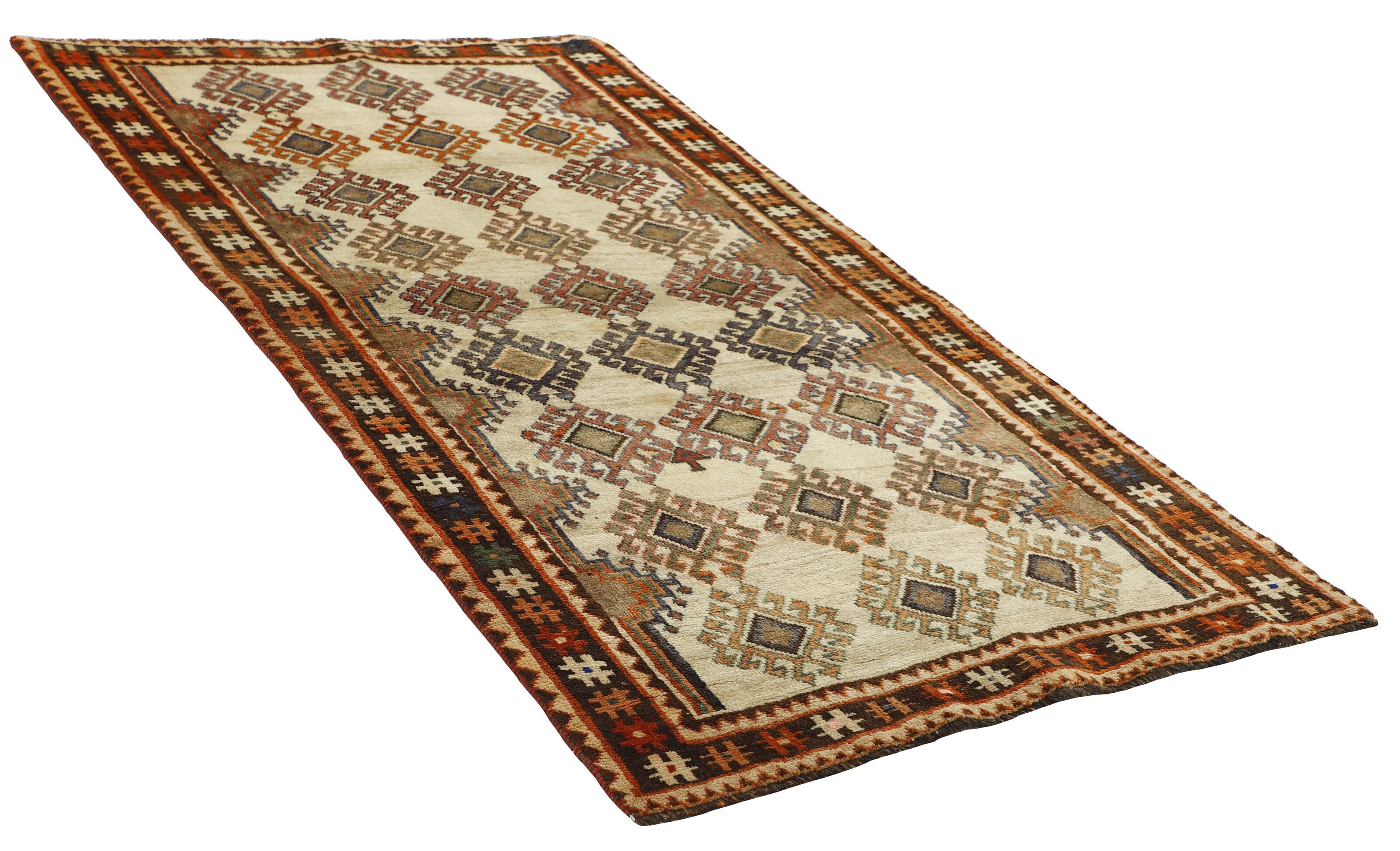 ShirazItem no.: 1489770 Size: 112 cm x 215 cmShiraz, with a population of about one million, is the capitol of the south-eastern province of Fars, and is situated in the Zargros Mountains. Shiraz is an age-old city, which has been the capitol of Iran several times, and it is known as the city of roses and nightingales. It has a reputation of being very relaxed, with a “ we will get around to that tomorrow”-attitude. Shiraz has laid name to rugs that are knotted in the small towns and villages surrounding it, from where they are brought to the city to be sold. The local tribes like the Kashghai, whose best works are even finer and more densely knotted than those knotted in Shiraz itself, also make them. Shiraz rugs are characterised by a deep claret colour, combined with dark blue and small areas of white and green. The wool is soft, and darker wool, sometimes mixed with goat’s hair, is used for both warp and weft. The patterns are coarse and geometrical, often identical to the Kashghai patterns. Often, small, geometrical birds and animals brighten them up. Shiraz rugs are made in all sizes, although big rugs are rare.
