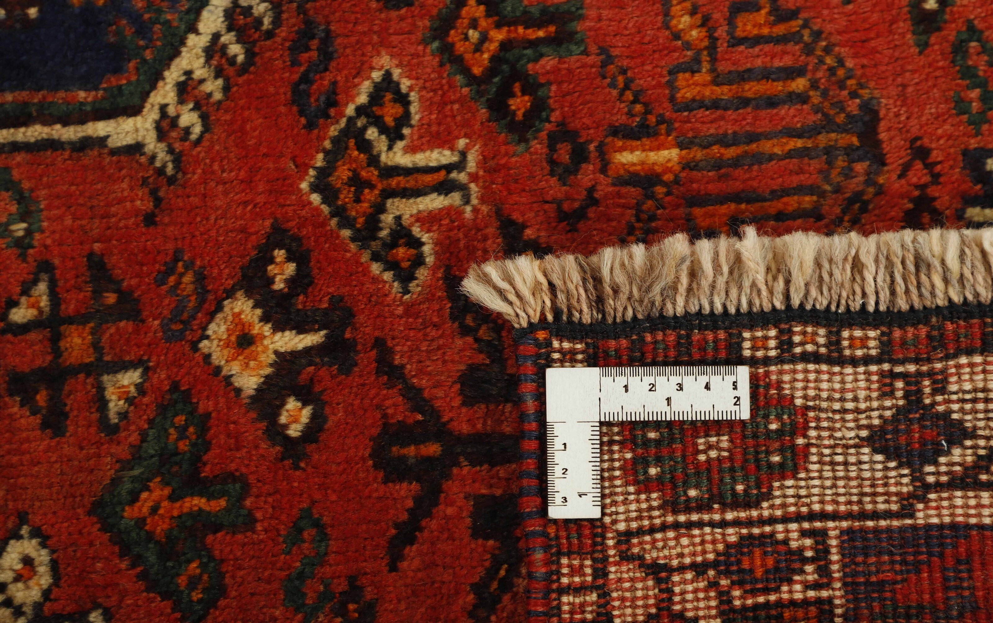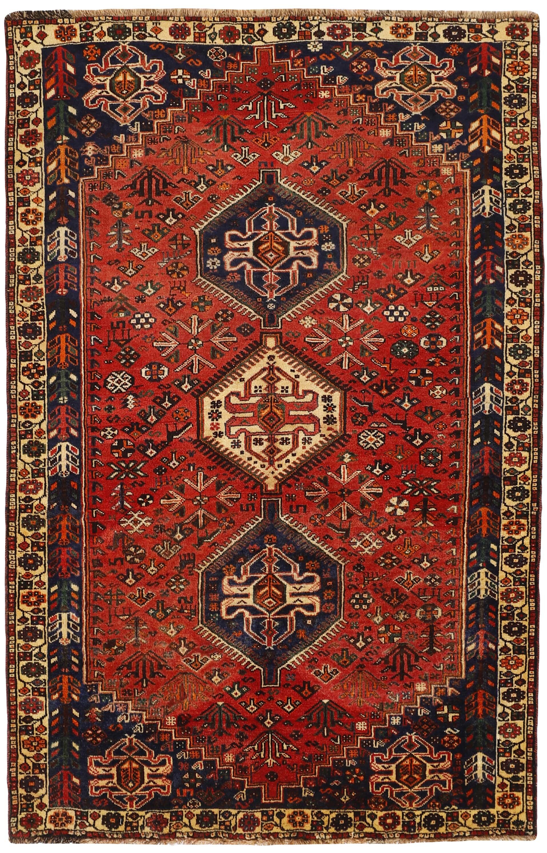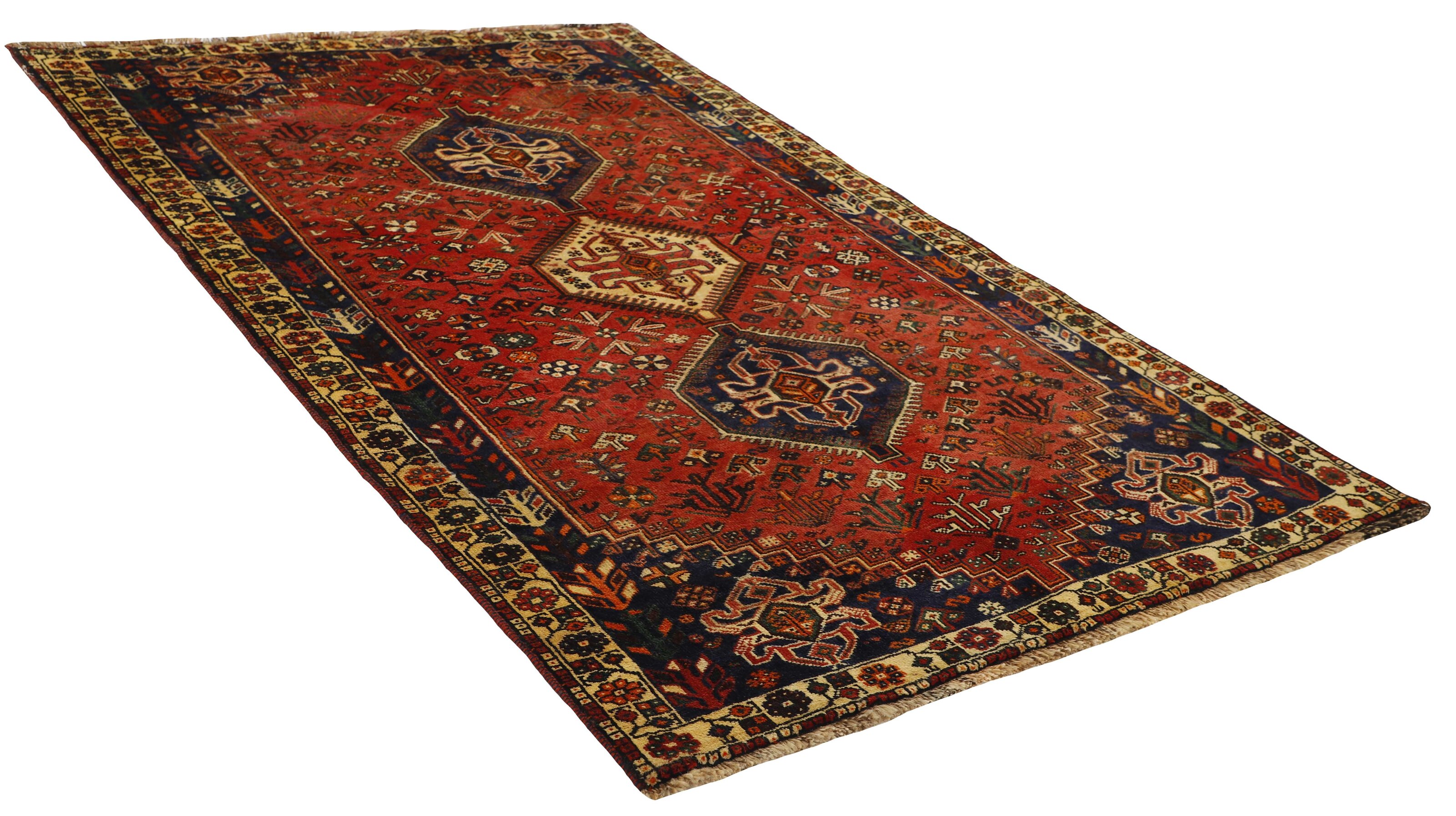 ShirazItem no.: 1489780 Size: 163 cm x 248 cmShiraz, with a population of about one million, is the capitol of the south-eastern province of Fars, and is situated in the Zargros Mountains. Shiraz is an age-old city, which has been the capitol of Iran several times, and it is known as the city of roses and nightingales. It has a reputation of being very relaxed, with a “ we will get around to that tomorrow”-attitude. Shiraz has laid name to rugs that are knotted in the small towns and villages surrounding it, from where they are brought to the city to be sold. The local tribes like the Kashghai, whose best works are even finer and more densely knotted than those knotted in Shiraz itself, also make them. Shiraz rugs are characterised by a deep claret colour, combined with dark blue and small areas of white and green. The wool is soft, and darker wool, sometimes mixed with goat’s hair, is used for both warp and weft. The patterns are coarse and geometrical, often identical to the Kashghai patterns. Often, small, geometrical birds and animals brighten them up. Shiraz rugs are made in all sizes, although big rugs are rare.