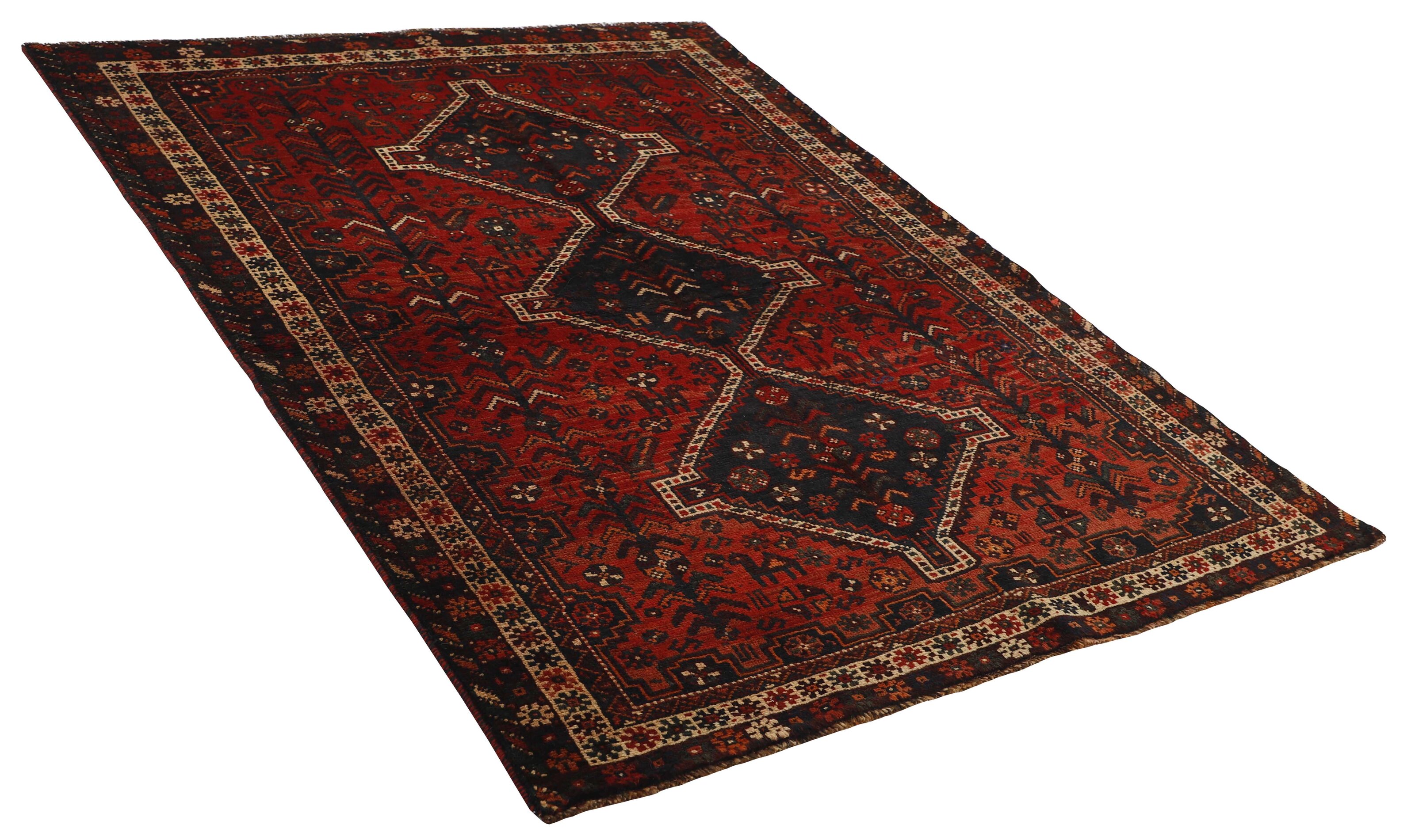 ShirazItem no.: 1489798 Size: 143 cm x 192 cmShiraz, with a population of about one million, is the capitol of the south-eastern province of Fars, and is situated in the Zargros Mountains. Shiraz is an age-old city, which has been the capitol of Iran several times, and it is known as the city of roses and nightingales. It has a reputation of being very relaxed, with a “ we will get around to that tomorrow”-attitude. Shiraz has laid name to rugs that are knotted in the small towns and villages surrounding it, from where they are brought to the city to be sold. The local tribes like the Kashghai, whose best works are even finer and more densely knotted than those knotted in Shiraz itself, also make them. Shiraz rugs are characterised by a deep claret colour, combined with dark blue and small areas of white and green. The wool is soft, and darker wool, sometimes mixed with goat’s hair, is used for both warp and weft. The patterns are coarse and geometrical, often identical to the Kashghai patterns. Often, small, geometrical birds and animals brighten them up. Shiraz rugs are made in all sizes, although big rugs are rare.