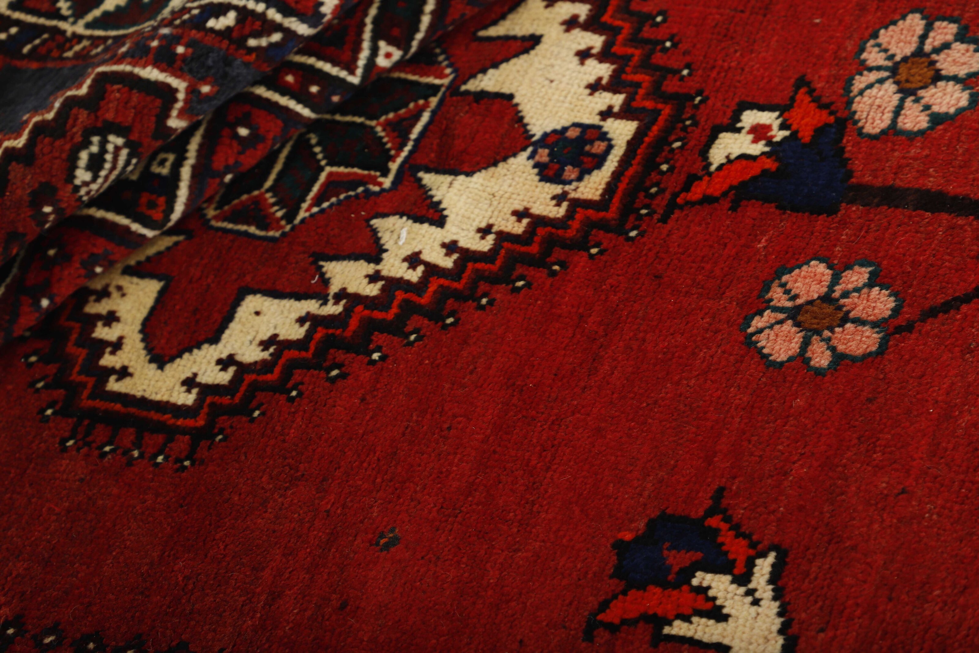 ShirazItem no.: 1489809 Size: 151 cm x 262 cmShiraz, with a population of about one million, is the capitol of the south-eastern province of Fars, and is situated in the Zargros Mountains. Shiraz is an age-old city, which has been the capitol of Iran several times, and it is known as the city of roses and nightingales. It has a reputation of being very relaxed, with a “ we will get around to that tomorrow”-attitude. Shiraz has laid name to rugs that are knotted in the small towns and villages surrounding it, from where they are brought to the city to be sold. The local tribes like the Kashghai, whose best works are even finer and more densely knotted than those knotted in Shiraz itself, also make them. Shiraz rugs are characterised by a deep claret colour, combined with dark blue and small areas of white and green. The wool is soft, and darker wool, sometimes mixed with goat’s hair, is used for both warp and weft. The patterns are coarse and geometrical, often identical to the Kashghai patterns. Often, small, geometrical birds and animals brighten them up. Shiraz rugs are made in all sizes, although big rugs are rare.
