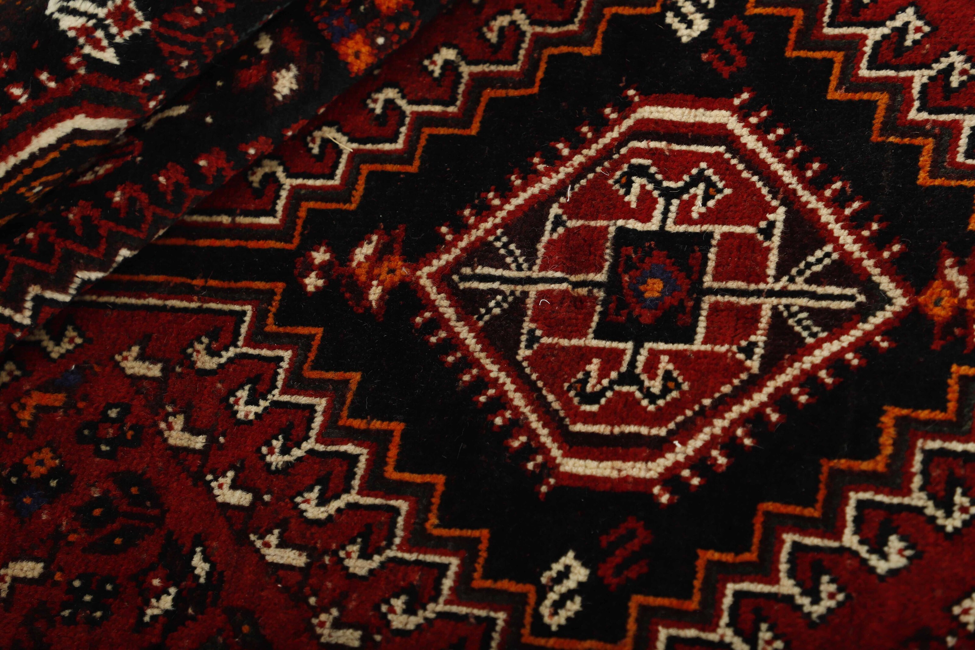 ShirazItem no.: 1489819 Size: 229 cm x 317 cmShiraz, with a population of about one million, is the capitol of the south-eastern province of Fars, and is situated in the Zargros Mountains. Shiraz is an age-old city, which has been the capitol of Iran several times, and it is known as the city of roses and nightingales. It has a reputation of being very relaxed, with a “ we will get around to that tomorrow”-attitude. Shiraz has laid name to rugs that are knotted in the small towns and villages surrounding it, from where they are brought to the city to be sold. The local tribes like the Kashghai, whose best works are even finer and more densely knotted than those knotted in Shiraz itself, also make them. Shiraz rugs are characterised by a deep claret colour, combined with dark blue and small areas of white and green. The wool is soft, and darker wool, sometimes mixed with goat’s hair, is used for both warp and weft. The patterns are coarse and geometrical, often identical to the Kashghai patterns. Often, small, geometrical birds and animals brighten them up. Shiraz rugs are made in all sizes, although big rugs are rare.