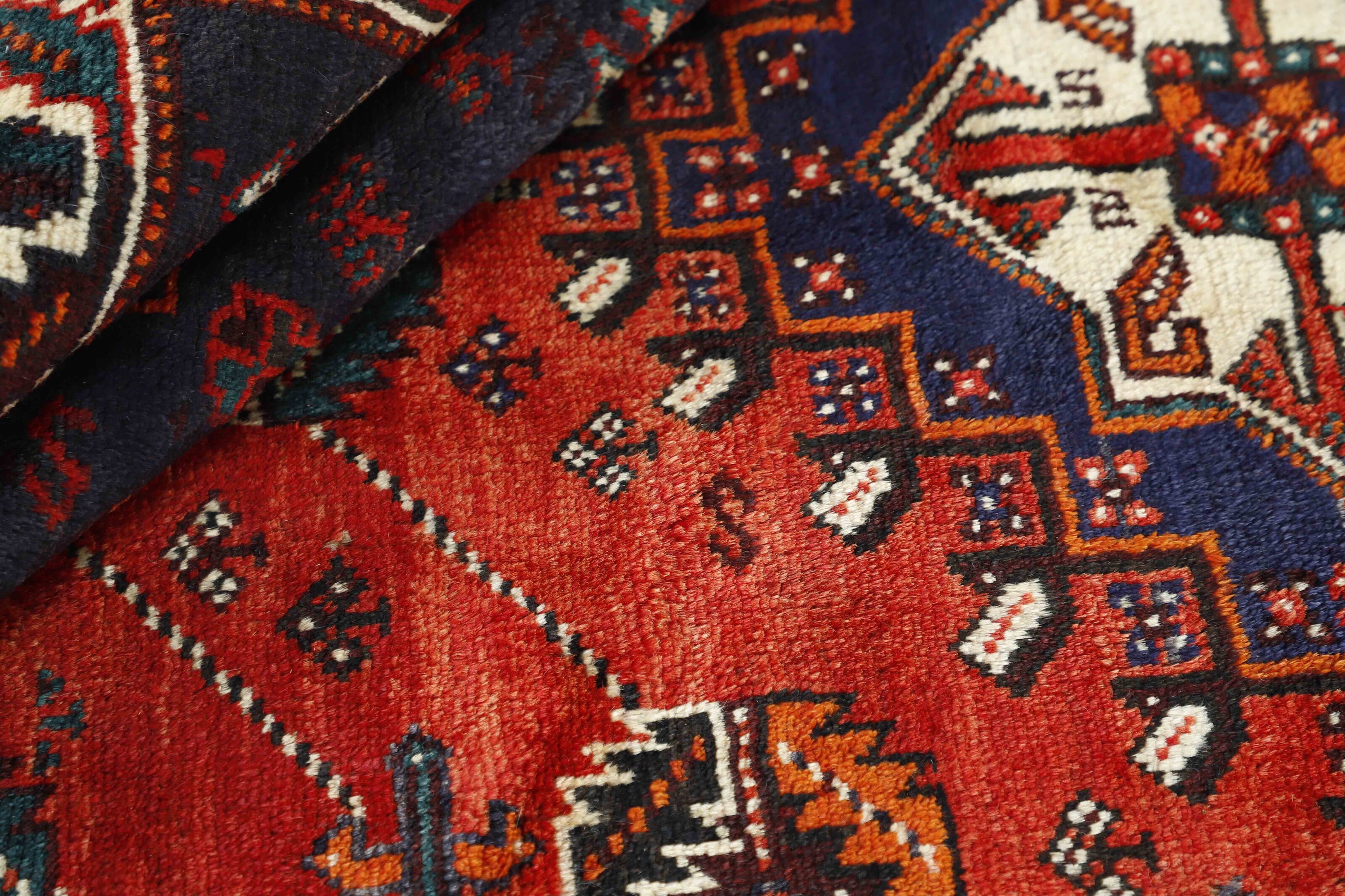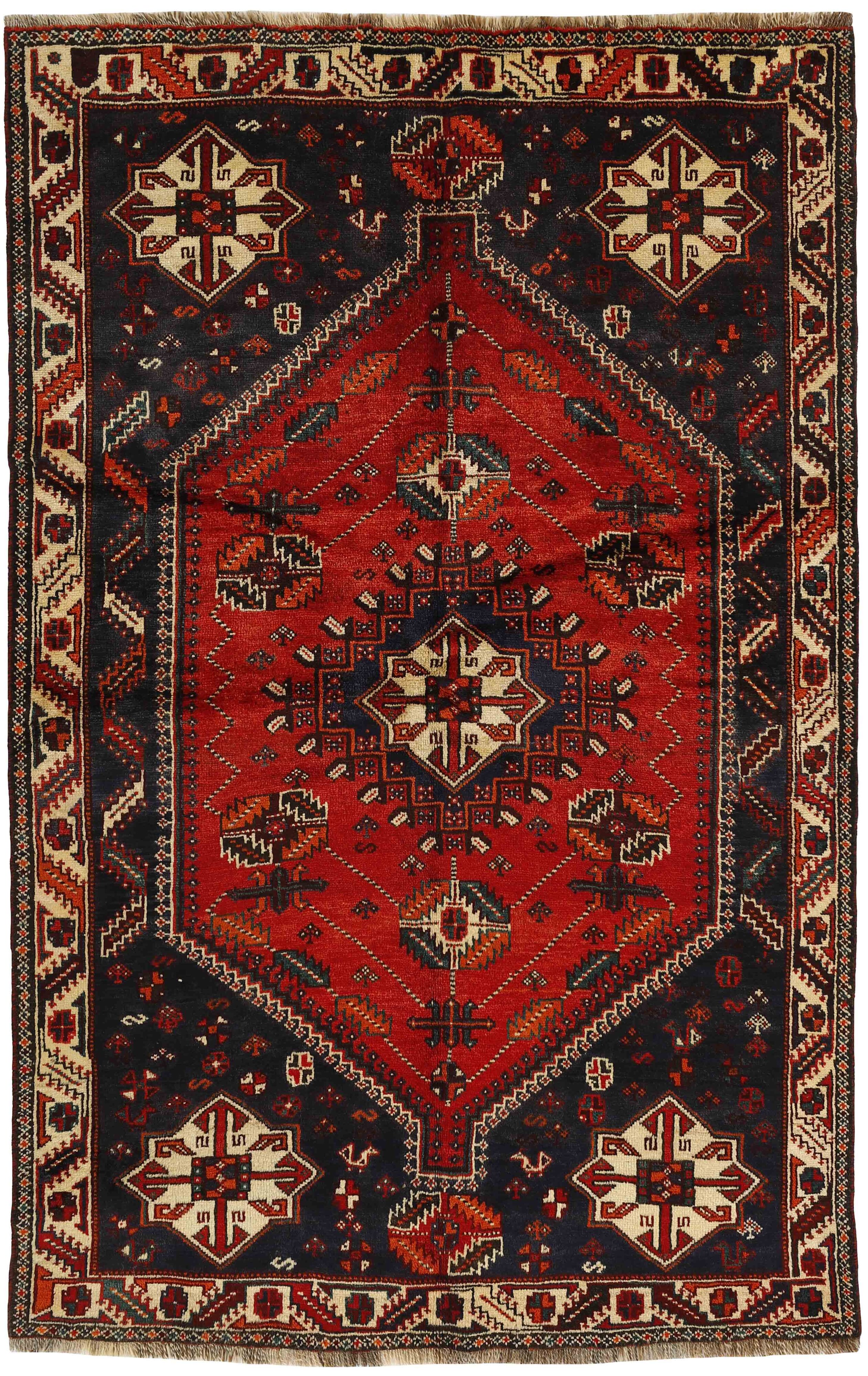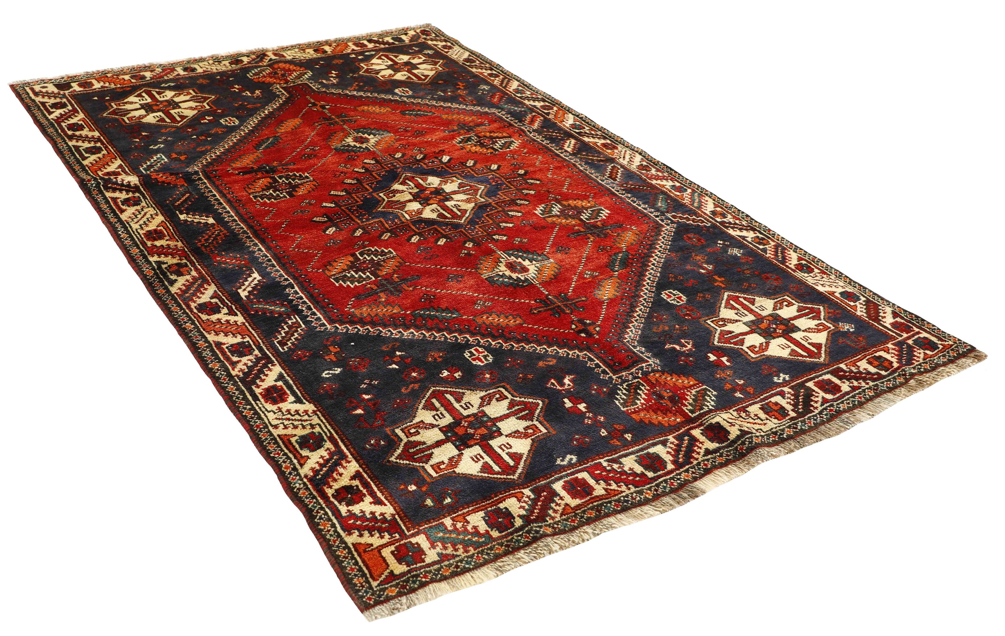 ShirazItem no.: 1499773 Size: 158 cm x 247 cmShiraz, with a population of about one million, is the capitol of the south-eastern province of Fars, and is situated in the Zargros Mountains. Shiraz is an age-old city, which has been the capitol of Iran several times, and it is known as the city of roses and nightingales. It has a reputation of being very relaxed, with a “ we will get around to that tomorrow”-attitude. Shiraz has laid name to rugs that are knotted in the small towns and villages surrounding it, from where they are brought to the city to be sold. The local tribes like the Kashghai, whose best works are even finer and more densely knotted than those knotted in Shiraz itself, also make them. Shiraz rugs are characterised by a deep claret colour, combined with dark blue and small areas of white and green. The wool is soft, and darker wool, sometimes mixed with goat’s hair, is used for both warp and weft. The patterns are coarse and geometrical, often identical to the Kashghai patterns. Often, small, geometrical birds and animals brighten them up. Shiraz rugs are made in all sizes, although big rugs are rare.