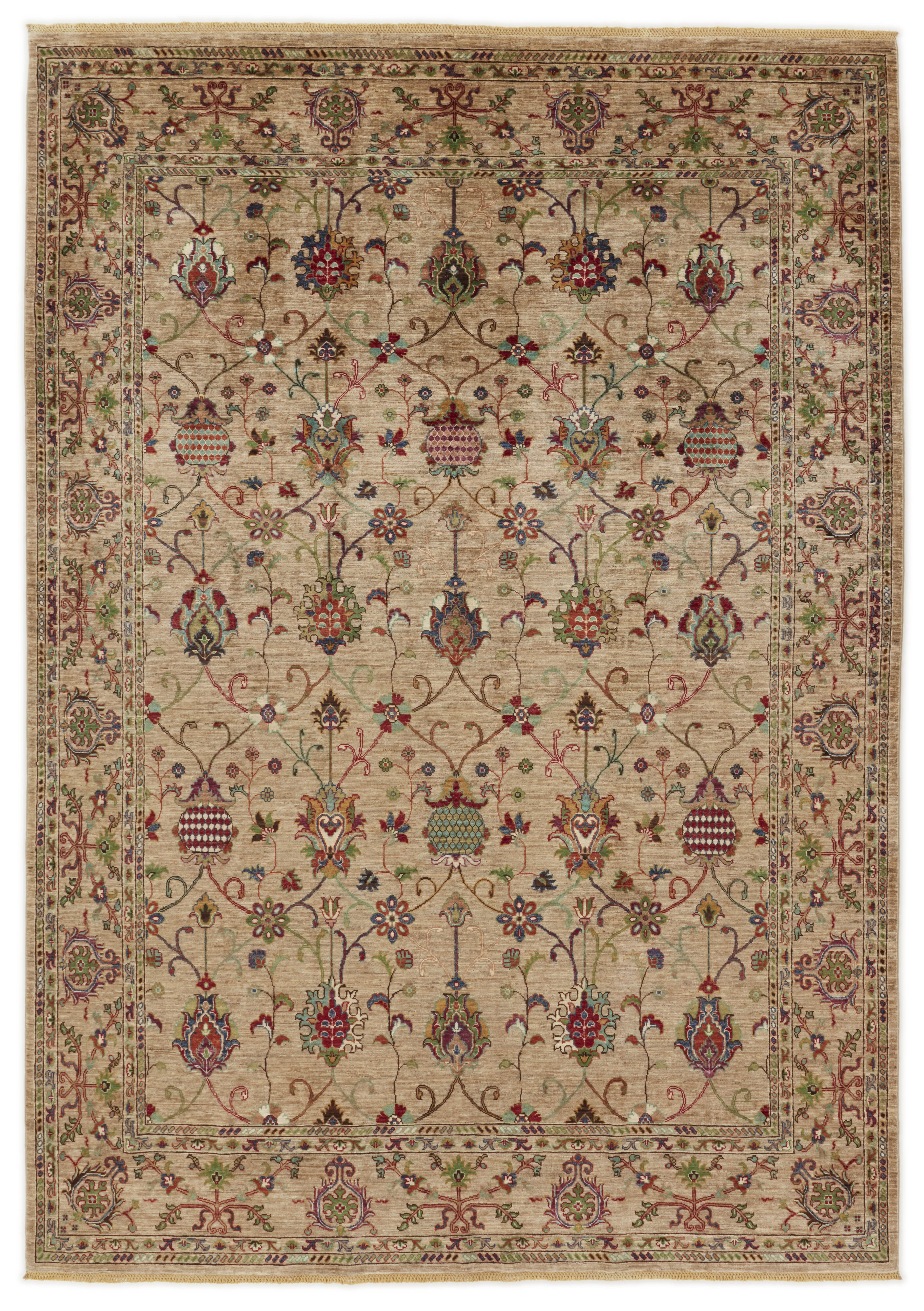The story behind the Ziegler name dates back to 1870-80, to the Arak area of Persia, where the Ziegler Company from Manchester established its own large knottery, to meet the demand for rugs in patterns, colours and sizes tailored to western taste. The production took place in the company’s own workshops and not in the homes of the knotters themselves. The Ziegler rugs were produced until the First World War and were densely knotted rugs in delicate, pastel-like colours. Later on, the patterns have inspired different Turkmen nomad families and they are now produced in Afghanistan and Turkmenistan. The rugs, with their charming characteristics of flowers and leaf patterns, are all unique variations of a harmoniously balanced range of earth tones, consisting of nuances such as madder lake, burned sienna, burned umber, ochre, wine leaf yellow, indigo blue, and henna orange. To add the graceful and very sought-after patina, the rugs are exposed to a particularly intense washing, followed by sun drying.