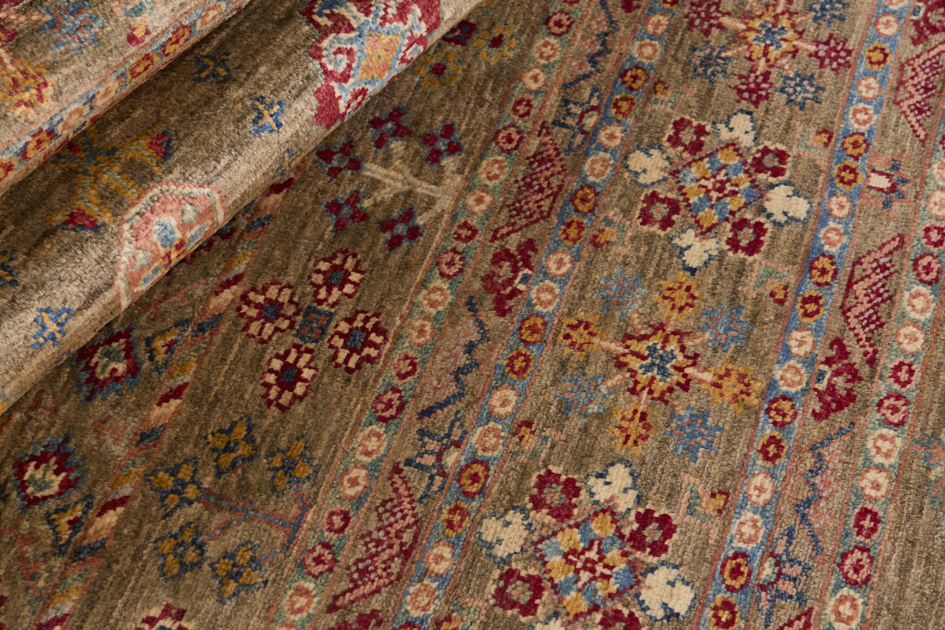 The story behind the Ziegler name dates back to 1870-80, to the Arak area of Persia, where the Ziegler Company from Manchester established its own large knottery, to meet the demand for rugs in patterns, colours and sizes tailored to western taste. The production took place in the company’s own workshops and not in the homes of the knotters themselves. The Ziegler rugs were produced until the First World War and were densely knotted rugs in delicate, pastel-like colours. Later on, the patterns have inspired different Turkmen nomad families and they are now produced in Afghanistan and Turkmenistan. The rugs, with their charming characteristics of flowers and leaf patterns, are all unique variations of a harmoniously balanced range of earth tones, consisting of nuances such as madder lake, burned sienna, burned umber, ochre, wine leaf yellow, indigo blue, and henna orange. To add the graceful and very sought-after patina, the rugs are exposed to a particularly intense washing, followed by sun drying.