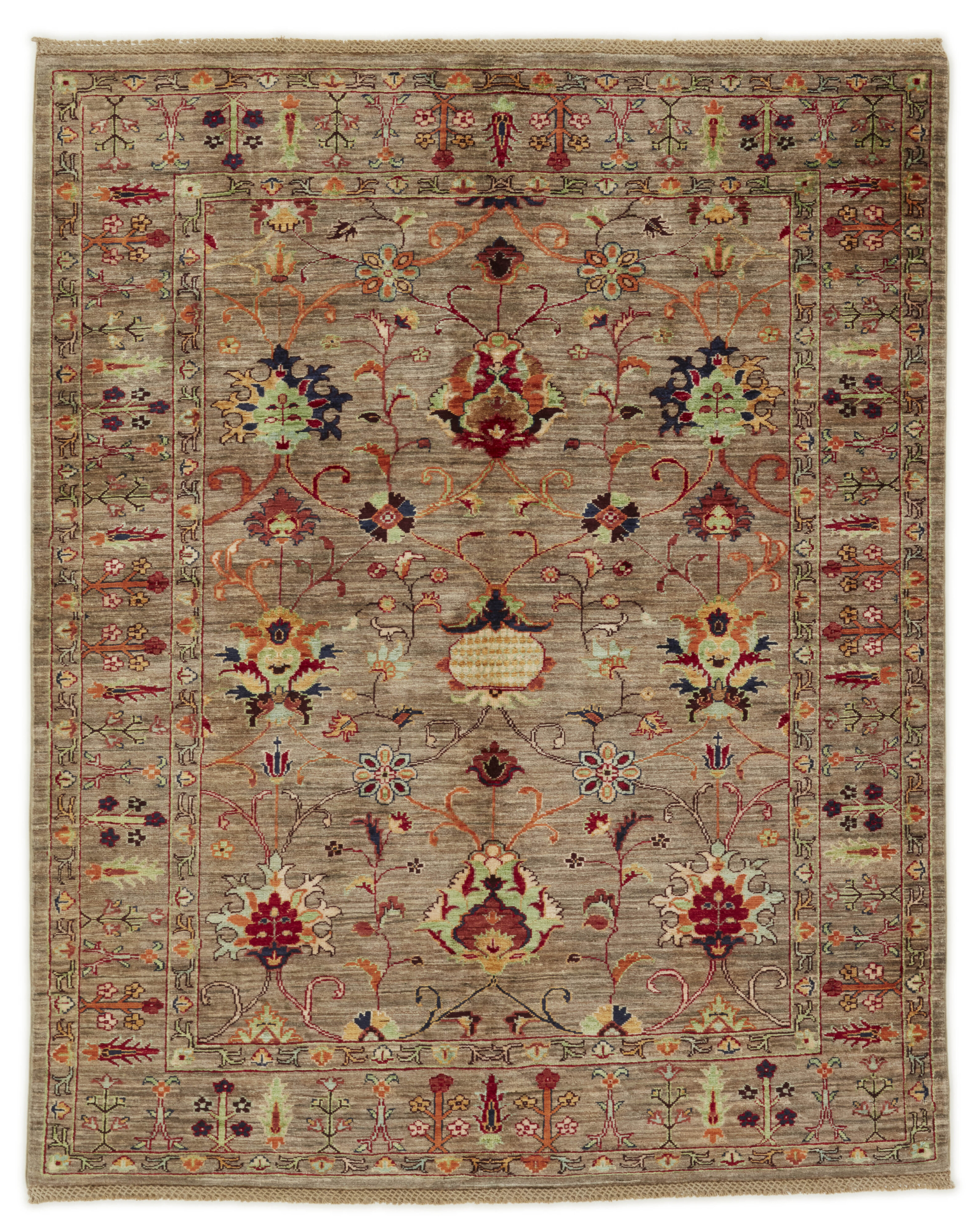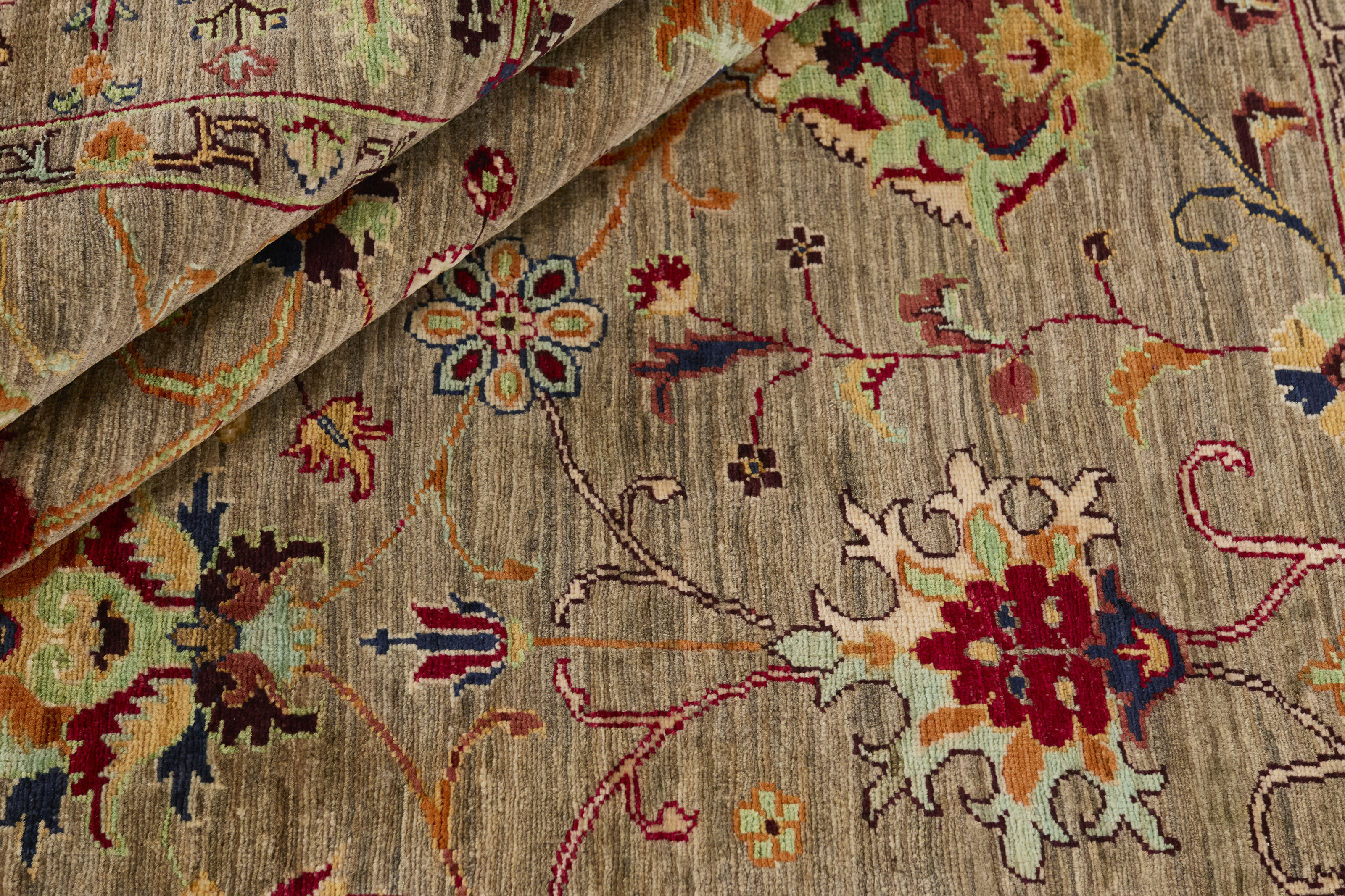 The story behind the Ziegler name dates back to 1870-80, to the Arak area of Persia, where the Ziegler Company from Manchester established its own large knottery, to meet the demand for rugs in patterns, colours and sizes tailored to western taste. The production took place in the company’s own workshops and not in the homes of the knotters themselves. The Ziegler rugs were produced until the First World War and were densely knotted rugs in delicate, pastel-like colours. Later on, the patterns have inspired different Turkmen nomad families and they are now produced in Afghanistan and Turkmenistan. The rugs, with their charming characteristics of flowers and leaf patterns, are all unique variations of a harmoniously balanced range of earth tones, consisting of nuances such as madder lake, burned sienna, burned umber, ochre, wine leaf yellow, indigo blue, and henna orange. To add the graceful and very sought-after patina, the rugs are exposed to a particularly intense washing, followed by sun drying.
